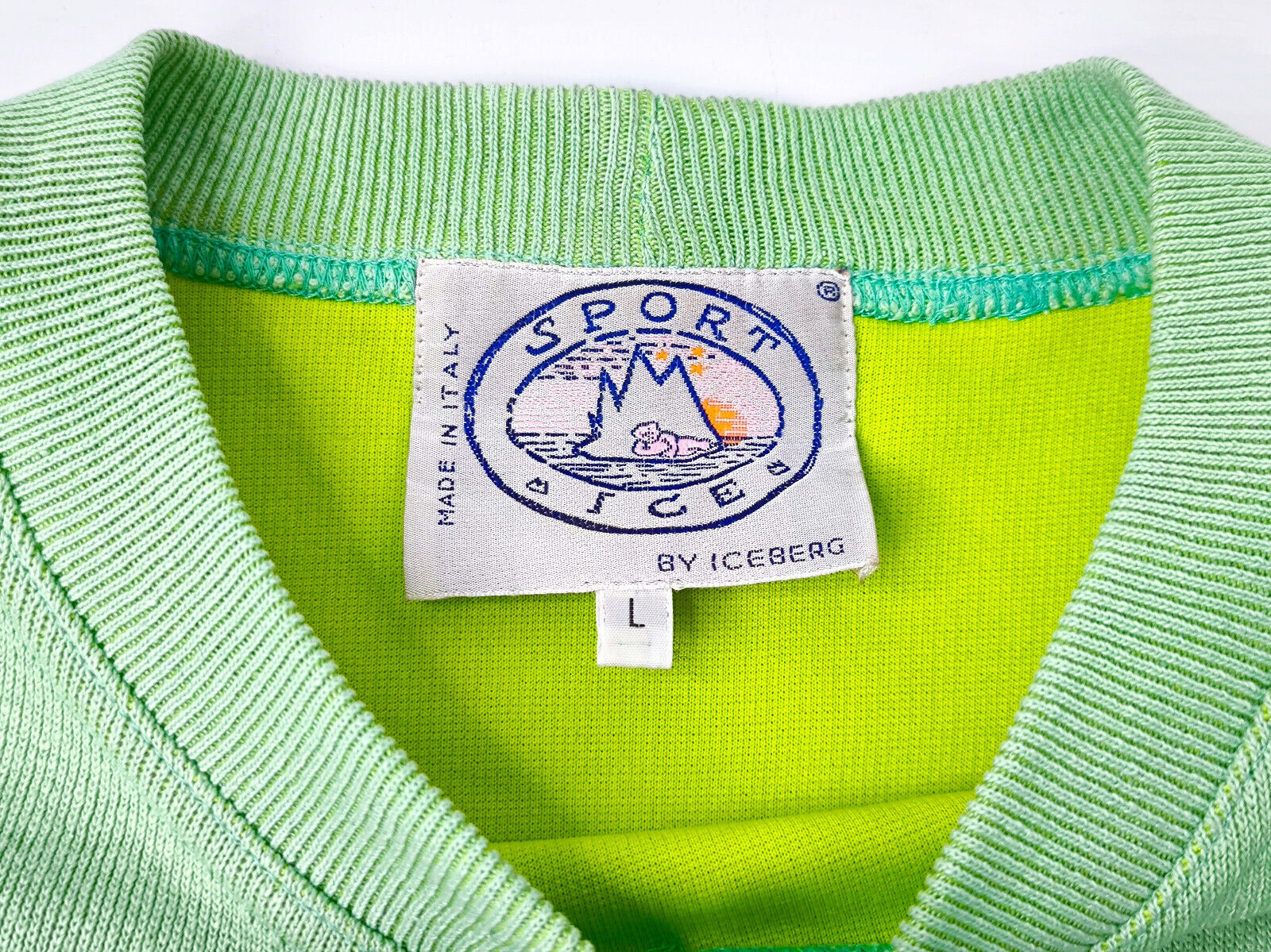 Iceberg Sport Ice Pullover On the Air hellgrün Gr. L Seide Mix vintage 90s