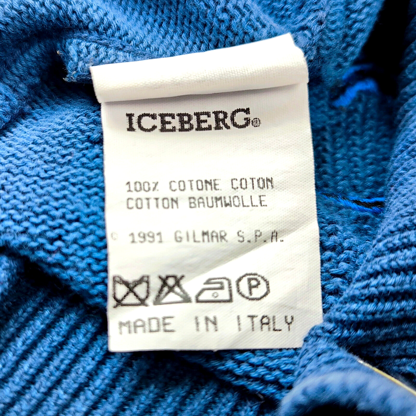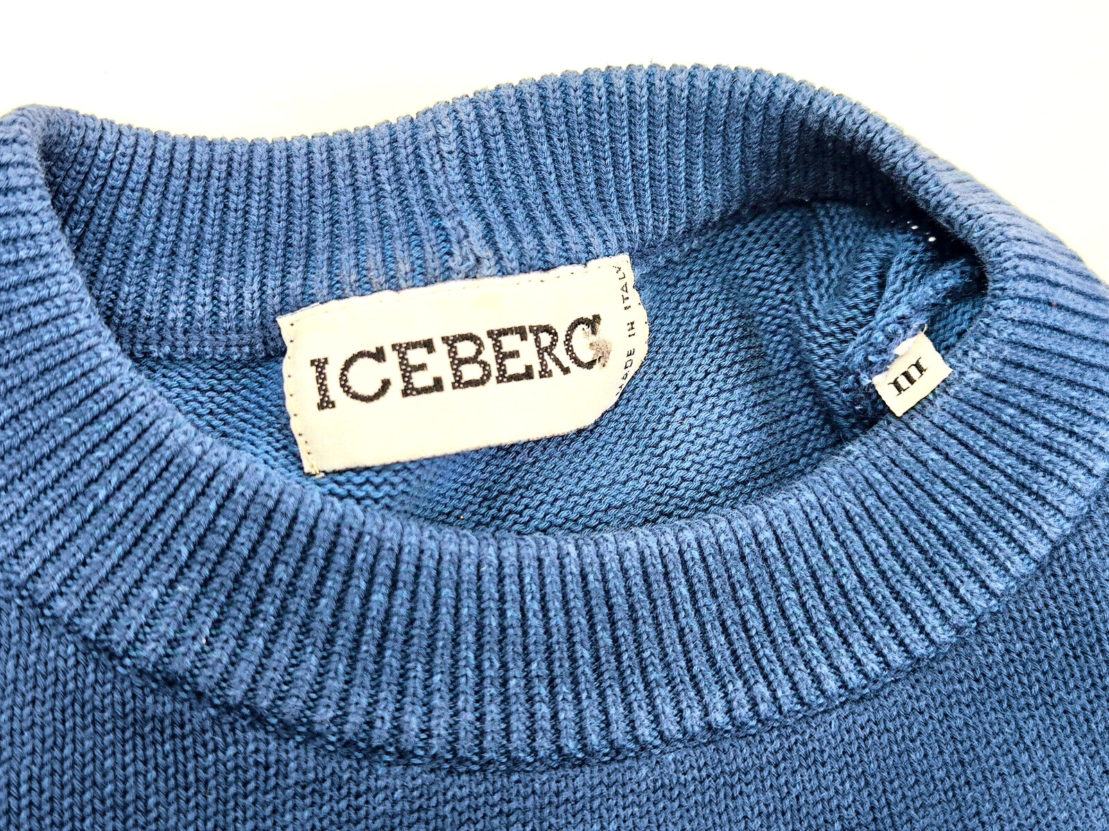 Preisvorschlag für Iceberg Strick Pullover Alligator blau Gr. III (L) vintage 90s