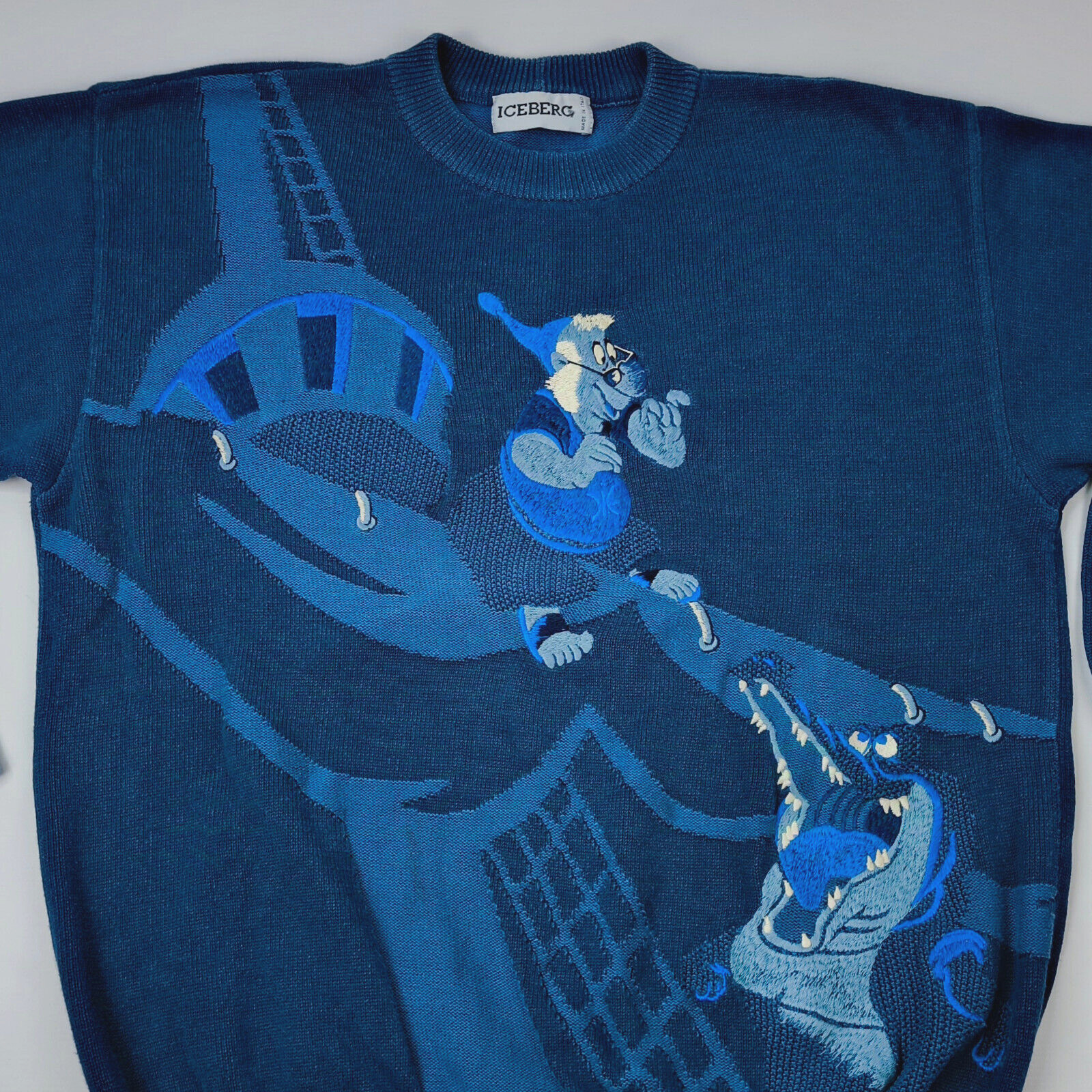 "Iceberg Strick Pullover Alligator blau Gr. III (L) vintage 90s"