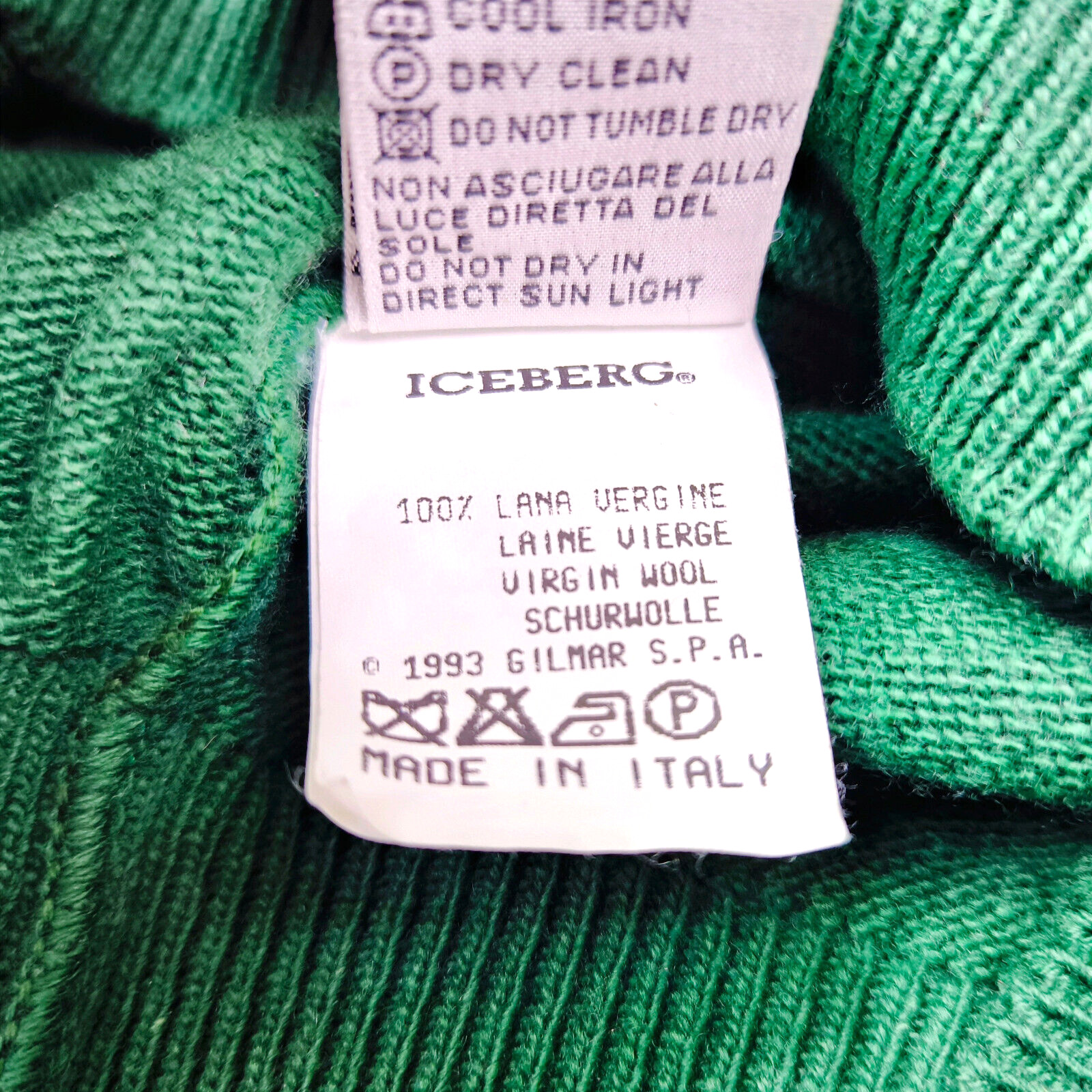 ________________________________________Marke: Iceberg (Sport Ice)Größe: V (XL)Farbe: mehrfarbig Zustand: neu ________________________________________Beschreibung:Der Pullover ist neu und ungetragen.Original Sport Ice / Iceberg Pullover der 1990er Jahre.Made in Italy.Absolut ungetragen !Im Pullover ist die Größe V angegeben. Im Vergleich mit anderen Iceberg Pullovern von uns fällt er wie eine sehr gute Größe XL.Bitte die Maße prüfen für eine perfekte Passform.________________________________________Die ca. Maße sind wie folgt:Brustbreite von Achsel zu Achsel: 60cmÄrmellänge ab Höhe Schulter: 72cmRückenlänge inkl. Kragen: 72cm________________________________________Material lt. Innenetikett:Oberstoff: 100% Schurwolle ________________________________________ Pflegeanleitung:Handwäsche kalt / professionelle Textilreinigung