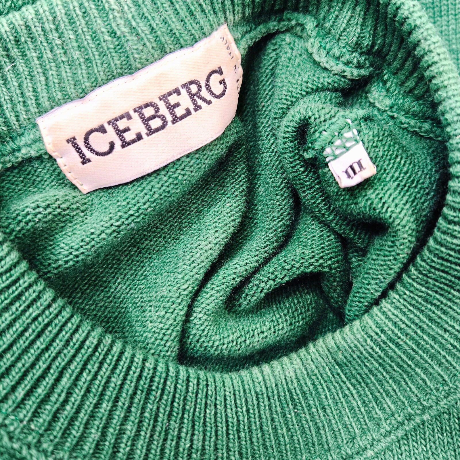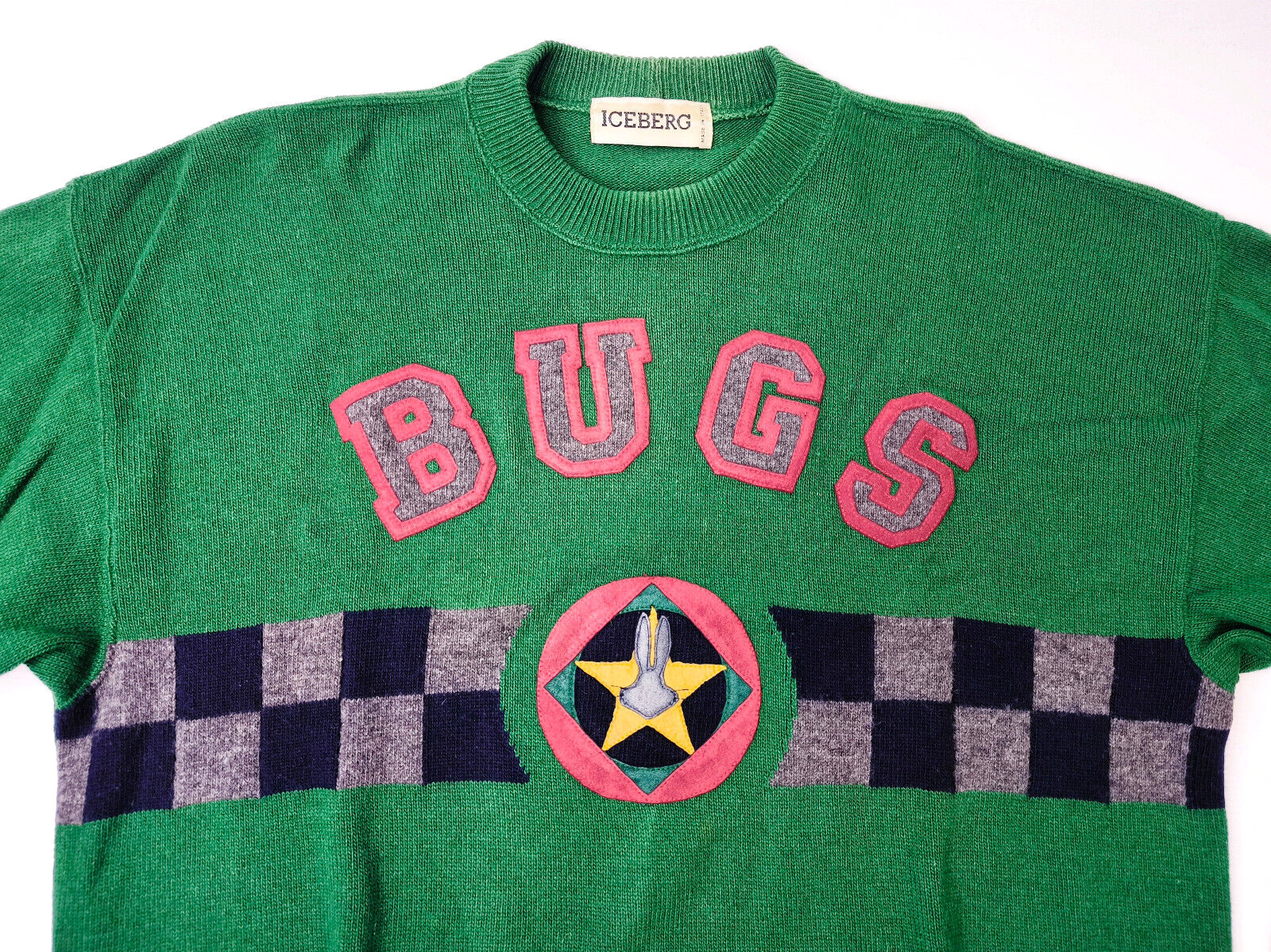 "Iceberg Strick Pullover Bugs Bunny BB Größe III fällt wie L vintage green"
