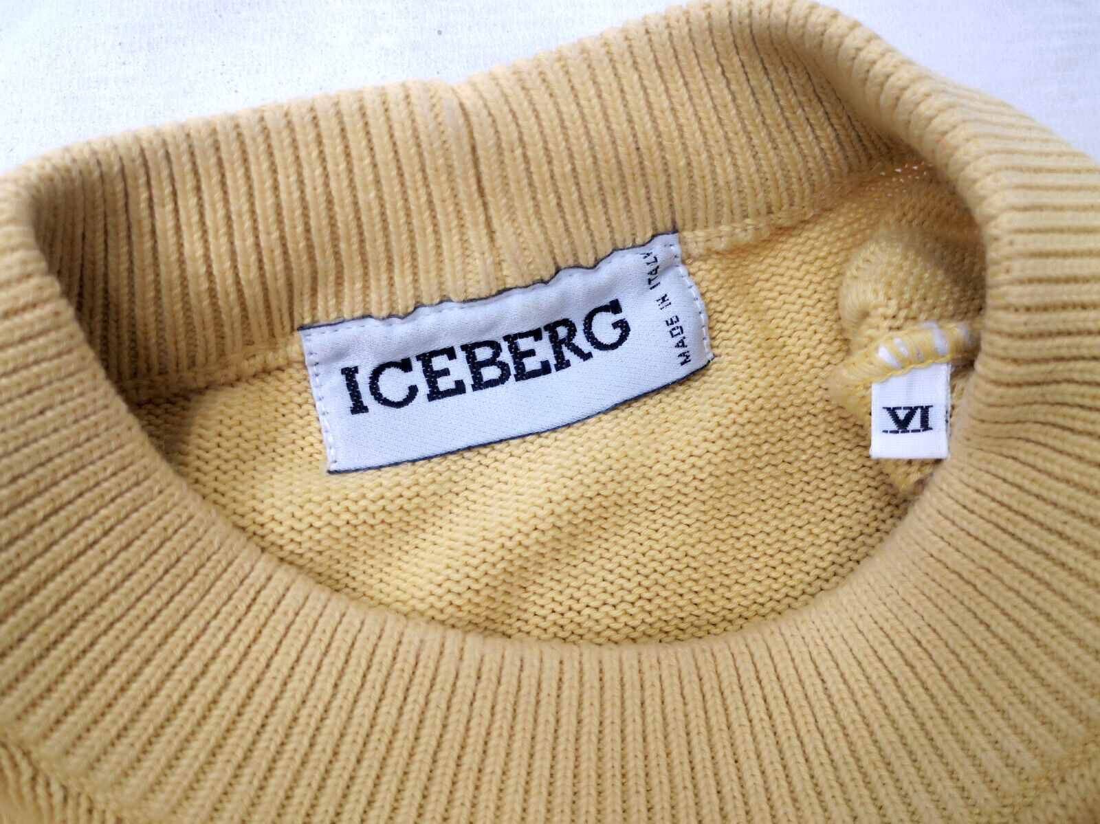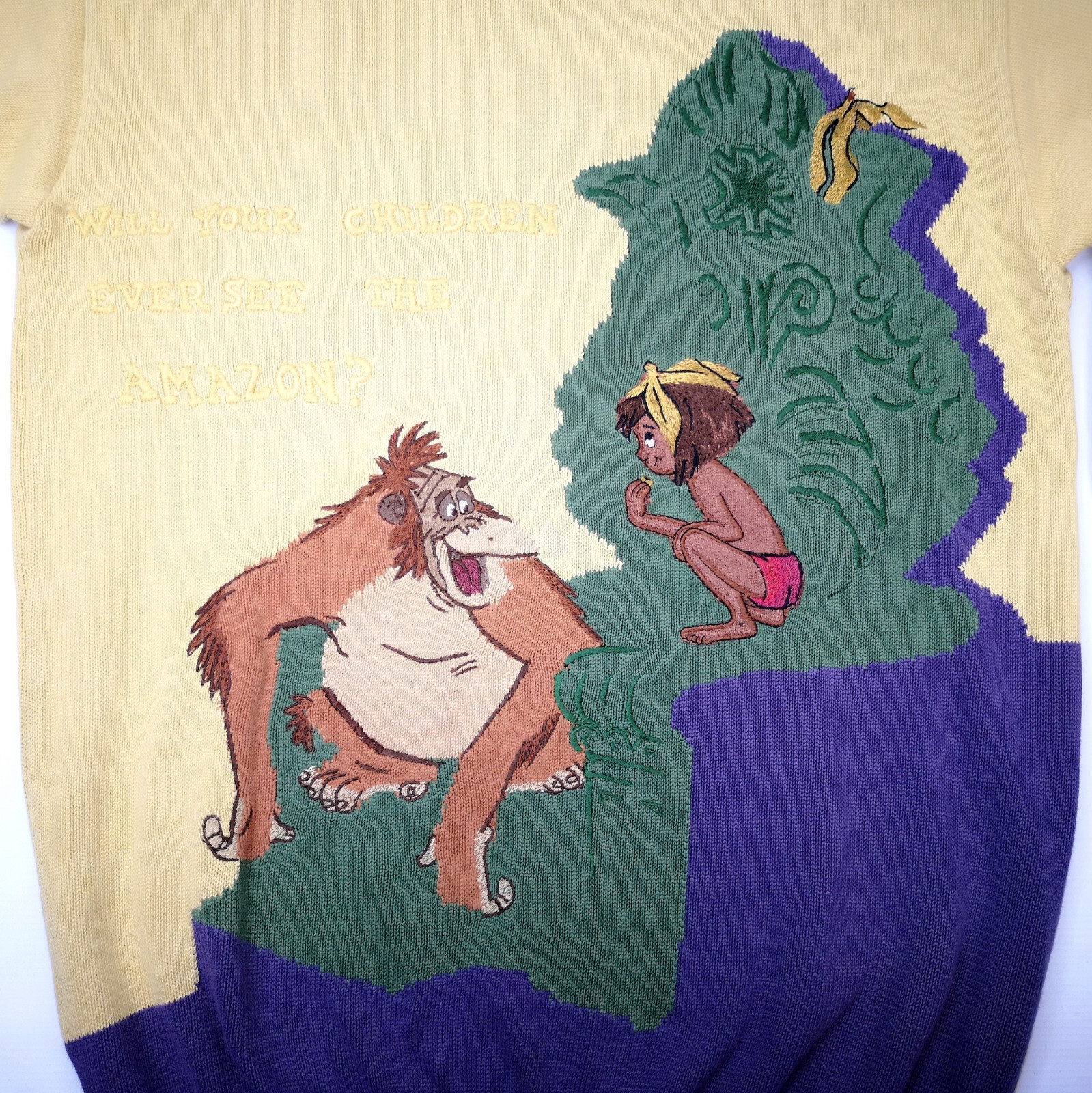 Preisvorschlag für Iceberg Strick Pullover Dschungelbuch gelb Gr. VI (L) vintage