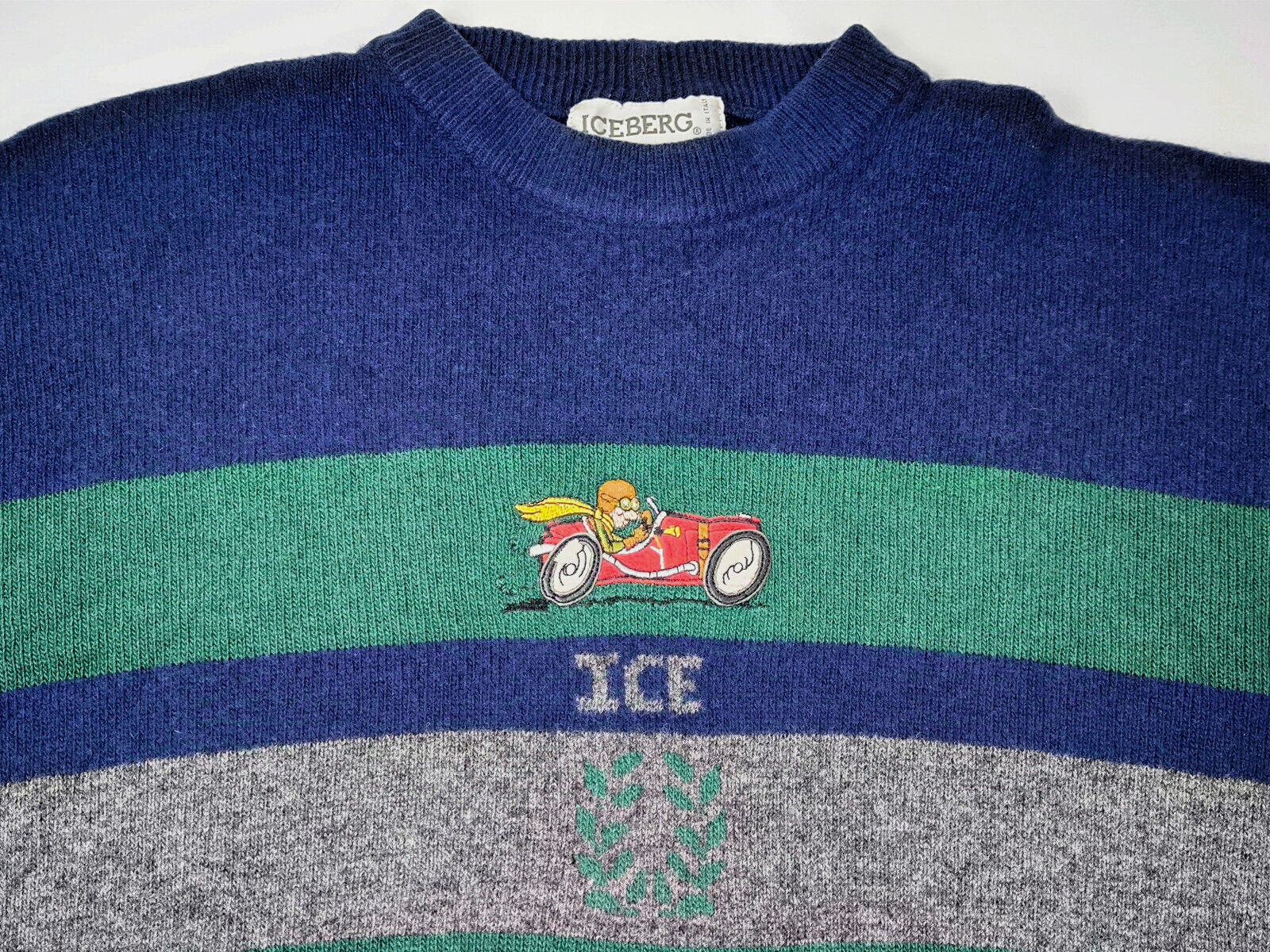 Preisvorschlag für Iceberg Strick Pullover ICE Gr. L (5) dunkelblau grün vintage 90s