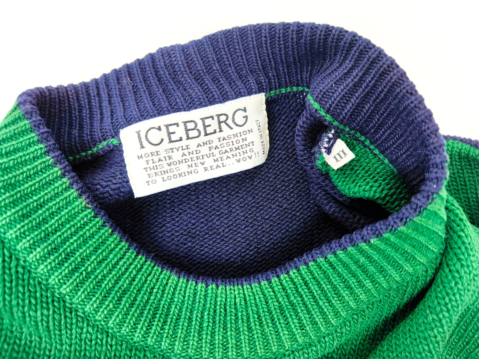 Iceberg Strick Pullover James Bond dunkelblau / grün Gr. III (M/L) vintage