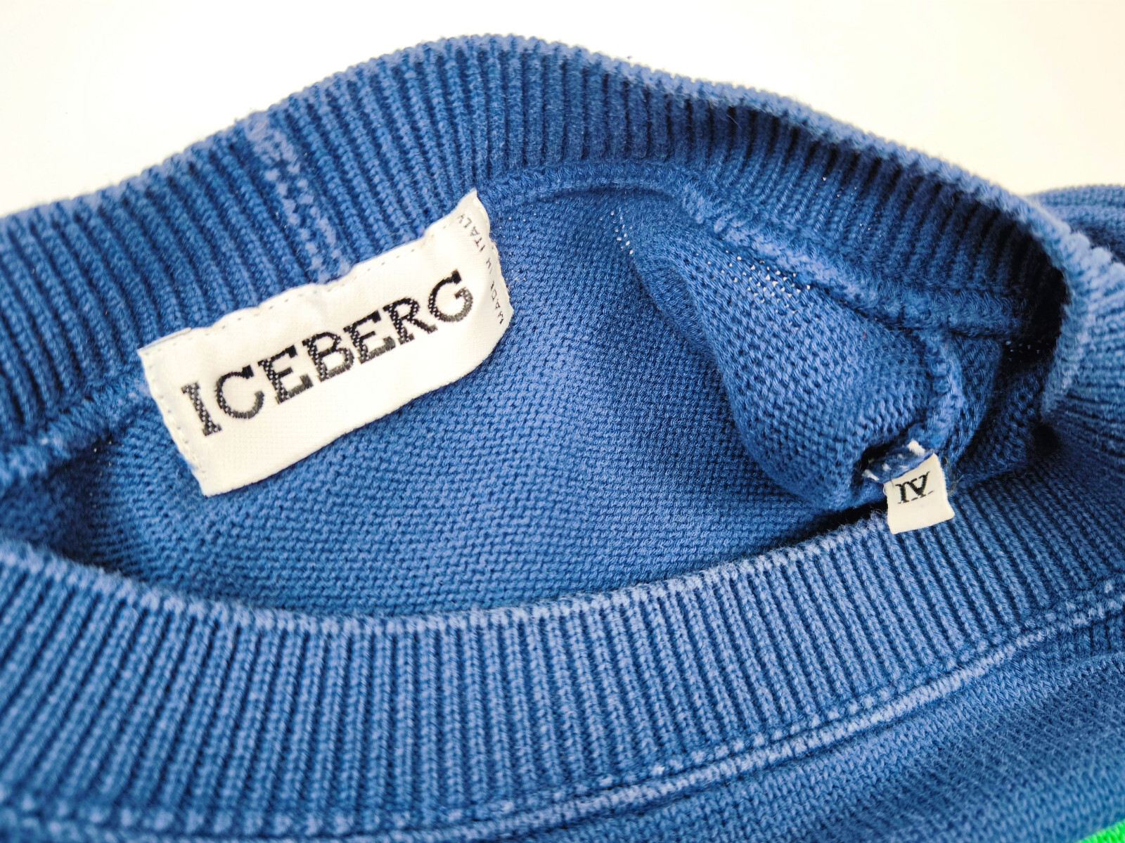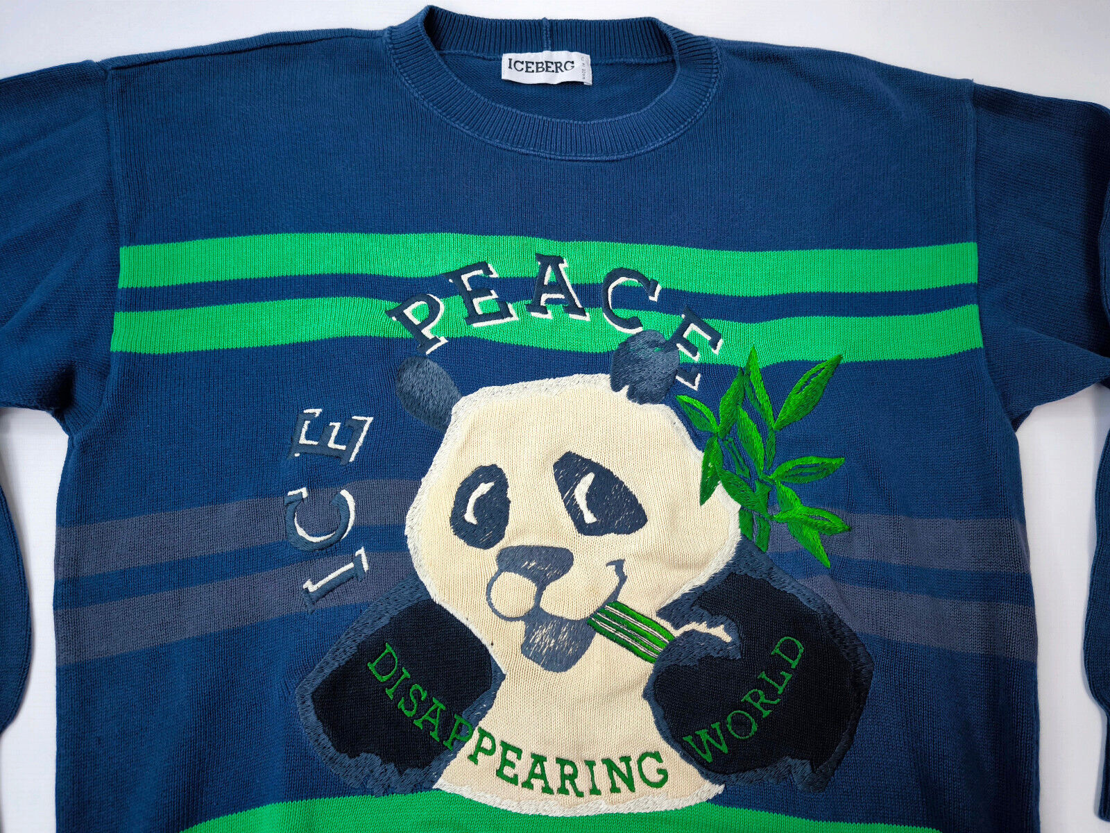 Preisvorschlag für Iceberg Strick Pullover Panda Ice Peace blau Gr. IV (M) vintage 90s