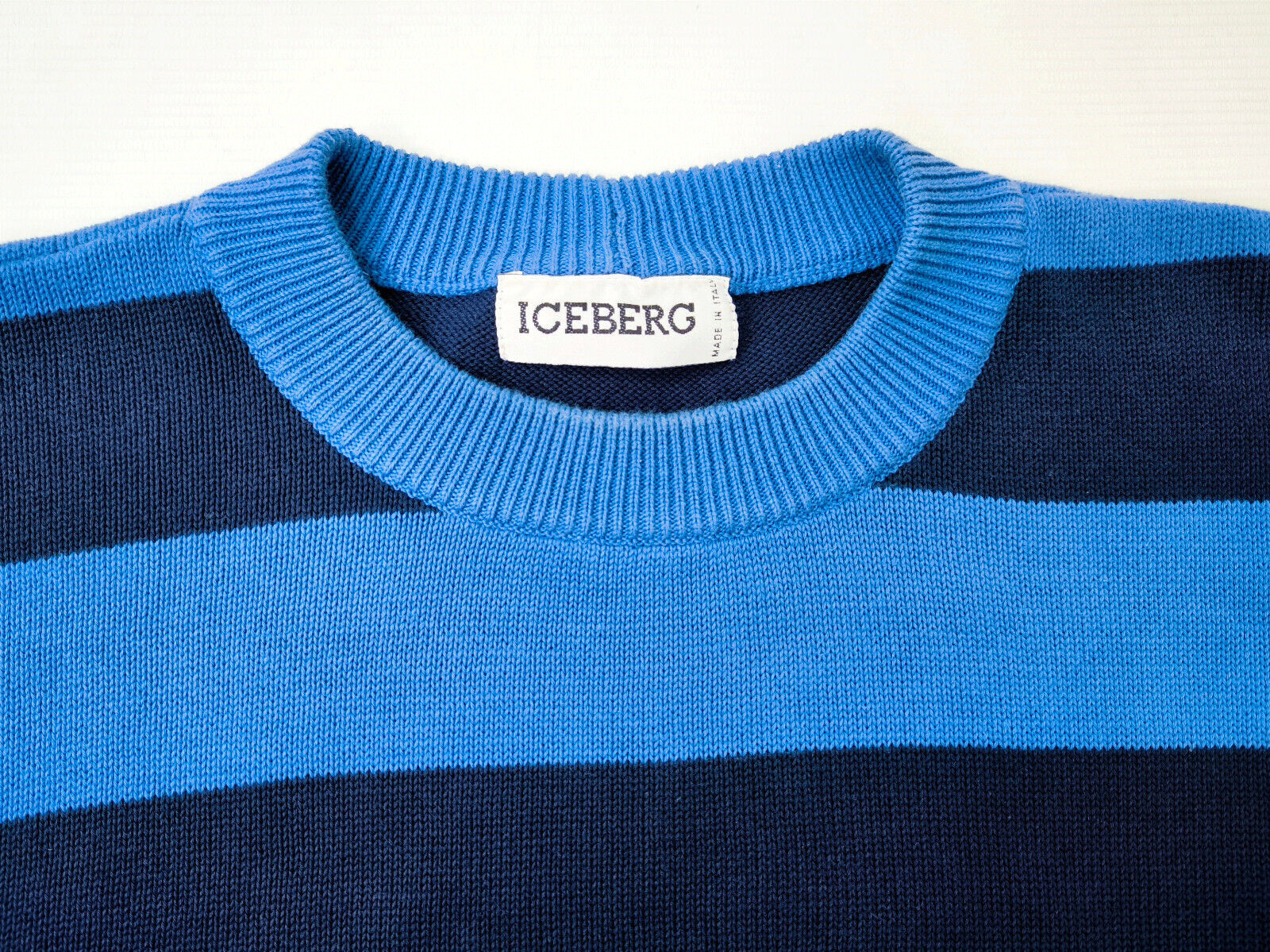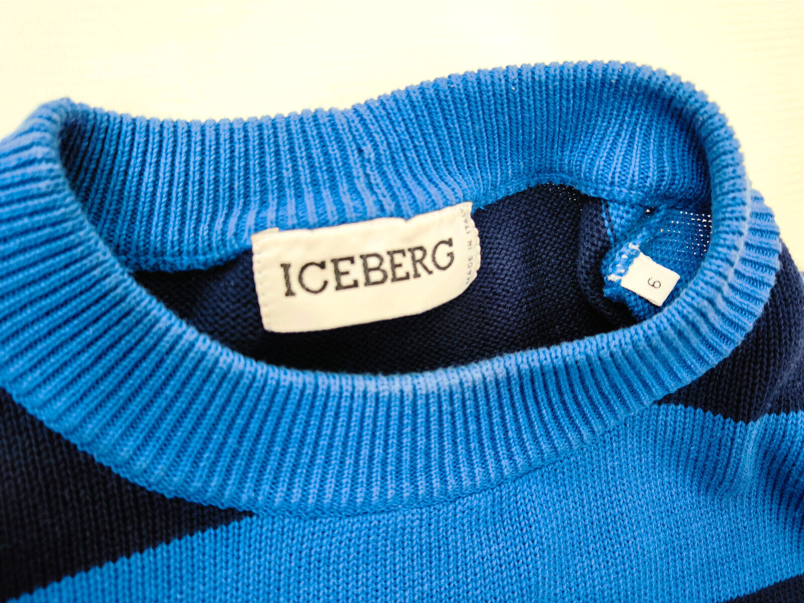 "Iceberg Strick Pullover blau gelb Gr. XL (6) vintage"