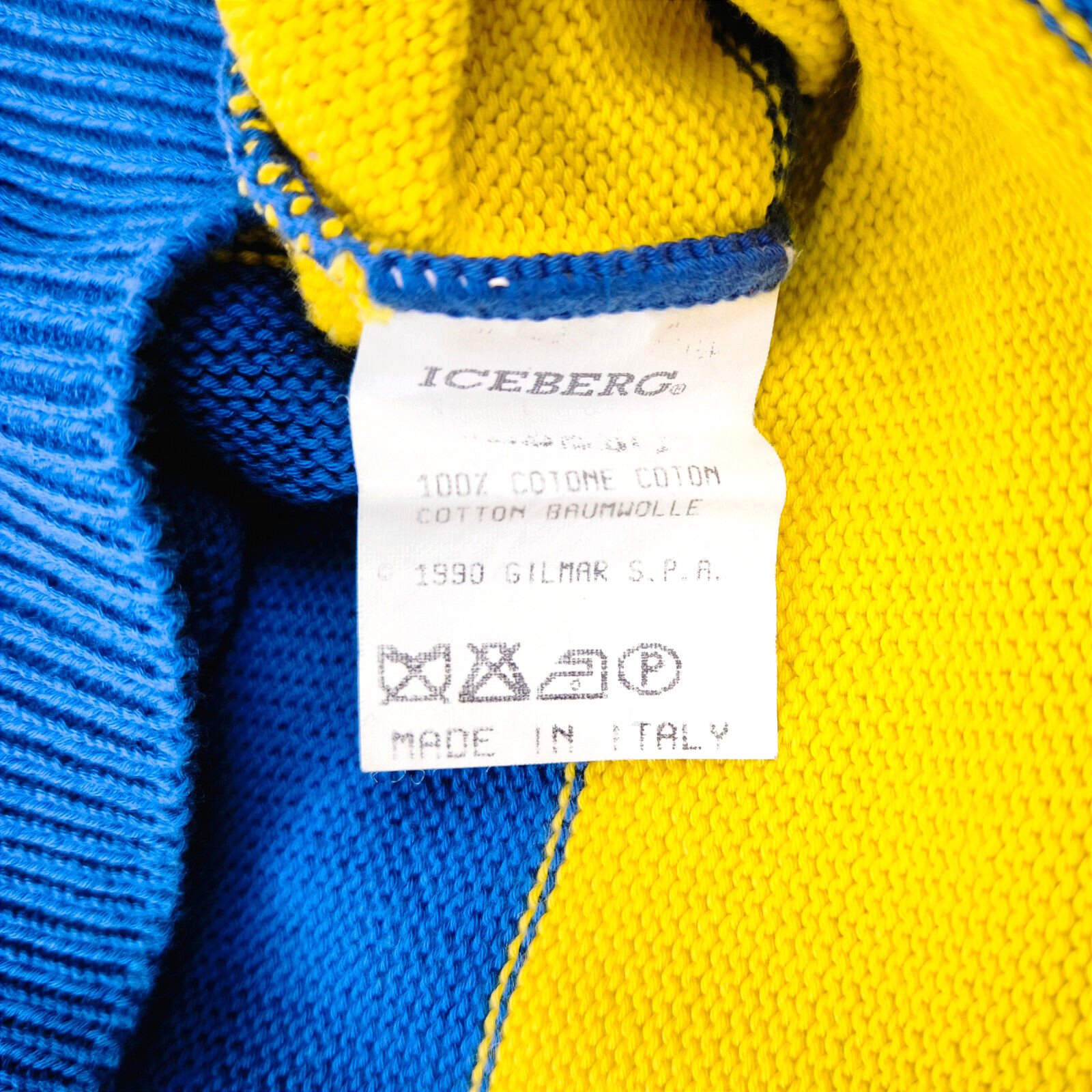 Preisvorschlag für Iceberg Strick Pullover blau gelb Gr. XL (6) vintage