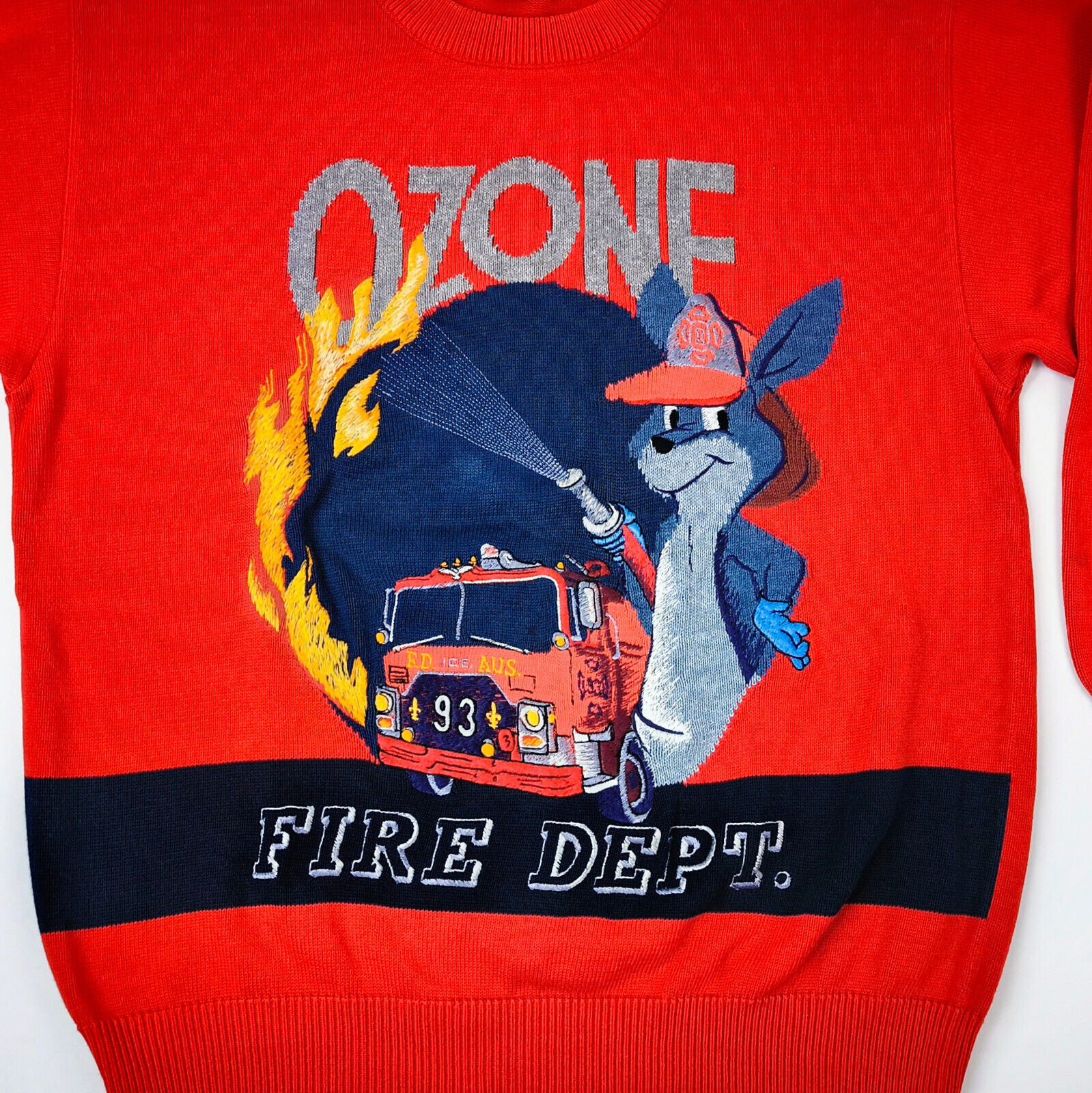 "Iceberg Strick Pullover rot Gr. III (M) Ozone Fire Dept. vintage 90s"