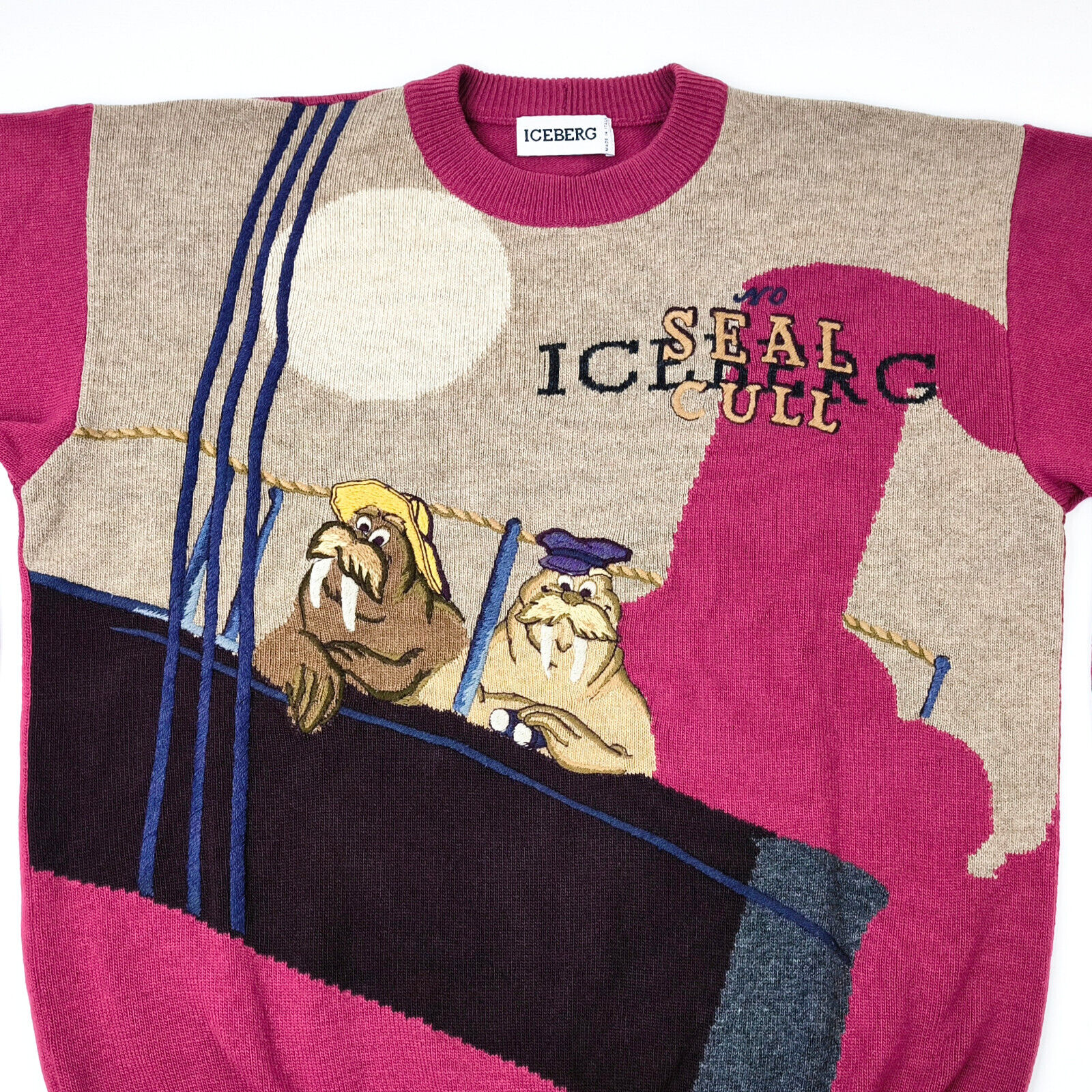 Iceberg Strick Pullover weinrot Gr. V (L) No Seal Cull vintage 90s