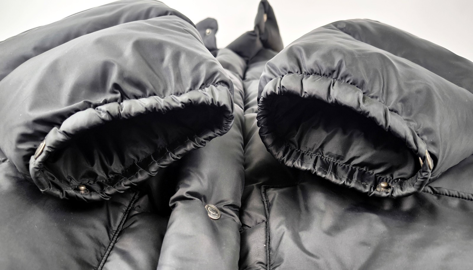 Im Kragen ist eine eingerollte Kapuze versteckt.
