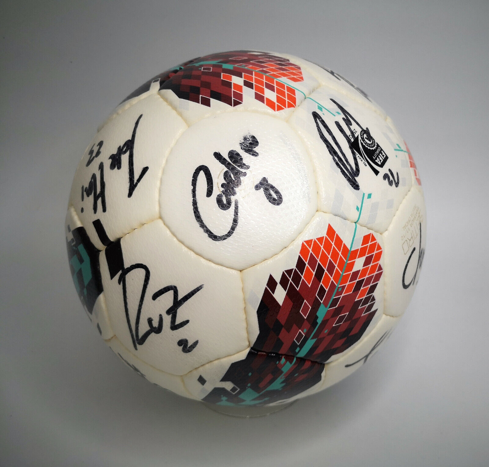 ________________________________________Marke: adidasModell: PeliasTurnier: Confederations Cup 2005Größe: 5Zustand: unbespielt ________________________________________Beschreibung:adidas Fussball Pelias.Official Match Ball / Offizieller Spielball des Confederations Cup 2005.Der Ball wurde beim Halbfinale des Confederations Cup 2005 in Nürnberg zwischen Deutschland und Brasilien am 25.06.2005 original unterschrieben von:Frank Beckenbauer, Jürgen Klopp, dem ehemaligen FIFA Schiedsrichter Urs Meier und dem deutschen Fernsehmoderator Johannes B. Kerner.Der Ball hat durch die lange Lagerung leichte Faltenbildung an den Paneelen.Ist neu und unbespielt !Hält die Luft perfekt !Toller Fussball des Confed Cup 2005, signiert von mindestens einer Legende des deutschen Fußballs !
