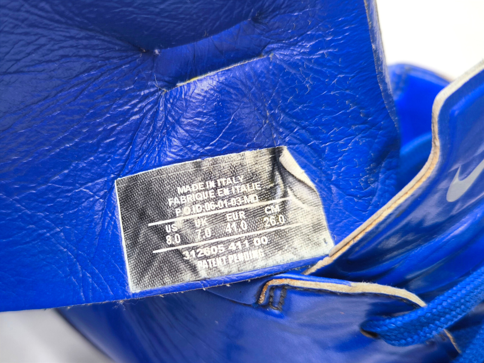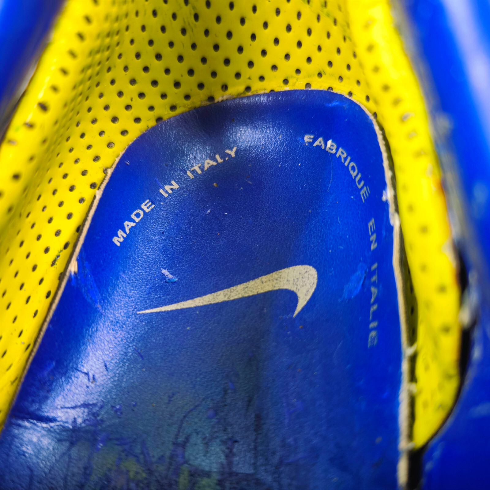 Das Material am Schaft blättert hier, charakteristisch für viele Nike Fussballschuhe aus diesen Jahren oder älter, teilweise schon ab, was hier meißtens nicht verhindert werden kann.