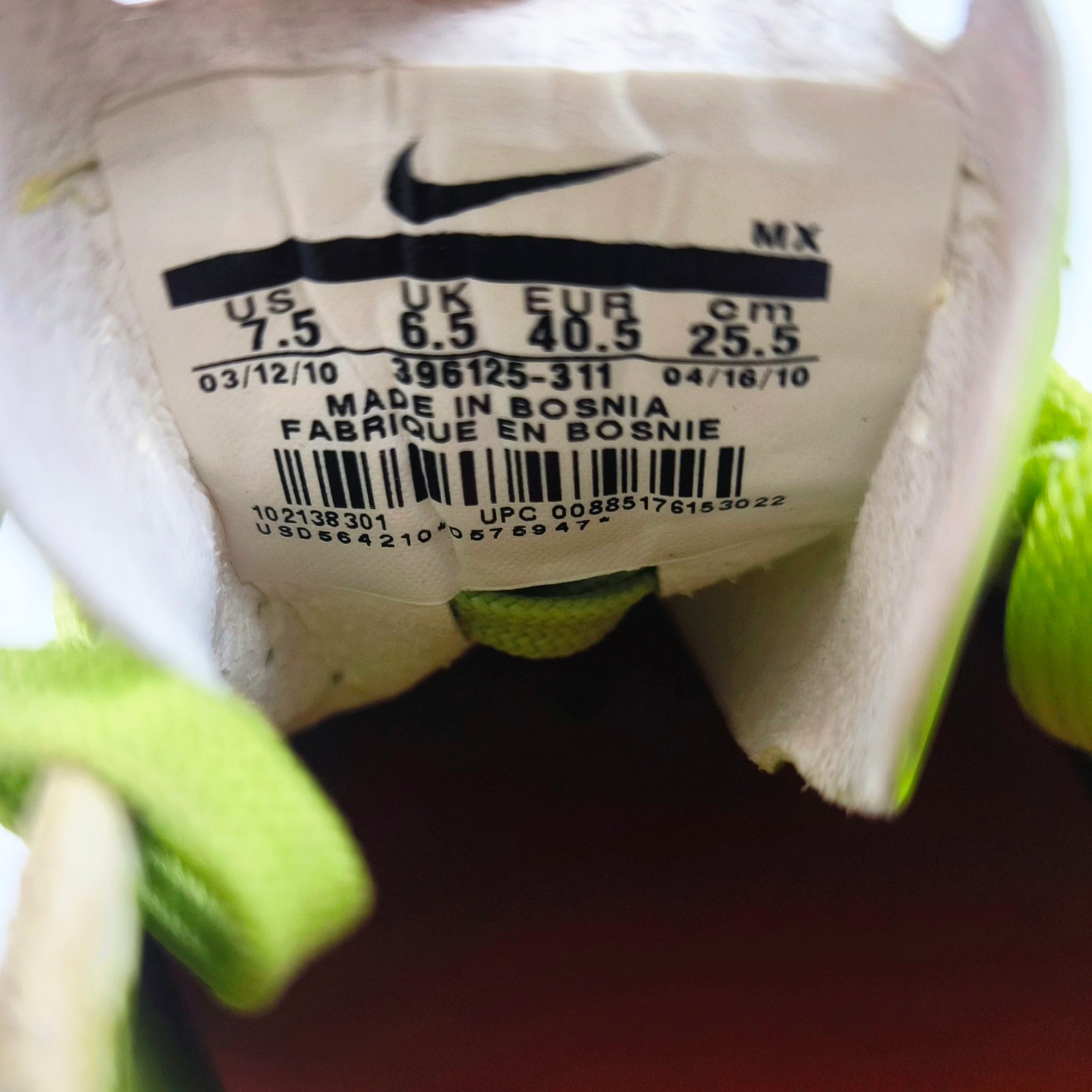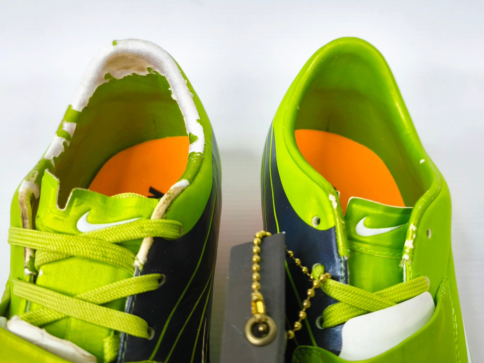 Typisch für diese Modellreihe und auch andere Nike Profi Modelle aus diesem Zeitraum, ist die Abplatzung der Farbe am Fersenrand nach einigen Jahren.
