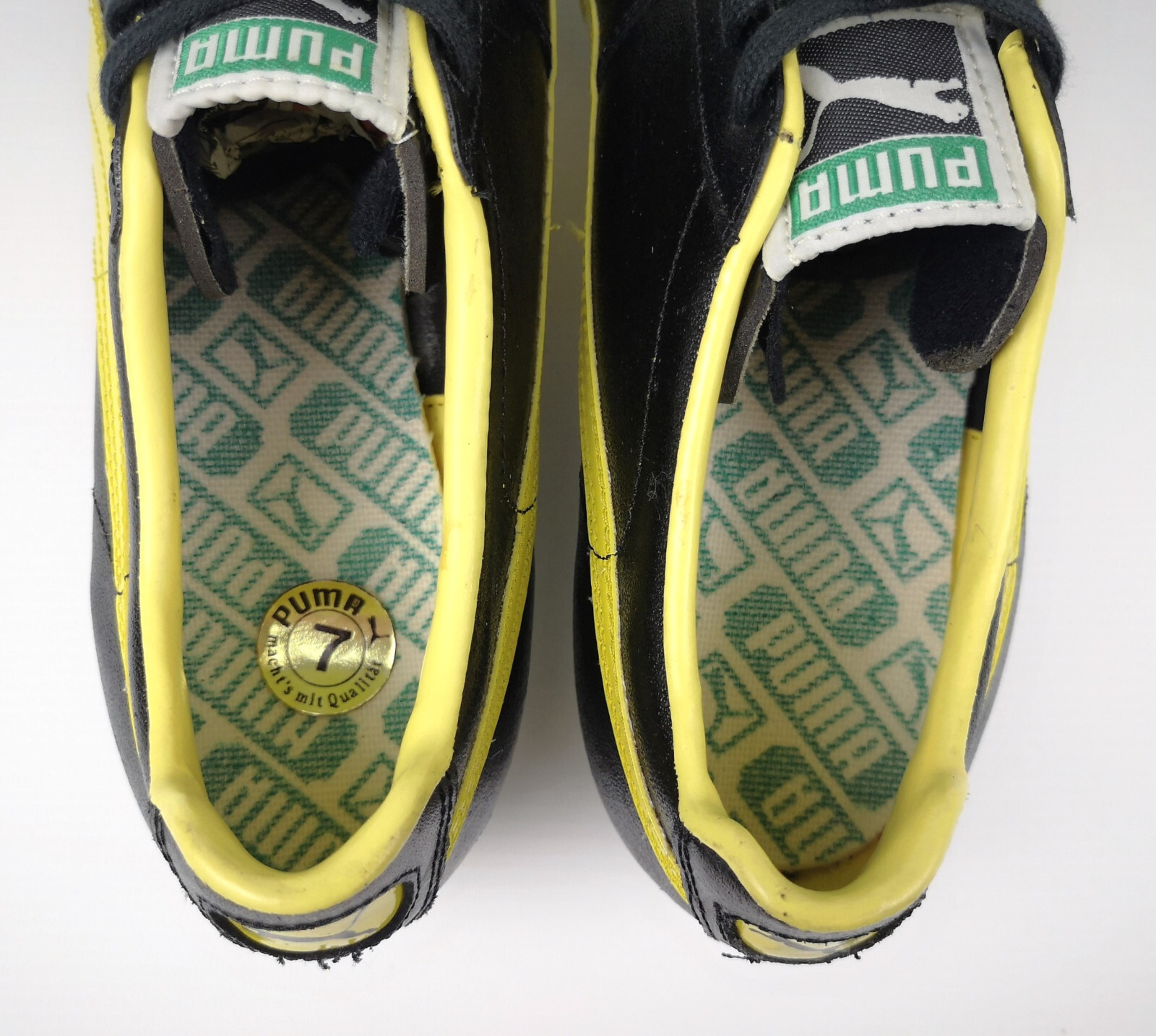 ________________________________________Marke: PumaModell: ToreroGröße: ca. Eur 41 / UK 7.5 / US 8Farbe: schwarz Zustand: getragen_______________________________________Beschreibung:Die Schuhe wurde getragen und befinden sich in einem sehr schönen Zustand.Leichte Tragespuren am Obermaterial, im Innenschuh sowie etwas stärker an den unteren Sohlen inkl. Stollen.Puma Modell zur WM / World Cup 1982.Made in West Germany.Im Schuh ist keine Größe zu finden. Im Vergleich mit anderen Puma Fussballschuhe ist die Größe eine UK 7 oder UK 7.5 (Eur 41).Der Länge der unteren Sohle beträgt ca. 27cm.Vitrinen- oder Sammlerschuh._______________________________________Obermaterial:100% Leder_______________________________________Achtung !Wir verkaufen diesen Schuh vornehmlich als Vitrinen- und / oder Sammlerschuh. Ein Tragen können wir durch das hohe Alter des Schuhs nicht garantieren und wissen auch nicht, wie sich die Materialien sichtbar und unsichtbar nach den Jahren verändert haben oder verändern werden.