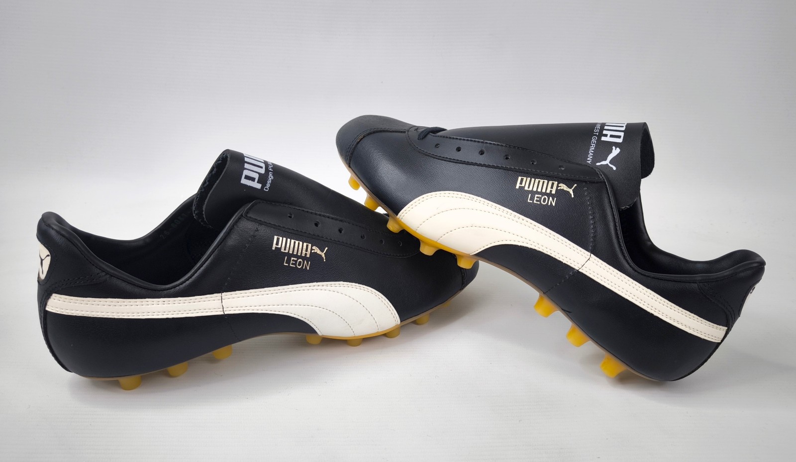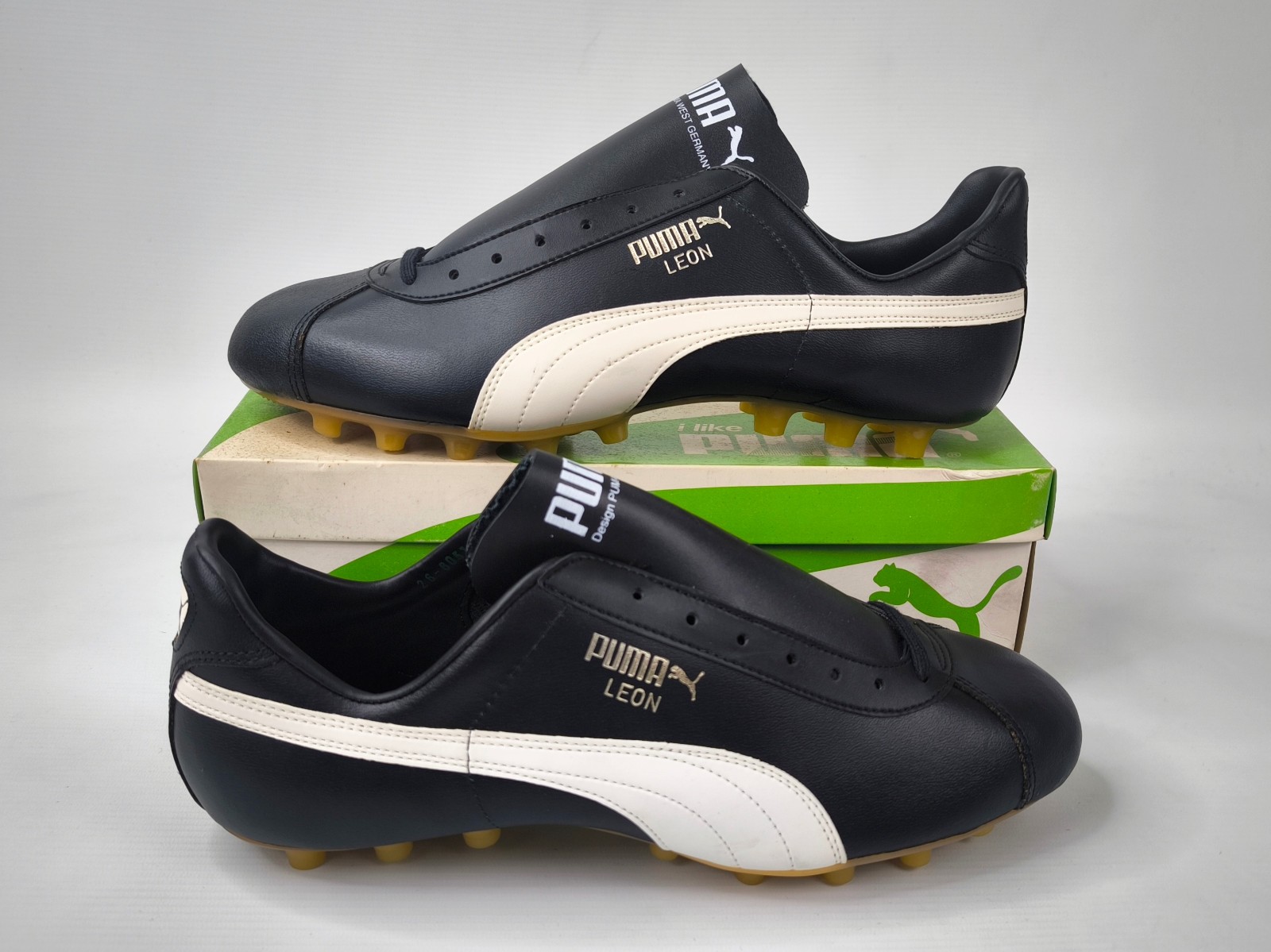 Preisvorschlag für Puma Leon Fussball Schuhe schwarz Eur 45 1/3 / UK 10.5 80s vintage neu