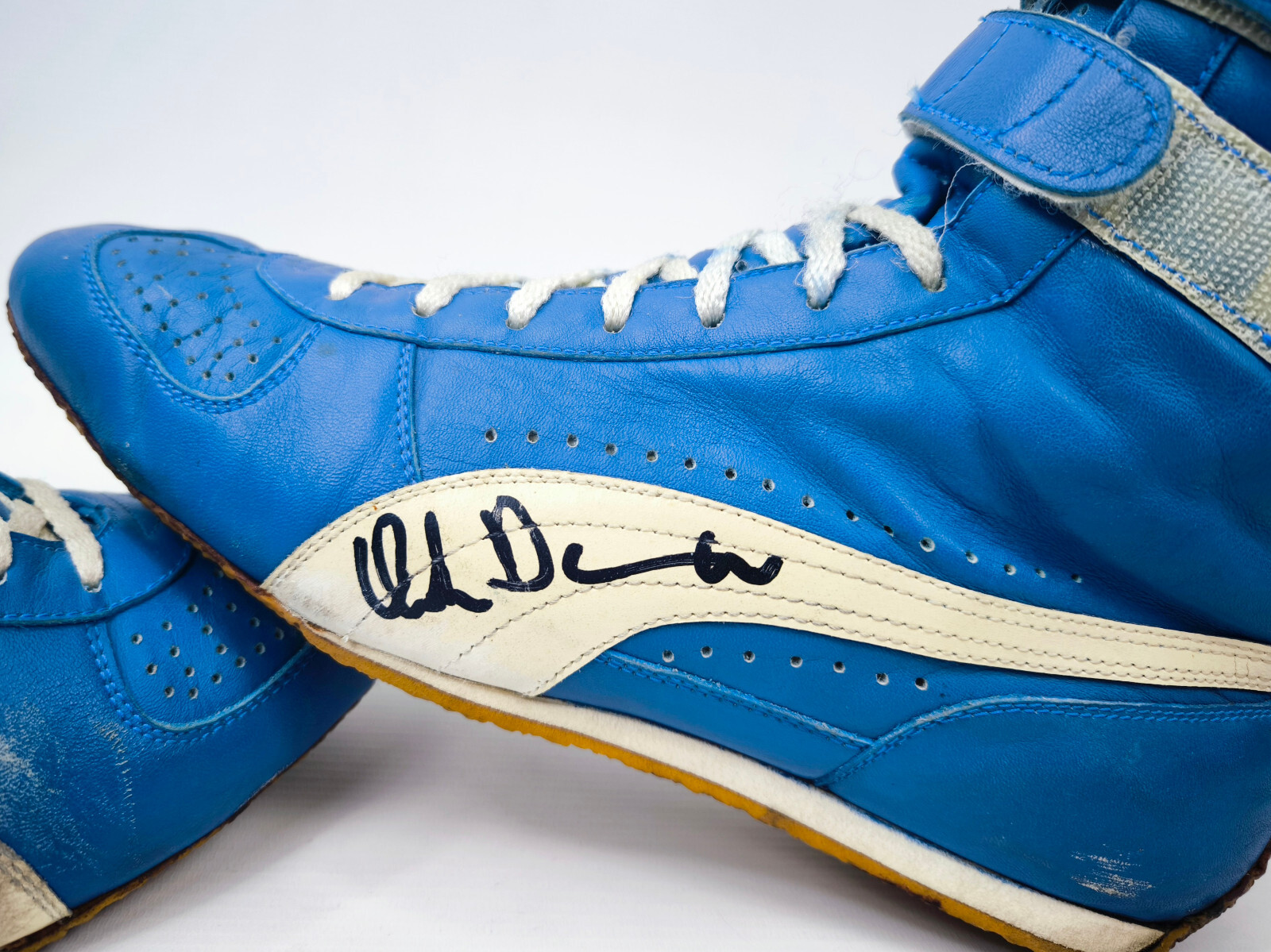 Puma Schuhe Christian Danner Formel 1 Saison 1985 getragen und signiert.