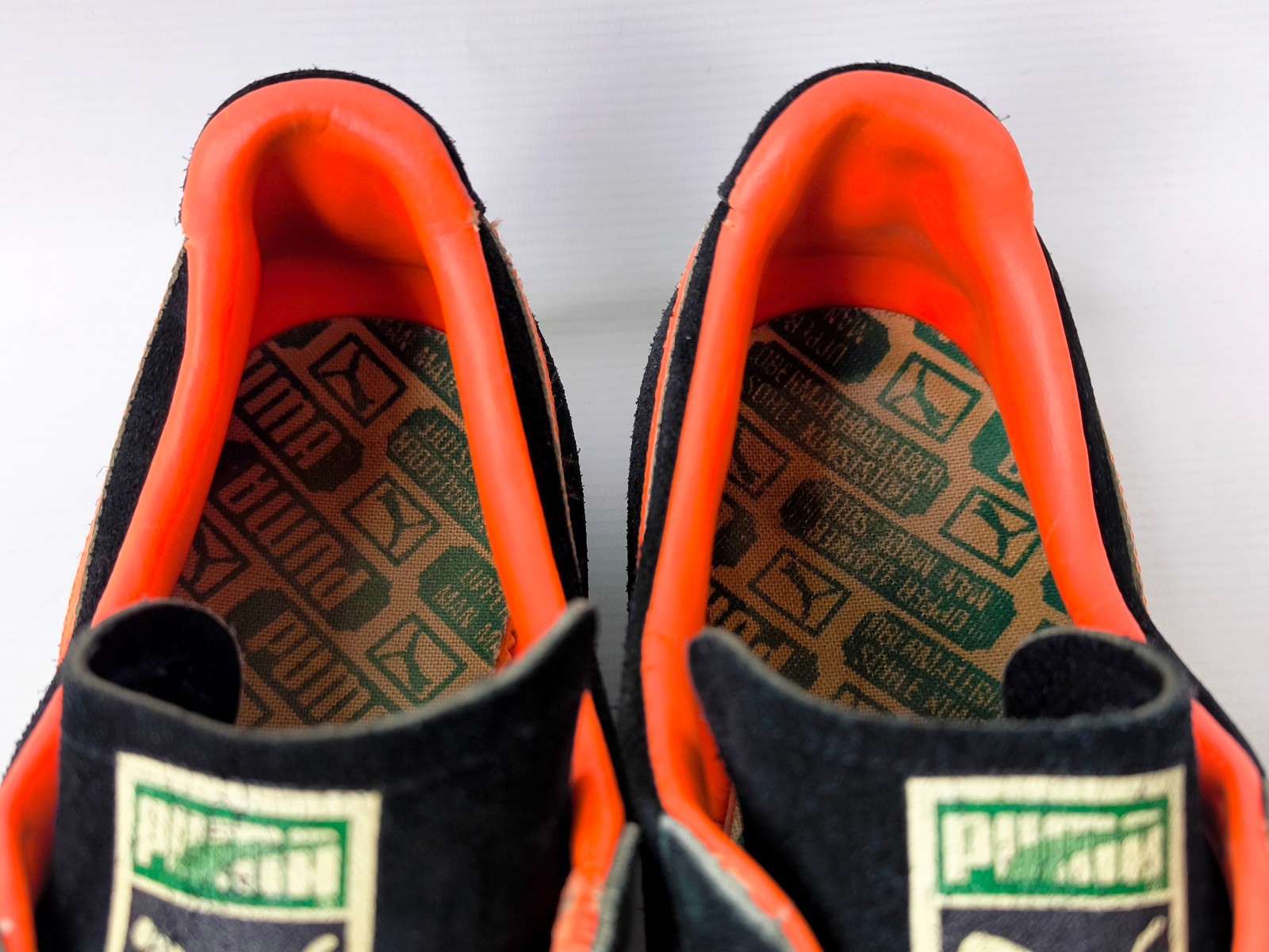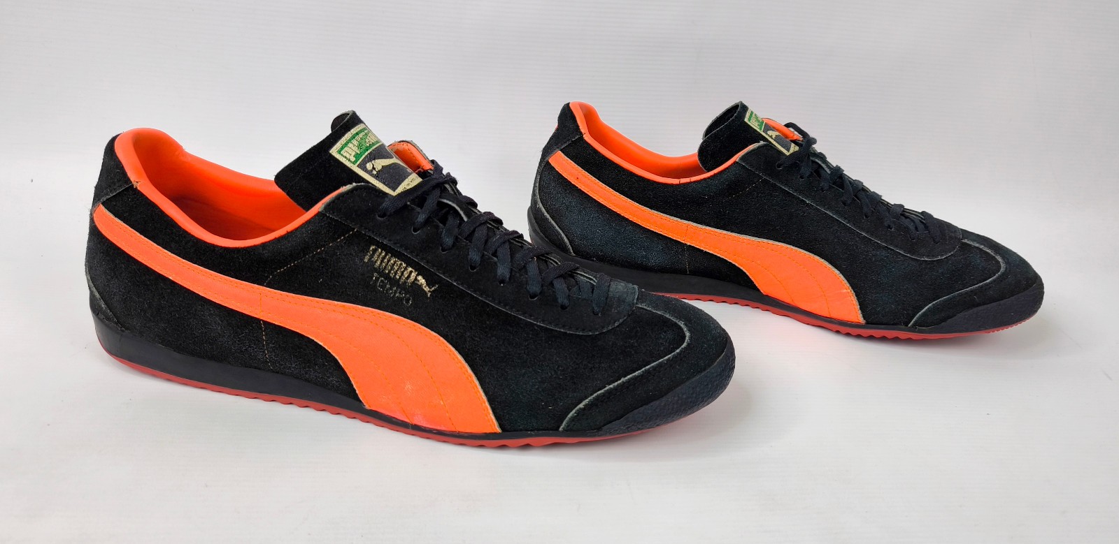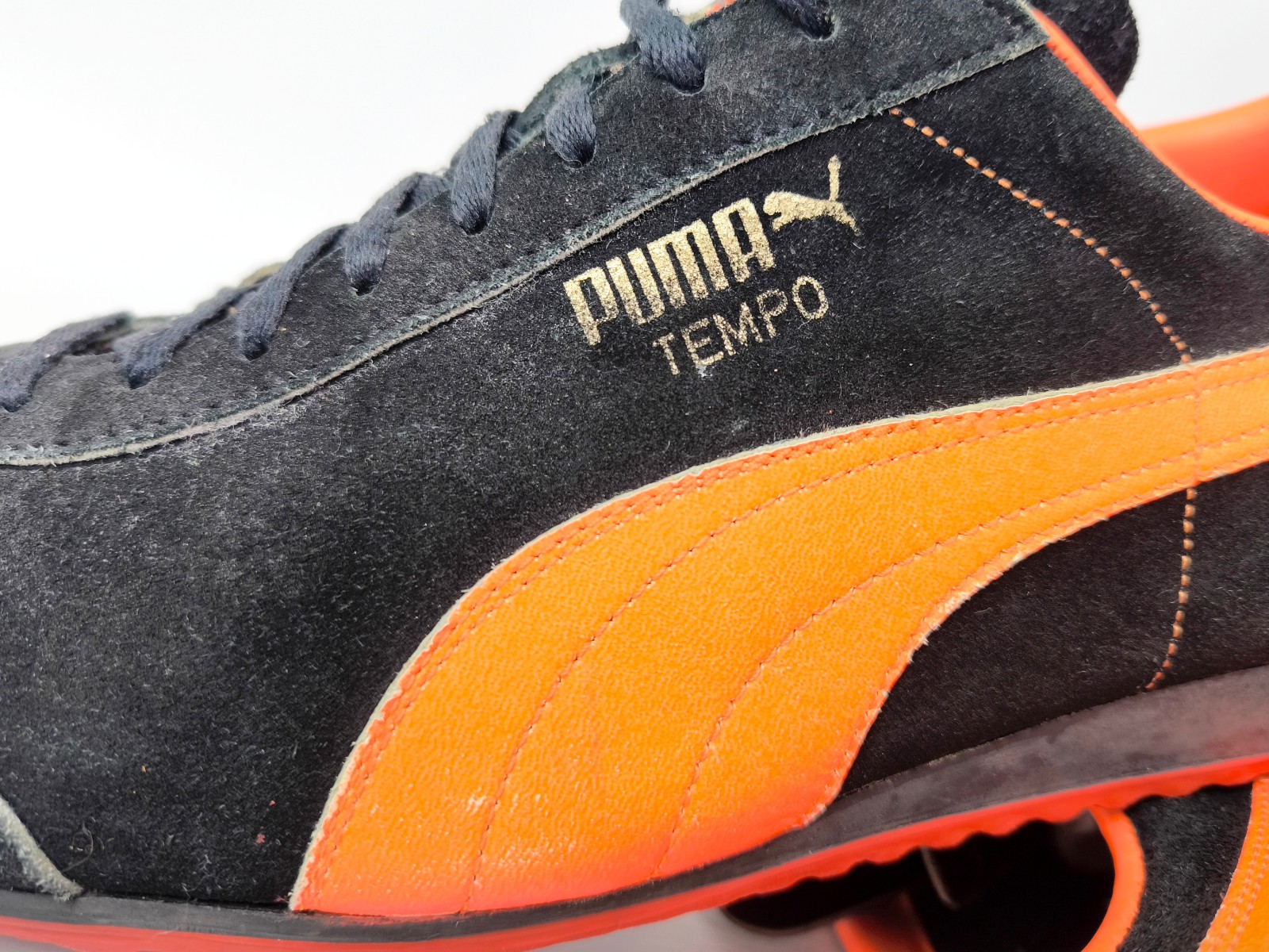 ________________________________________Marke: PumaModell: TempoGröße: Eur 40 2/3 / UK 7 / US 7.5Farbe: schwarz / orange Zustand: neu_______________________________________Beschreibung:Die Schuhe sind neu und ungetragen im Karton.Made in West Germany.Absolut neuer original Puma Schuh der 1970er Jahre._______________________________________Obermaterial:100% Wildleder (suede)