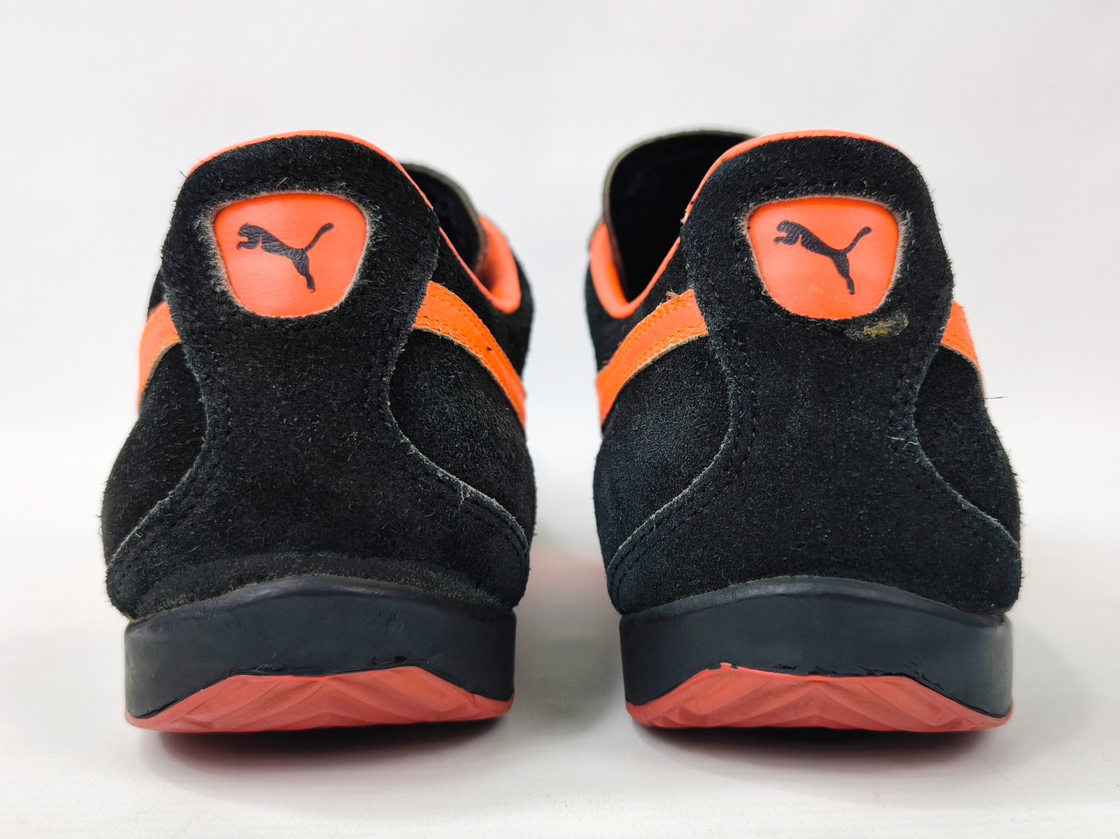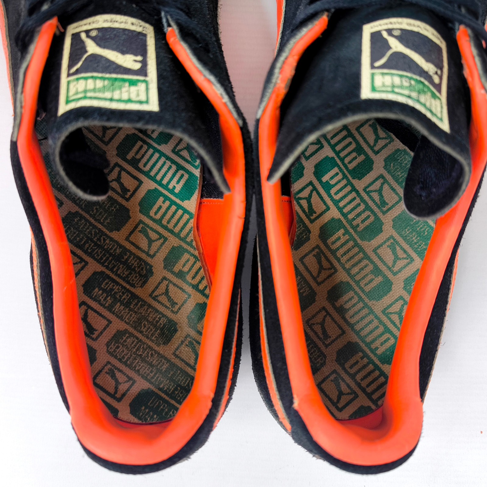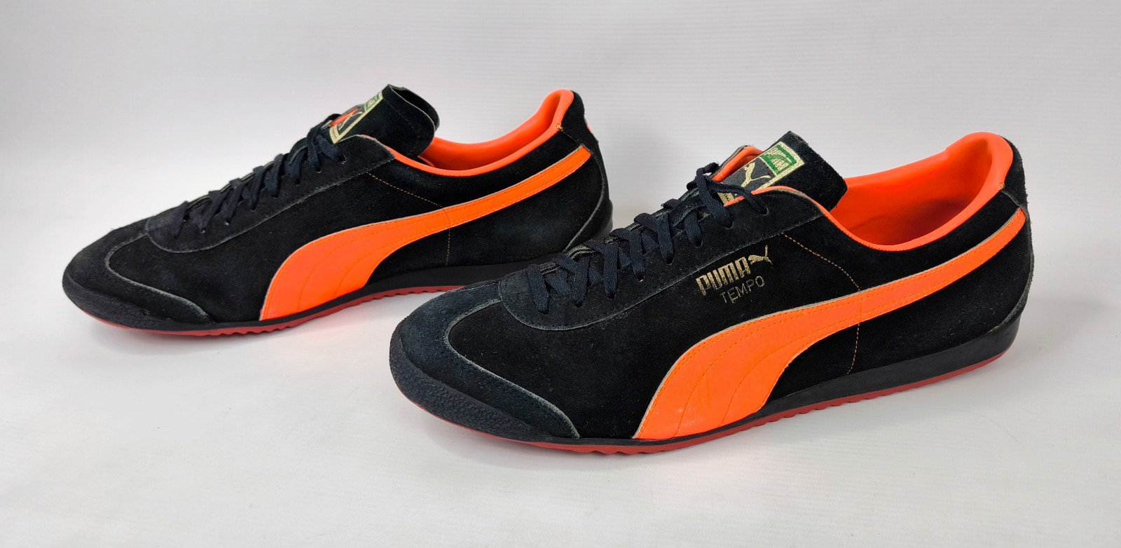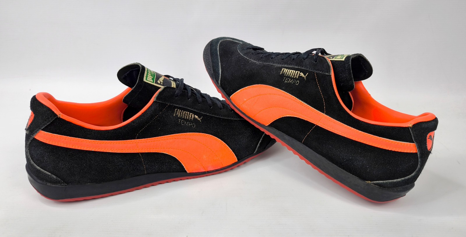 ________________________________________Marke: PumaModell: TempoGröße: Eur 40 2/3 / UK 7 / US 7.5Farbe: schwarz / orange Zustand: neu_______________________________________Beschreibung:Die Schuhe sind neu und ungetragen im Karton.Made in West Germany.Absolut neuer original Puma Schuh der 1970er Jahre._______________________________________Obermaterial:100% Wildleder (suede)