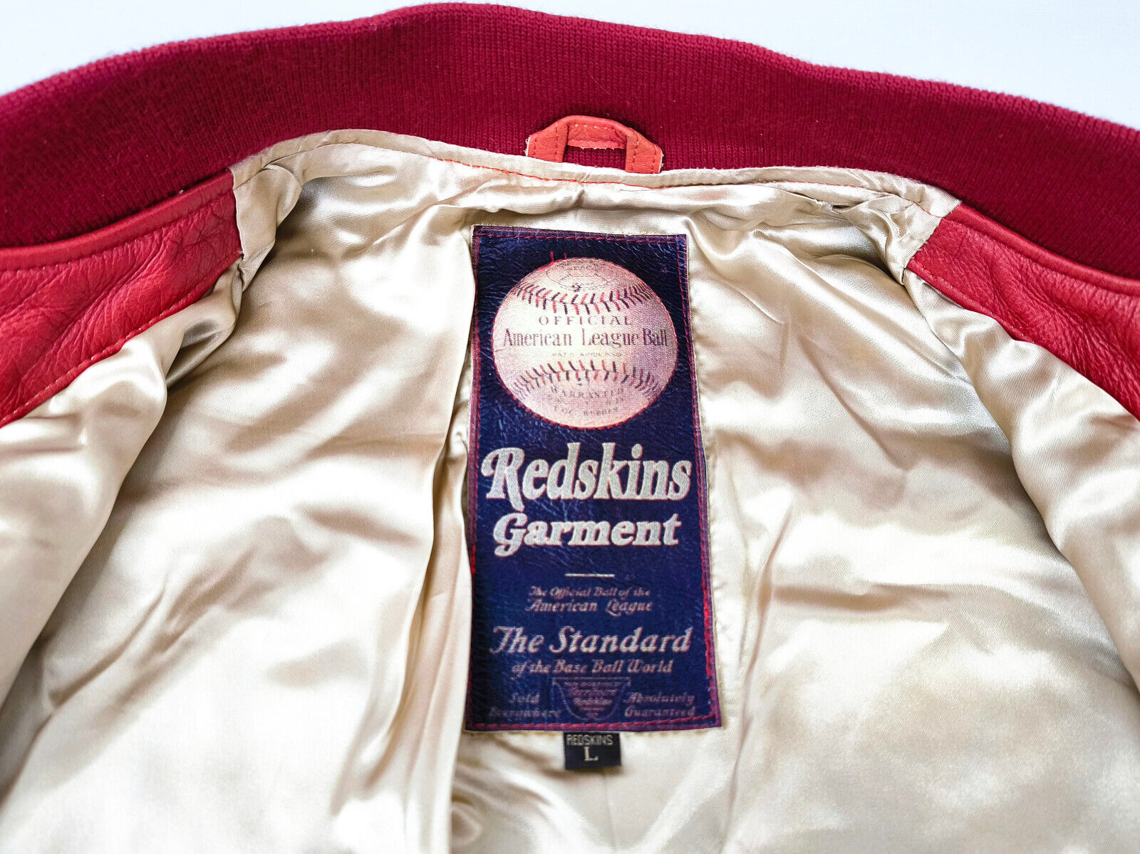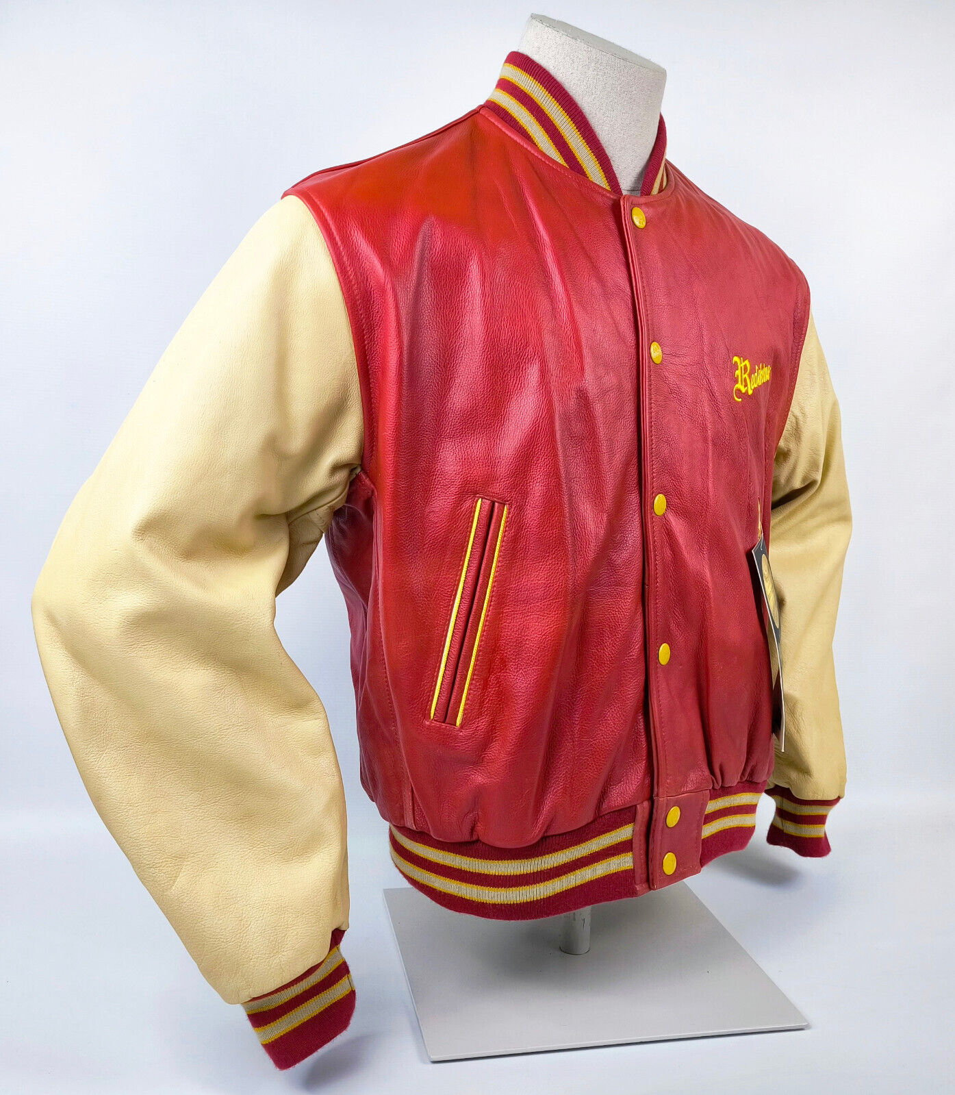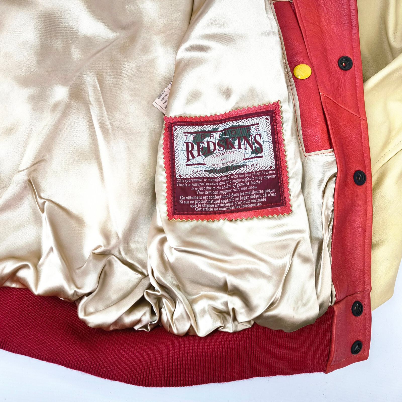 "Redskins Lederjacke Leather Jackets rot / creme Gr. L 90s neu mit Etikett !"