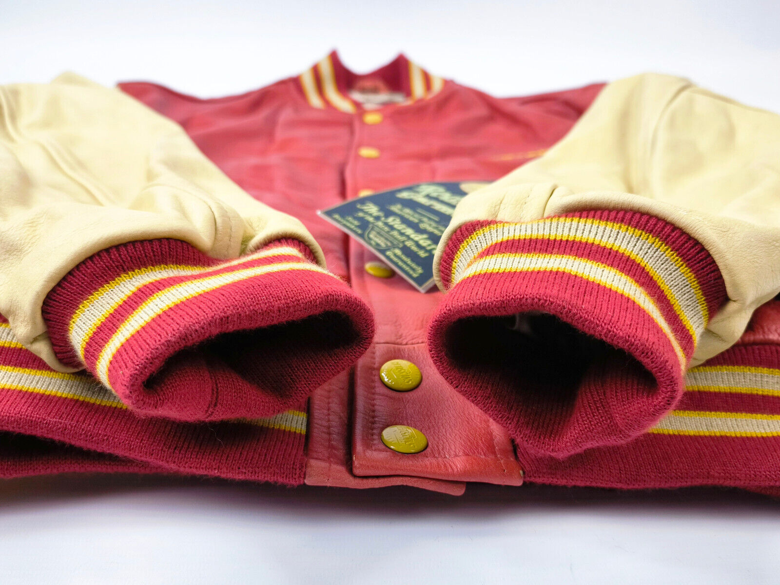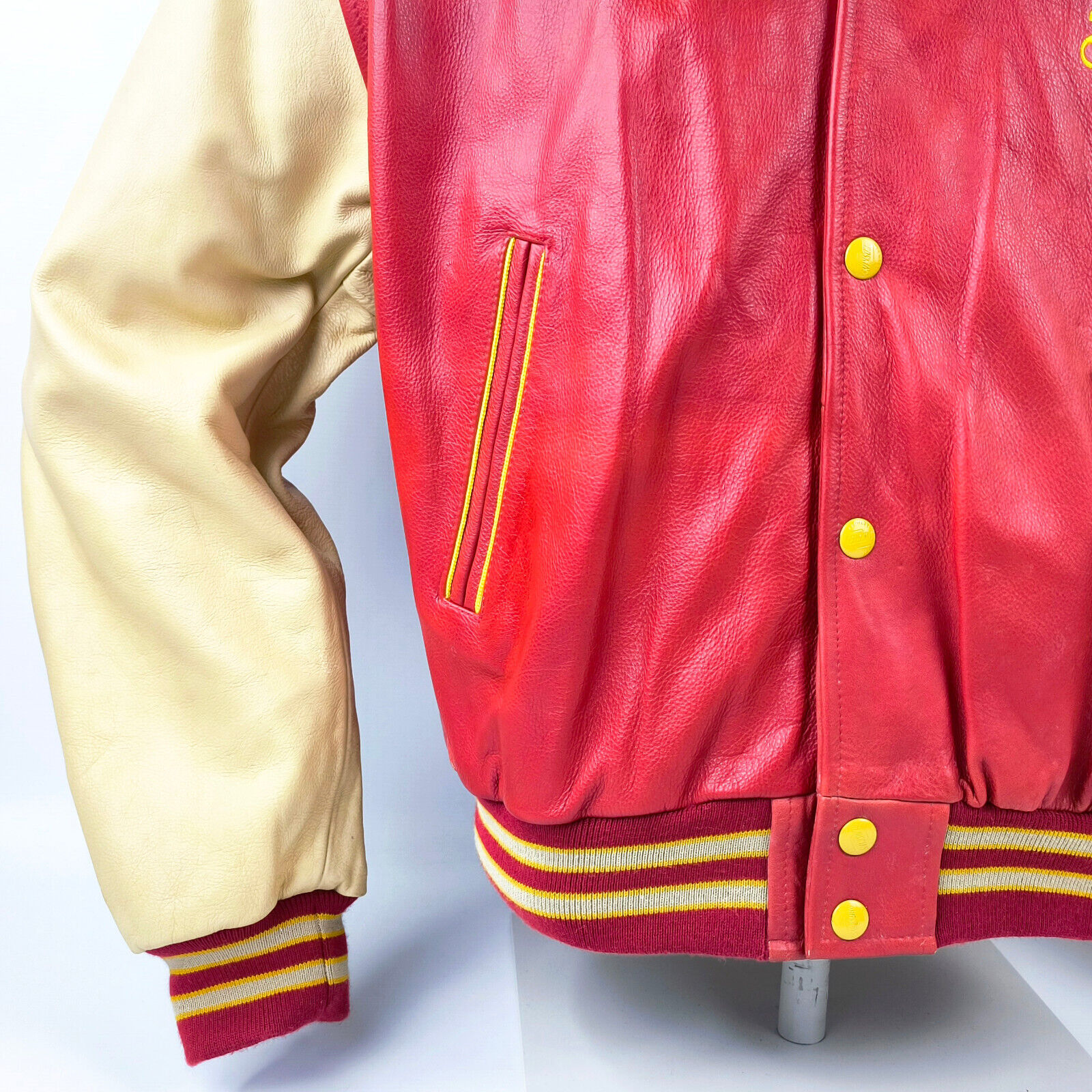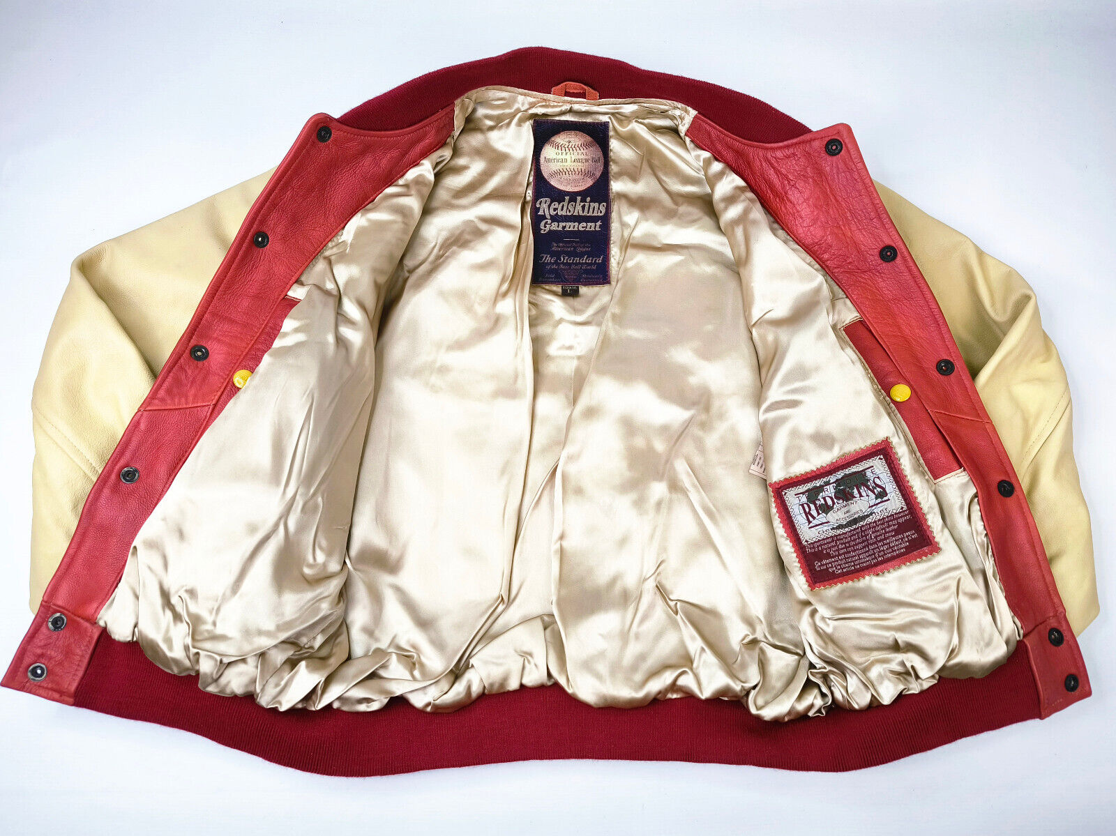 "Redskins Lederjacke Leather Jackets rot / creme Gr. L 90s neu mit Etikett !"