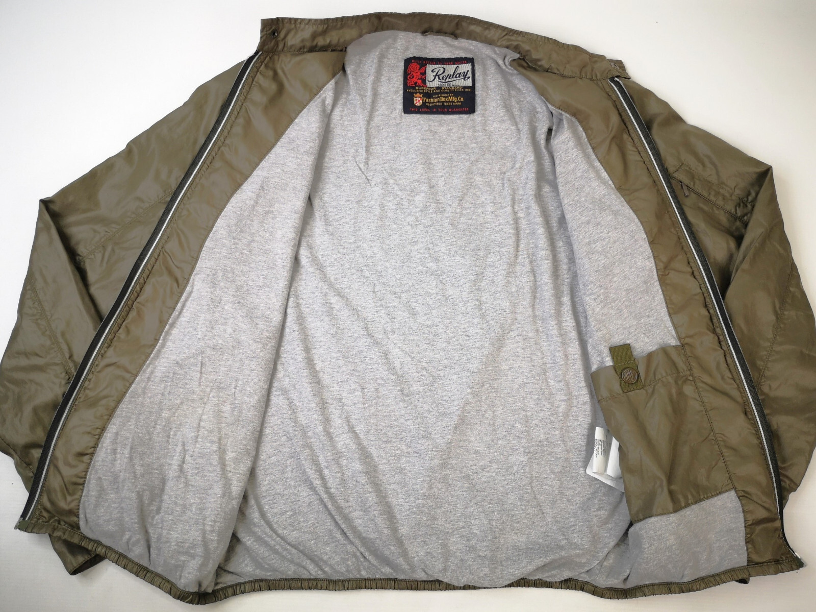 ________________________________________Marke: ChevignonFarbe: olivGröße: XXL (XL) Zustand: getragen_______________________________________Beschreibung:Die Jacke wurden getragen und befindet sich in einem sehr schönen Zustand. Außen mit leichten Trage- und Gebrauchsspuren und super gut erhalten.Innenfutter in einem sehr guten Zustand.Ebenfalls die Bündchen, sehr sehr gut erhalten !Reißverschluß und Druckknöpfe an den Taschen funktionieren tadellos. Mitlerweile sehr seltenes Modell.In der Jacke ist die Größe XXL angegeben. Im Vergleich mit anderen Chevignon Jacken von uns, fällt sie kleiner und tendiert klar zur Größe XL.Typisch der Schnitte der damaligen Zeit ist sie im Brustbereich eher breit und dafür vom Rücken her kürzer geschnitten.Bitte die Maße prüfen für eine perfekte Passform._______________________________________Die ca. Maße sind wie folgt:Brustbreite von Achsel zu Achsel: 67cmÄrmellänge ab Höhe Schulter: 70cmRückenlänge inkl. Kragen und Bund: 68cm_______________________________________Material lt. Etikett:Außen / Innen: 100% Nylon_______________________________________Pflegeanleitung:Maschinenwäsche 30 Grad