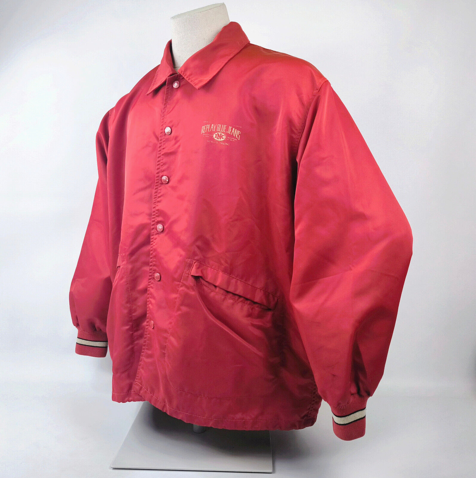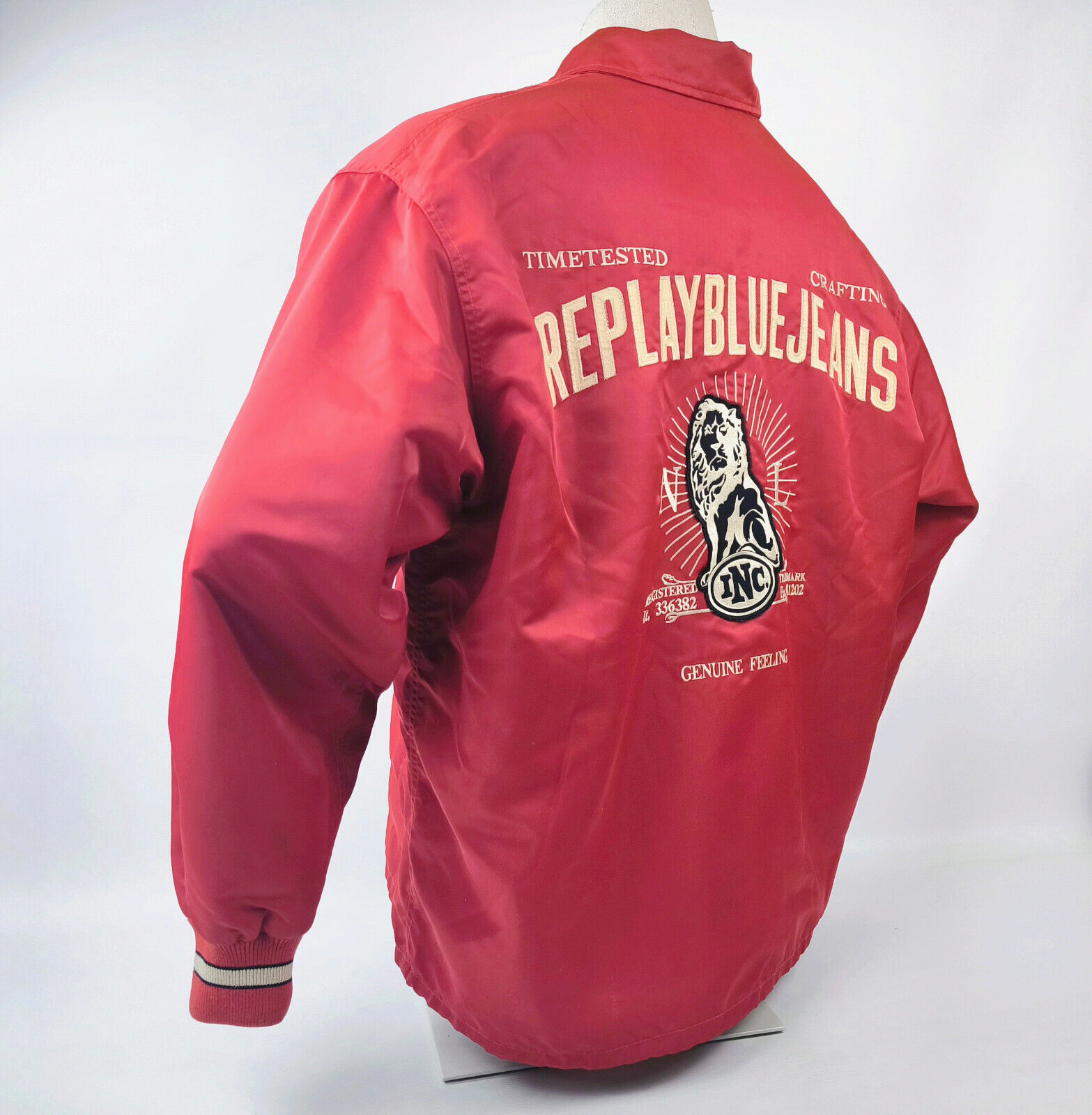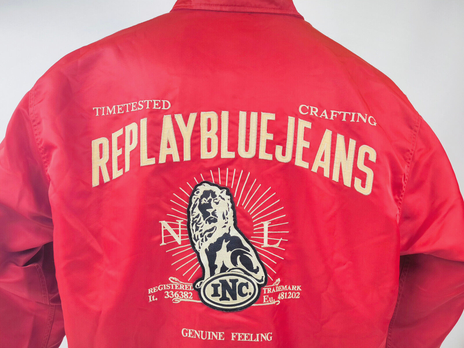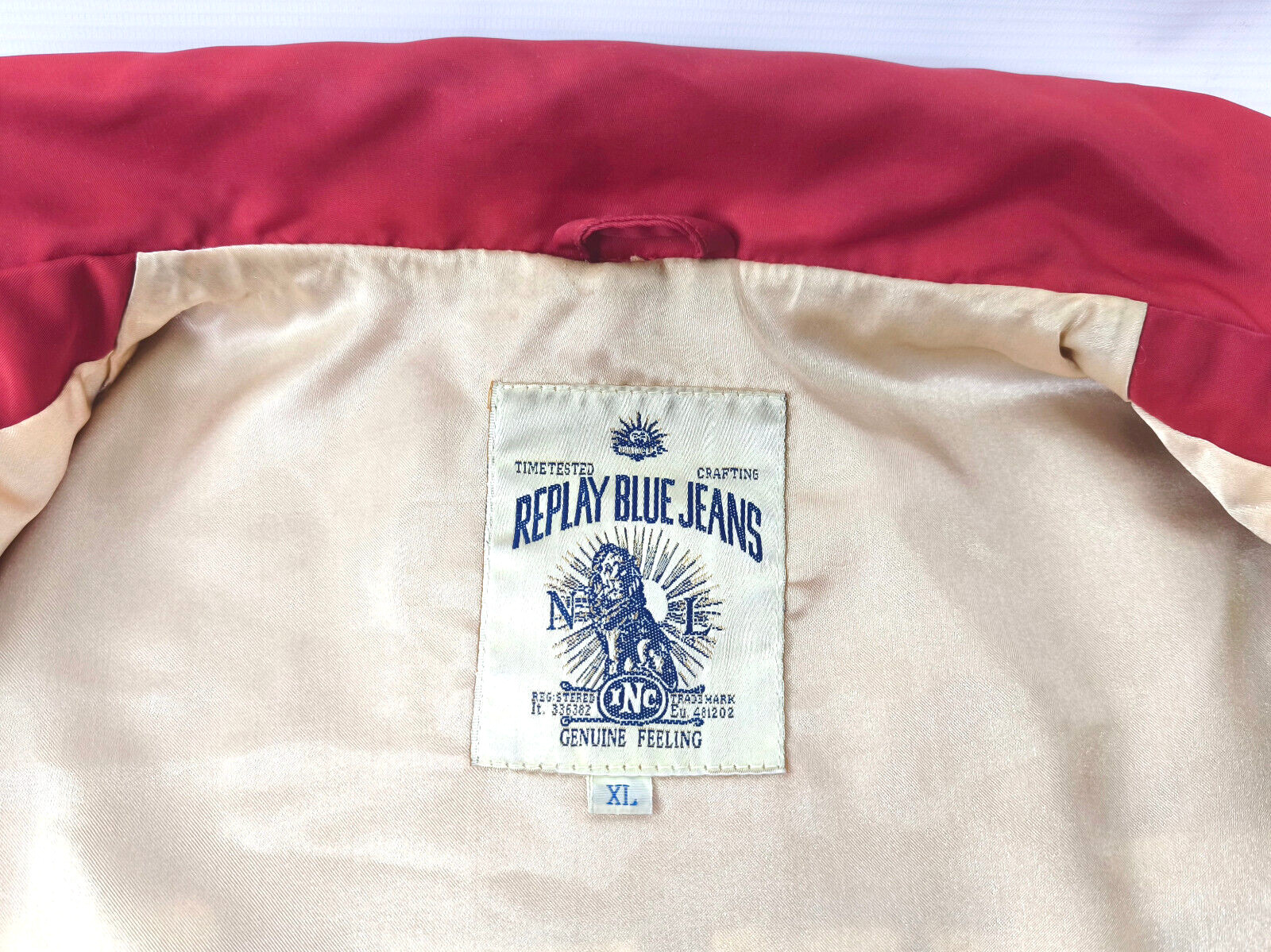 Preisvorschlag für Replay Blue Jeans Jacke Löwe rot Gr. XL (XXL) 90er vintage