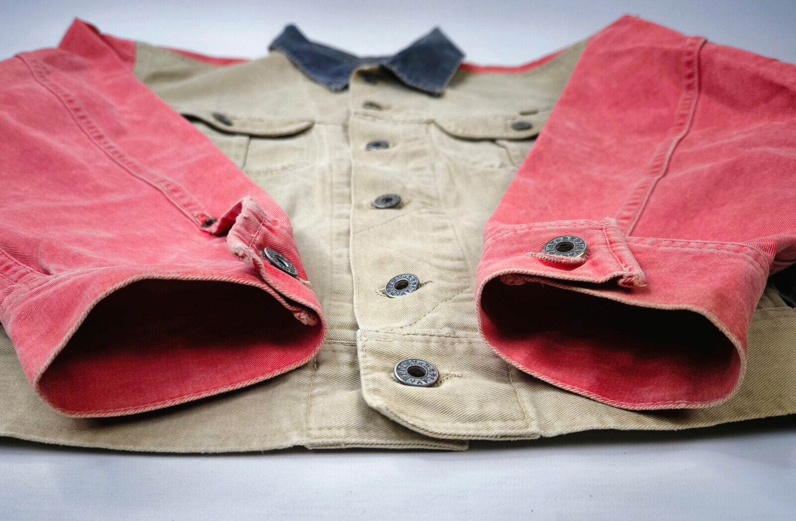 ________________________________________Marke: ChevignonFarbe: Innen grau / Lederärmel lachsfarbenGröße: M Zustand: sehr gut_______________________________________Beschreibung:Die Jacke befindet sich in einem sehr guten Zustand. Es sind trotz des hohen Alters der Jacke nur wenige und dann kleine Gebrauchsspuren zu erkennen ! Lederärmel mit minimaler Patina und sehr gut erhalten ! Butterweiches und ganz feines Leder !Innenfutter und auch die Bündchen ebenfalls im sehr guten Zustand. Druckknöpfe funktionieren tadellos. Seltenes Exemplar mit russischer Label Schrift auf dem Rücken im tollen Zustand !Die Jacke fällt typisch der Schnitte damaligen Zeit etwas kleiner und ist auch vom Rücken her recht kurz geschnitten.Bitte die Maße beachten für eine perfekte Passform._____________________________________Die ca. Maße sind wie folgt:Brustbreite von Achsel zu Achsel: 63cmÄrmellänge ab Höhe Schulter: 68cmRückenlänge inkl. Kragen und Bund: 64cm_______________________________________Material lt. Etikett:Außen / Futter: 100% Baumwolle-Leder / 100% Acetat_______________________________________Pflegeanleitung:professionelle Textilreinigung
