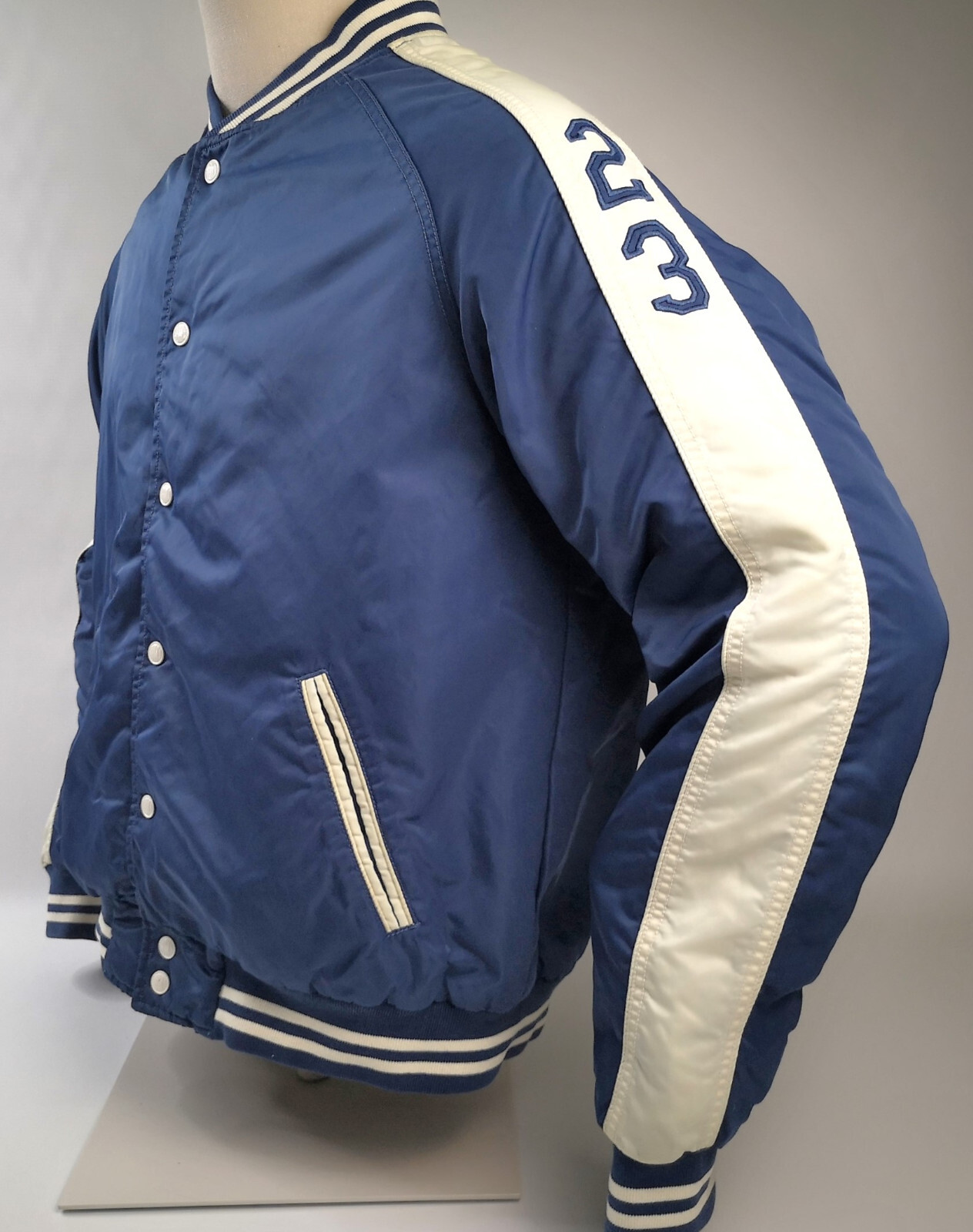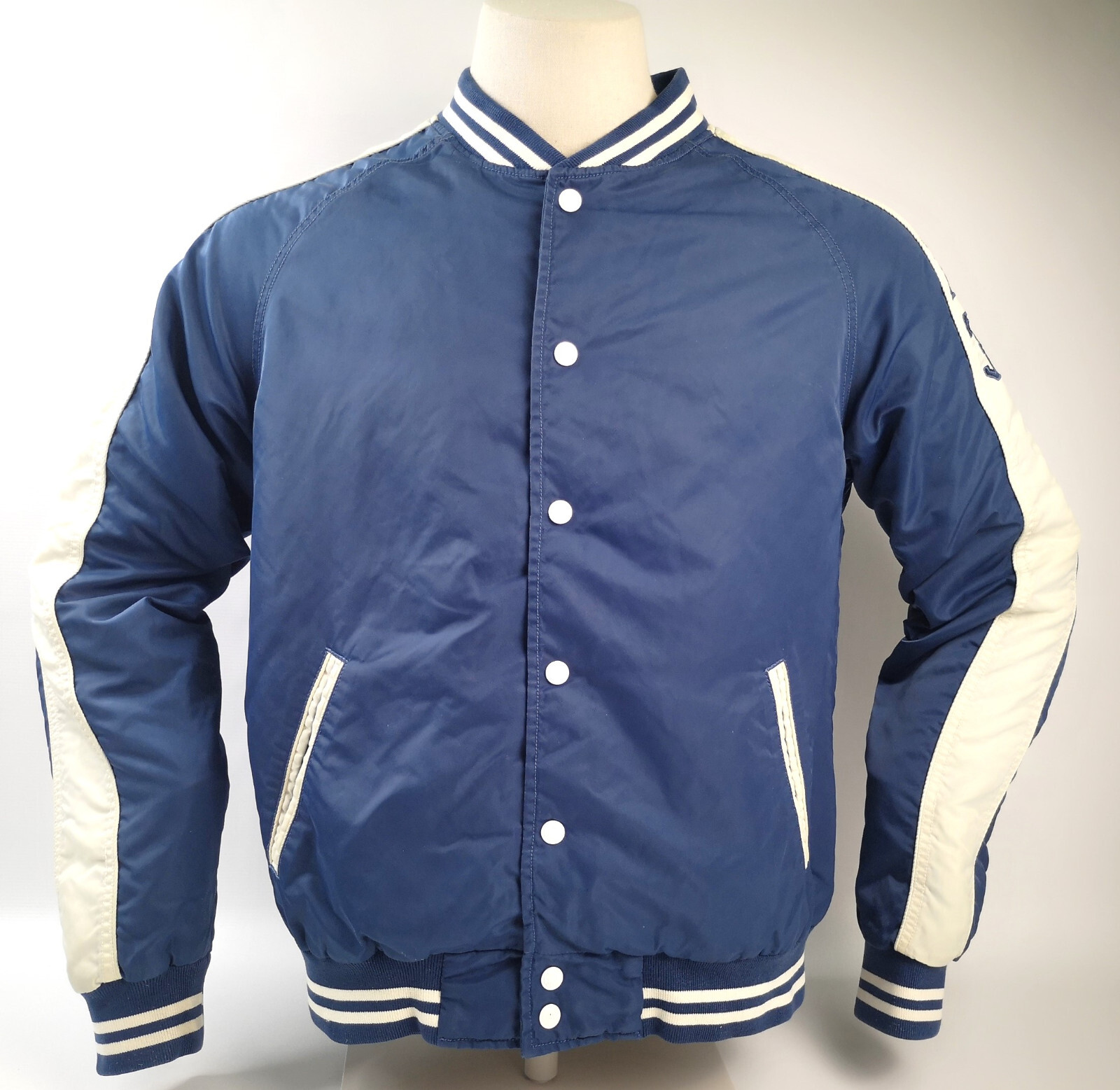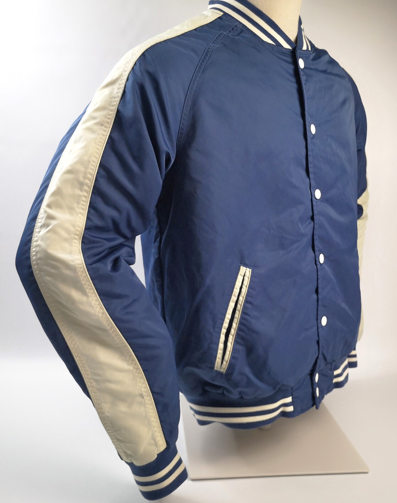 ______________________________________ Marke: AvirexModell: VarsityGröße: M (L)Farbe: graublau Zustand: sehr gut______________________________________Beschreibung:Die Jacke befindet sich in einem sehr sehr guten Zustand ! Es sind nur minimalste und kaum sichtbare Tragespuren zu erkennen. Innenfutter sehr sehr gut im Zustand !Bündchen und auch am Außenmaterial ebenfalls sehr sehr gut erhalten erhalten.Reißverschluß und Druckknöpfe funktionieren tadellos.Die Farbe ist eine Art graublau, das Material schimmert und hat einen leichten Glanz.Eine wahnsinnig tolle, seltene Avirex Jacke aus den frühen 1990er Jahren.Als Größe ist eine M angegeben. Im Vergleich mit anderen Jacken von uns hat sie eine leichte Tendenz zur Größe L.Bitte die Maße prüfen für eine perfekte Passform.Typisch der Schnitte der früher 1990er Jahren fällt die Jacke breit, vom Rücken her aber kurz geschnitten aus.______________________________________Die ca. Maße sind wie folgt:Brustbreite von Achsel zu Achsel: 65cmÄrmellänge ab Höhe Schulter: 68cmRückenlänge inkl. Kragen und Bund: 66cm_______________________________________Material lt. Innenetikett:Außen / Innen: 100% Nylon / 50% Nylon + 50% AcetatFutter: 100% Polyester _______________________________________ Pflegeanleitung:Maschinenwäsche 30 Grad