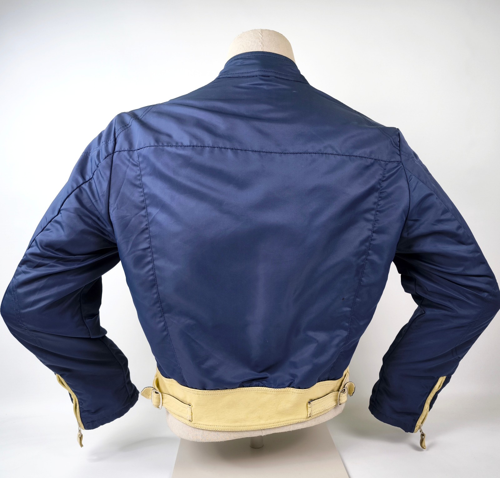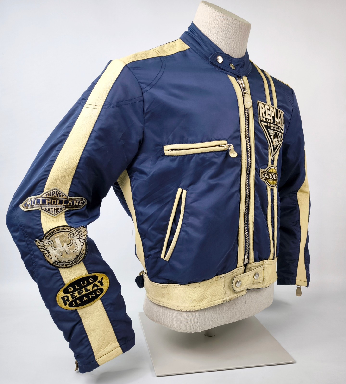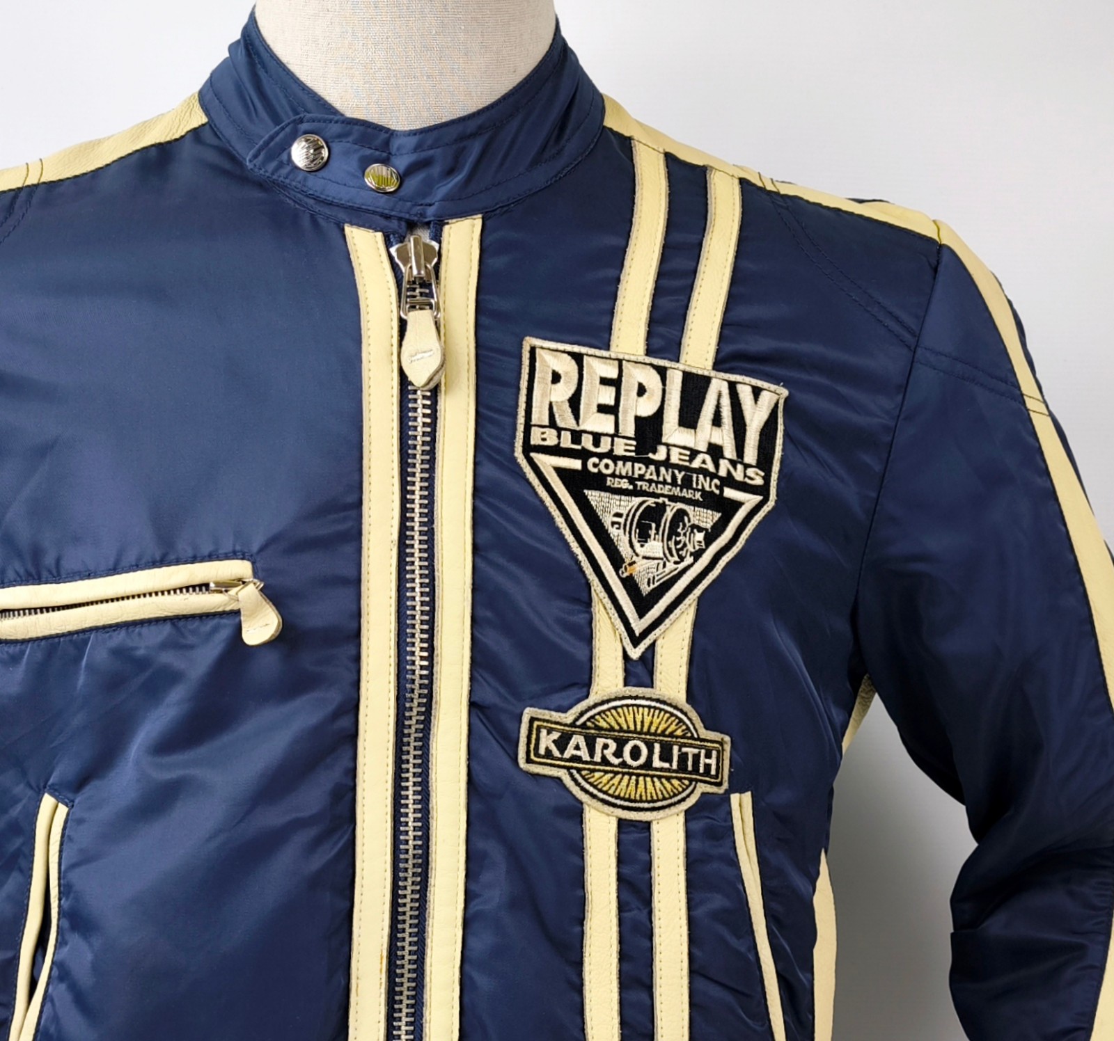 Preisvorschlag für Replay Jacke dunkelblau Gr. M (S) Leder Nylon Mix vintage 90s Biker