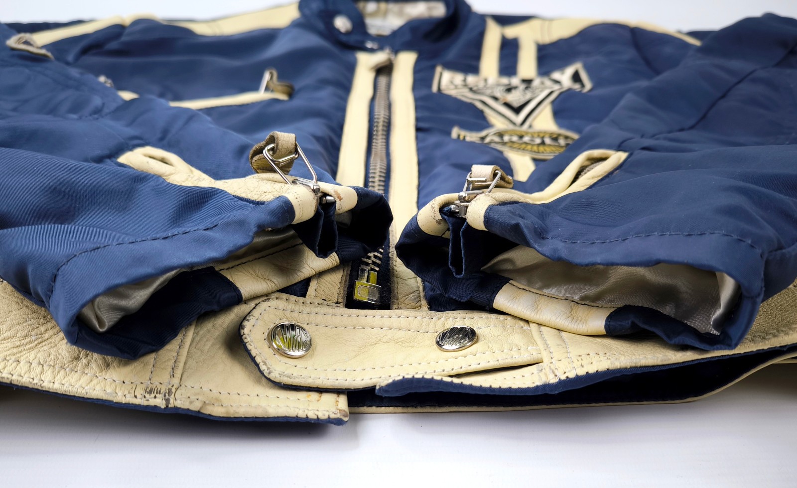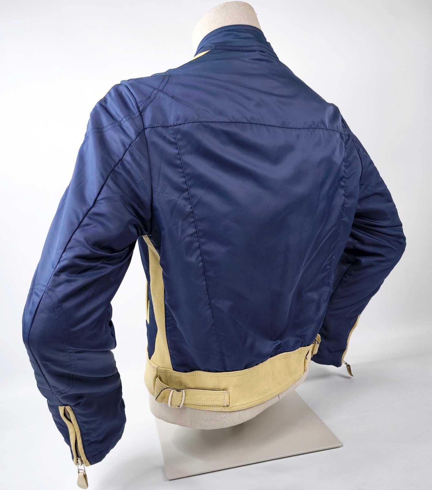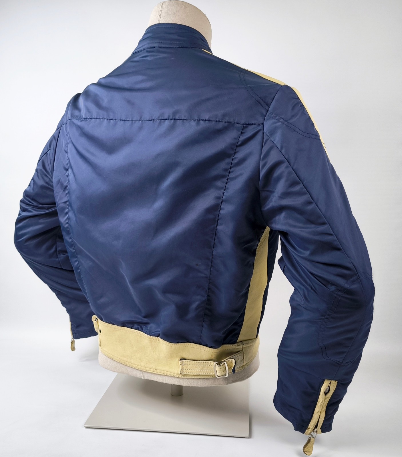 Preisvorschlag für Replay Jacke dunkelblau Gr. M (S) Leder Nylon Mix vintage 90s Biker