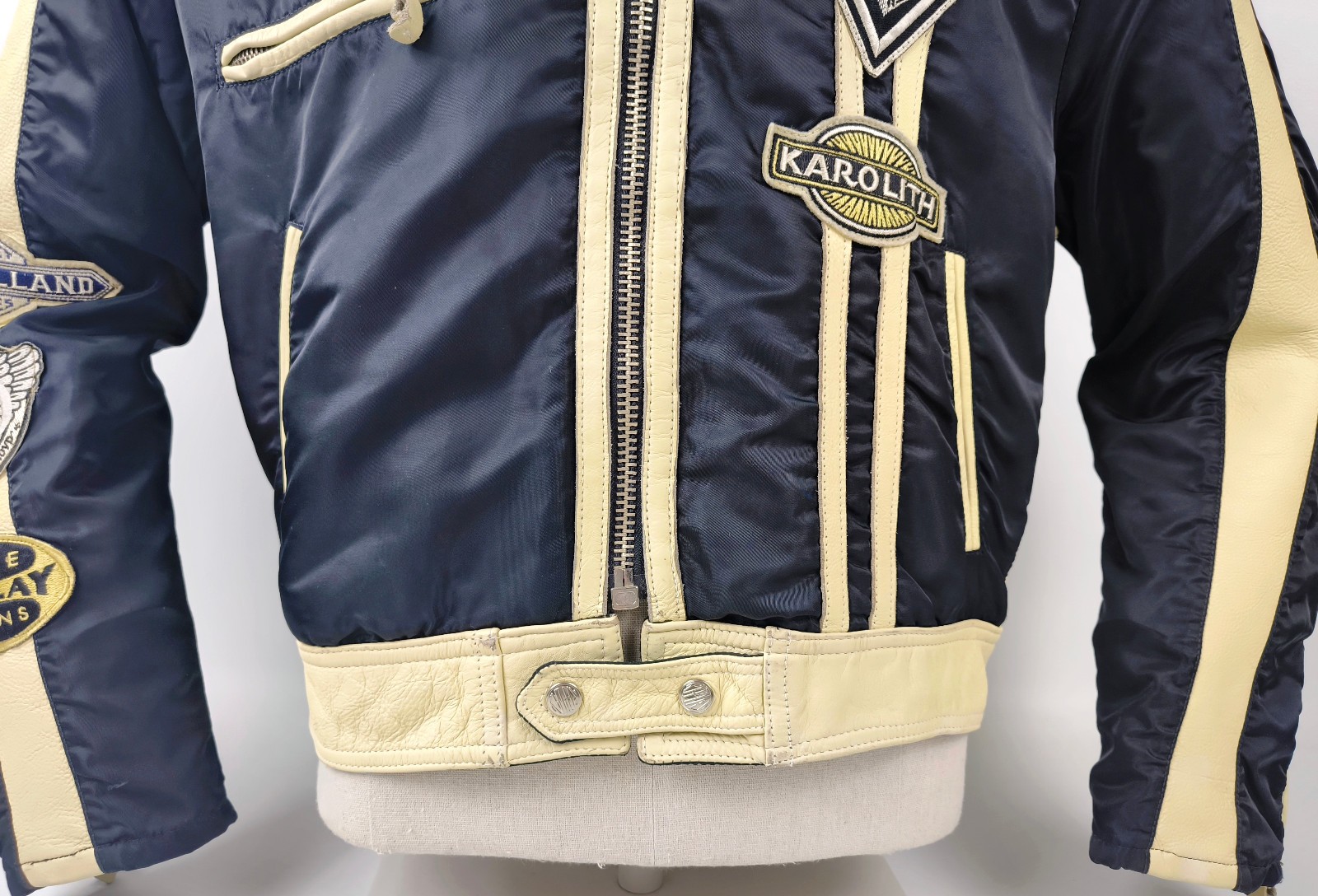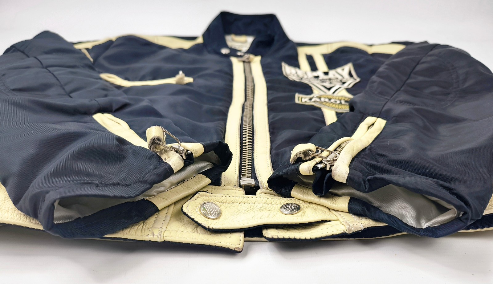 Preisvorschlag für Replay Jacke schwarz Gr. L (M) Leder Nylon Mix vintage 90s Biker