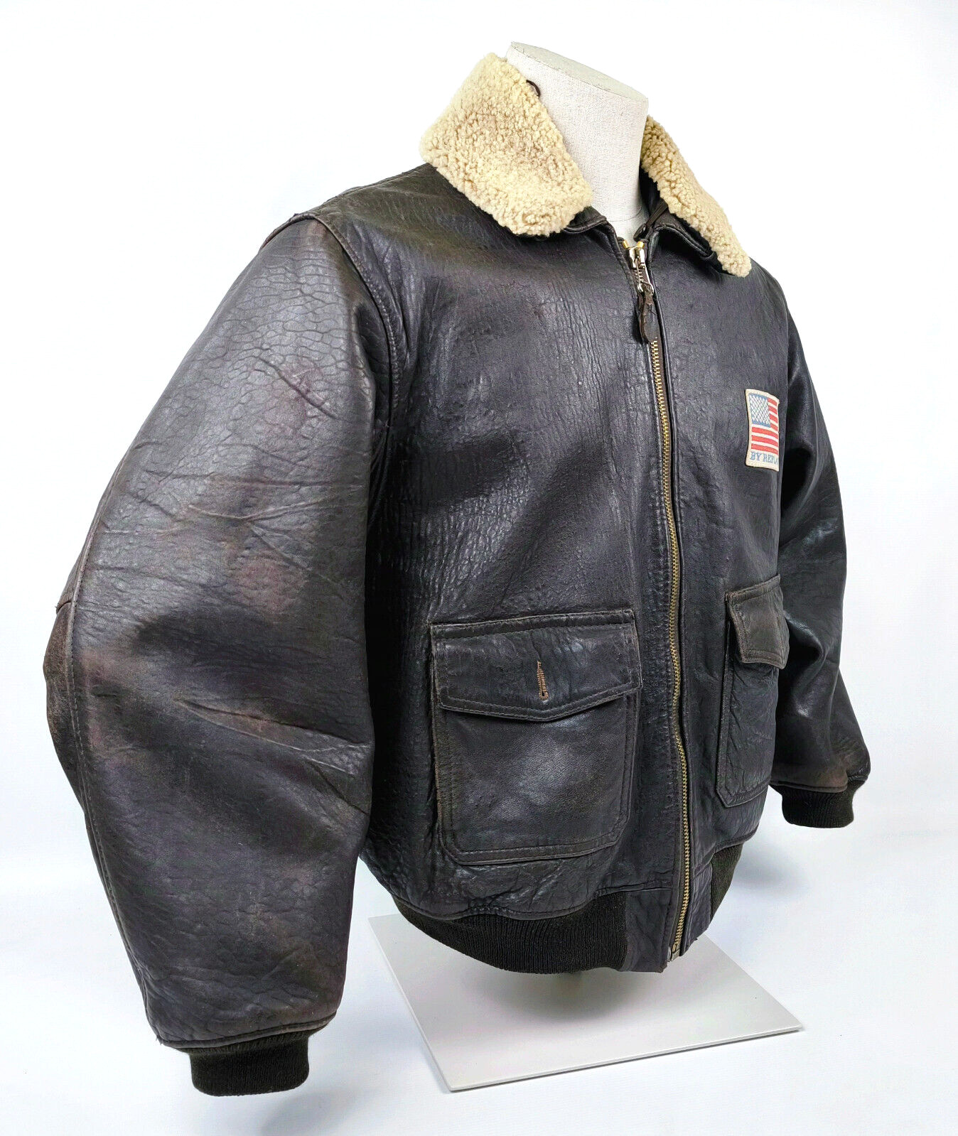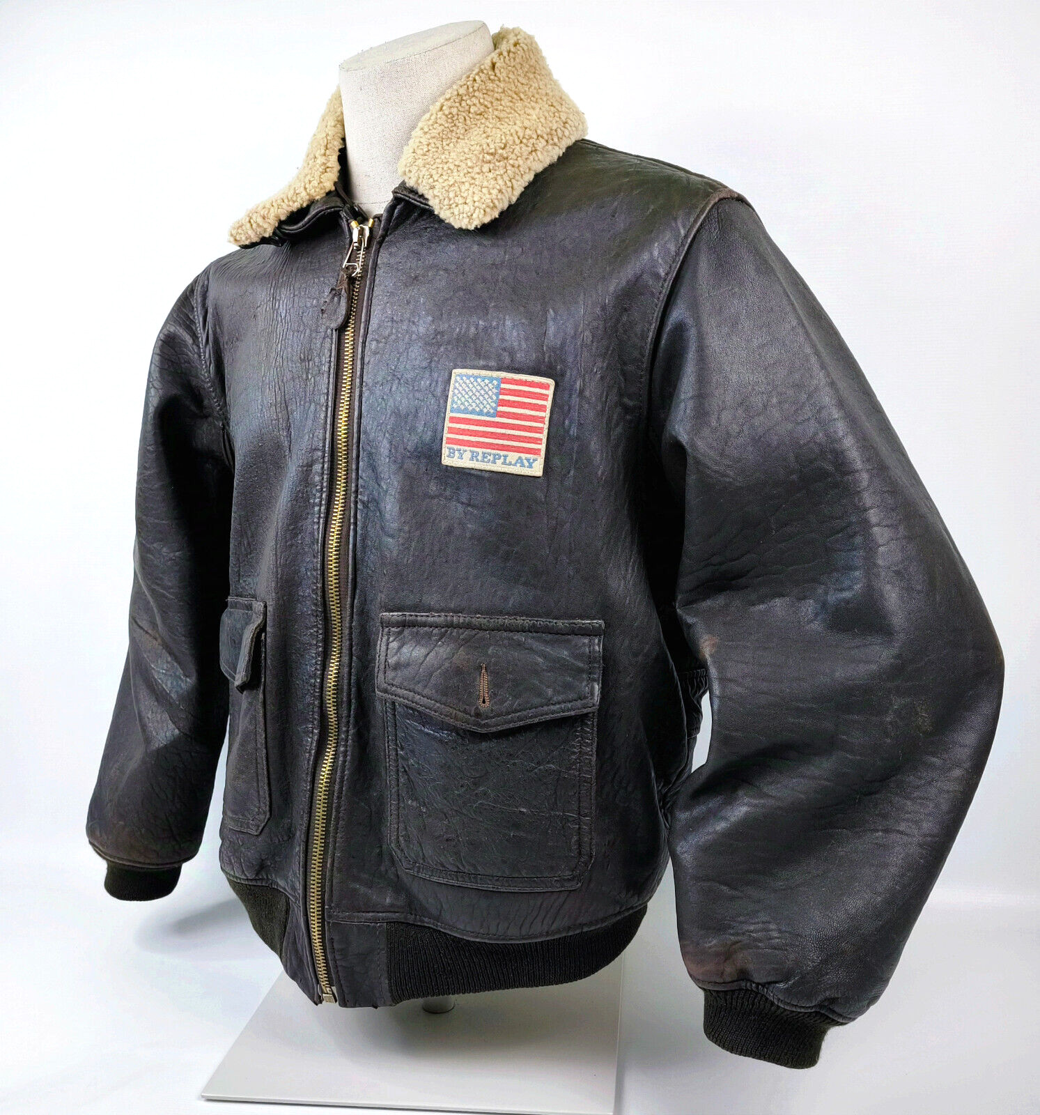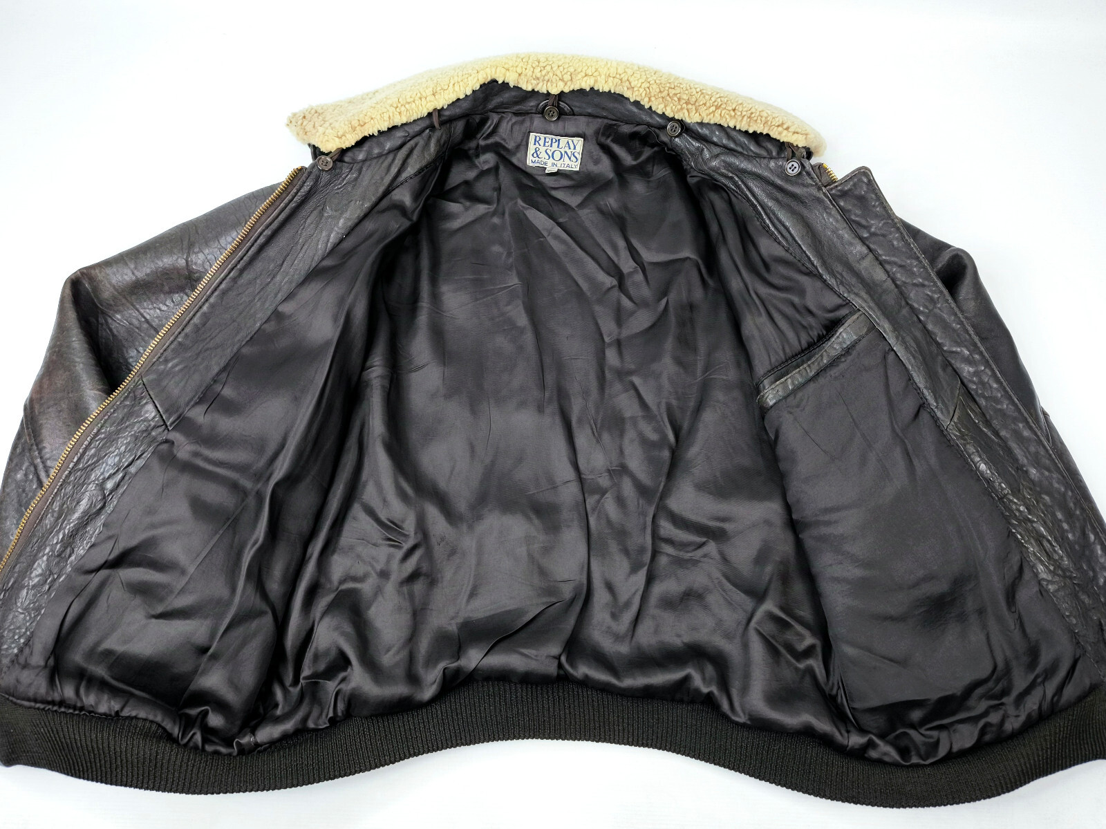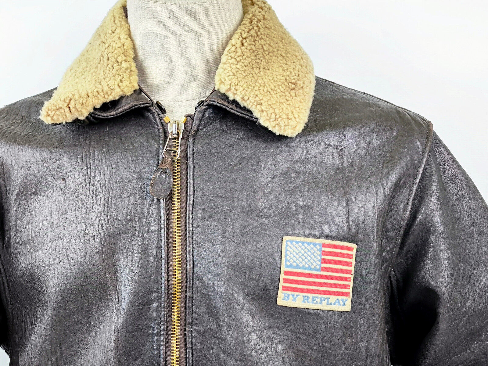 Preisvorschlag für Replay Lederjacke dunkelbraun Gr. VIII (L) Fliegerjacke vintage 90s Flying Wear