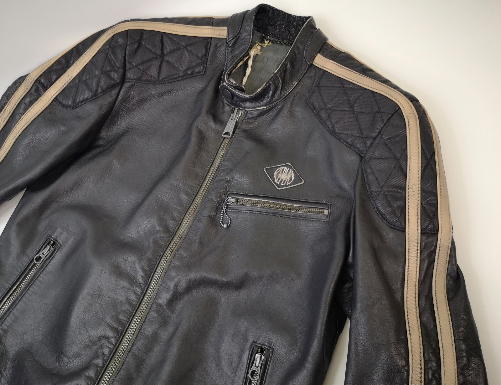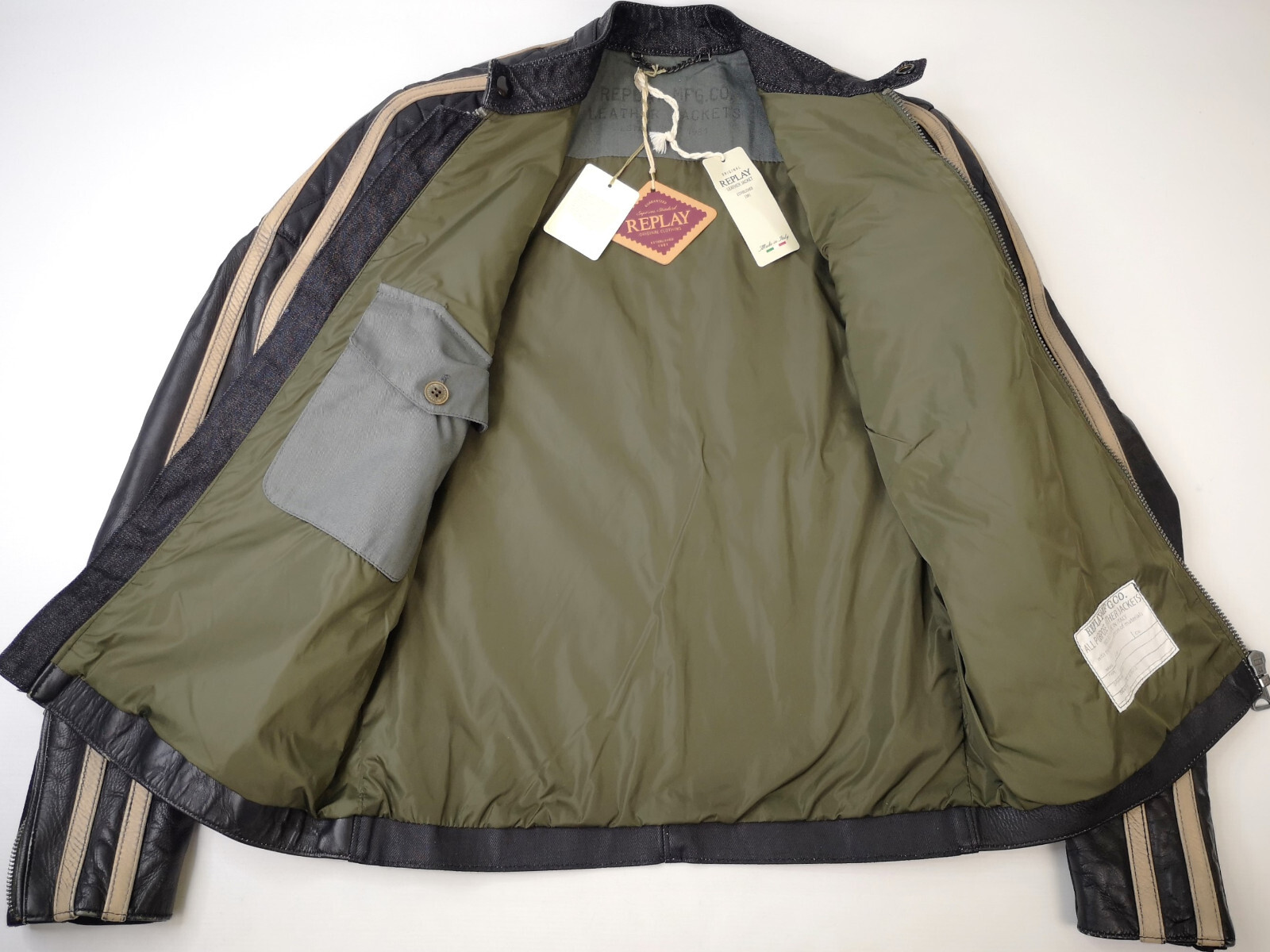 Preisvorschlag für Replay Lederjacke schwarz Biker Jacke Gr. M Leder Mix Neu und ungetragen