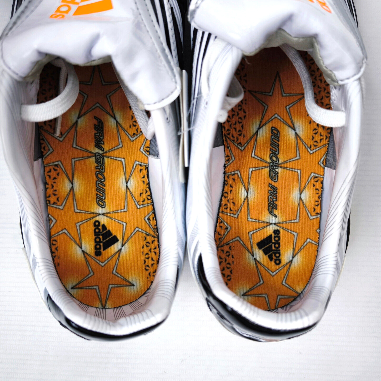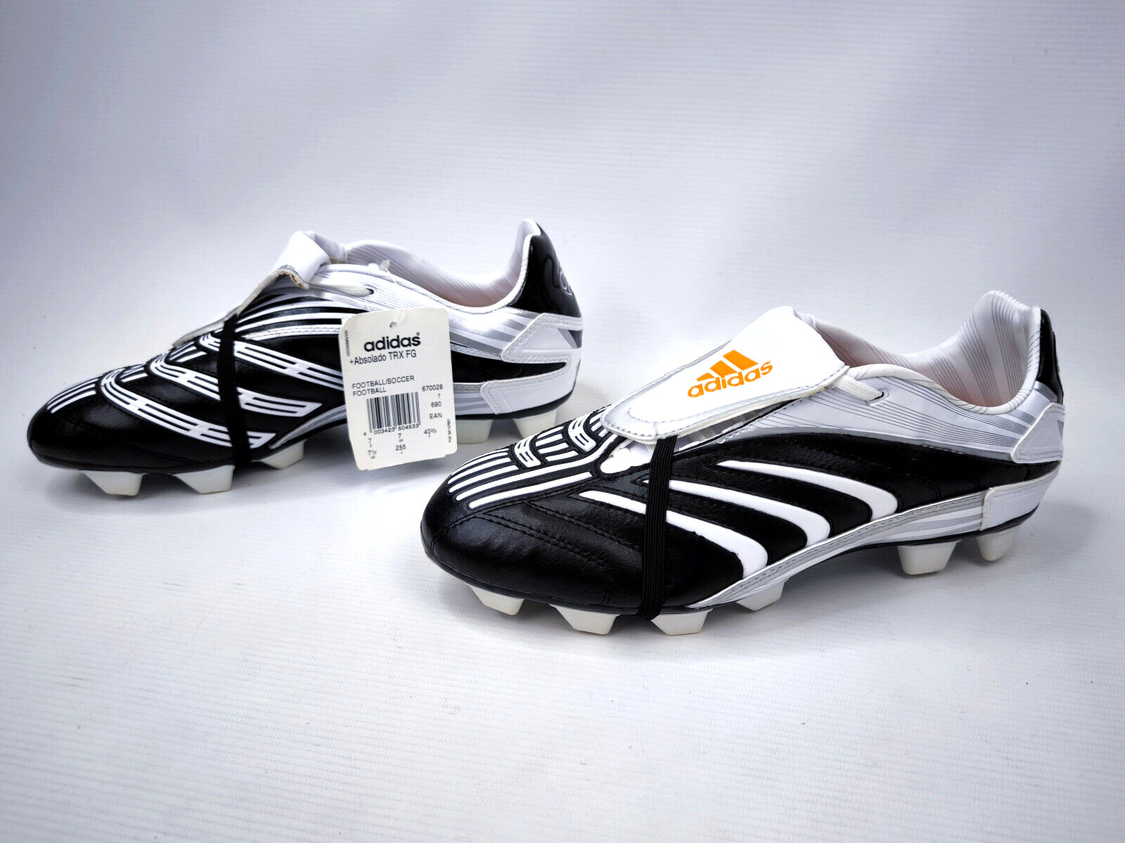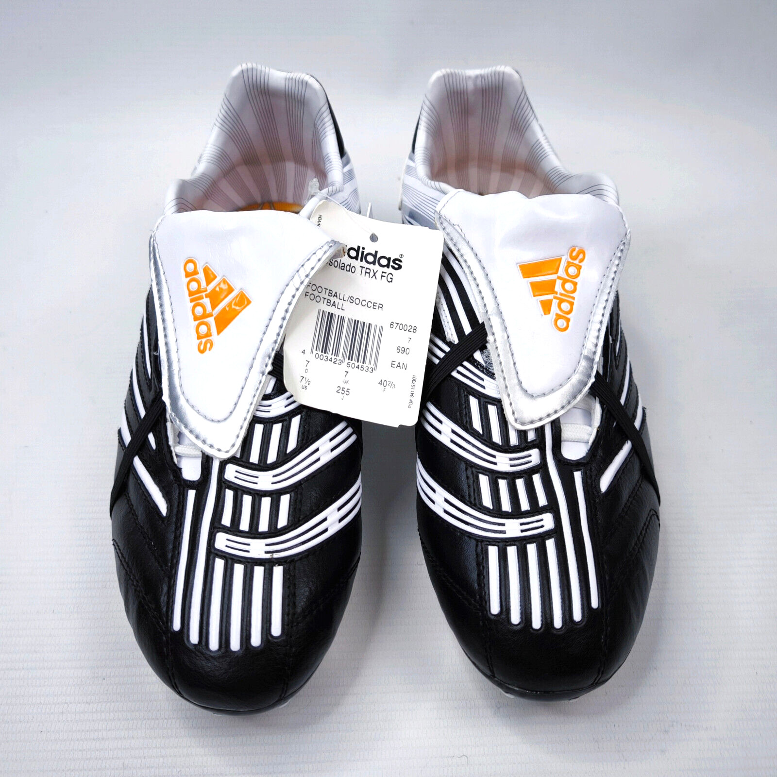 ________________________________________Marke: adidasModell: F10 TRX FG / U41869Größe: Eur 41 1/3 / UK 7.5 / US 8Farbe: orange / schwarz Zustand: neu_______________________________________Beschreibung:Die Schuhe sind neu und ungetragen mit Etikett (ohne Karton).Ein adidas super lightweight Modell aus dem Jahr 2010.Neu und ungetragen.