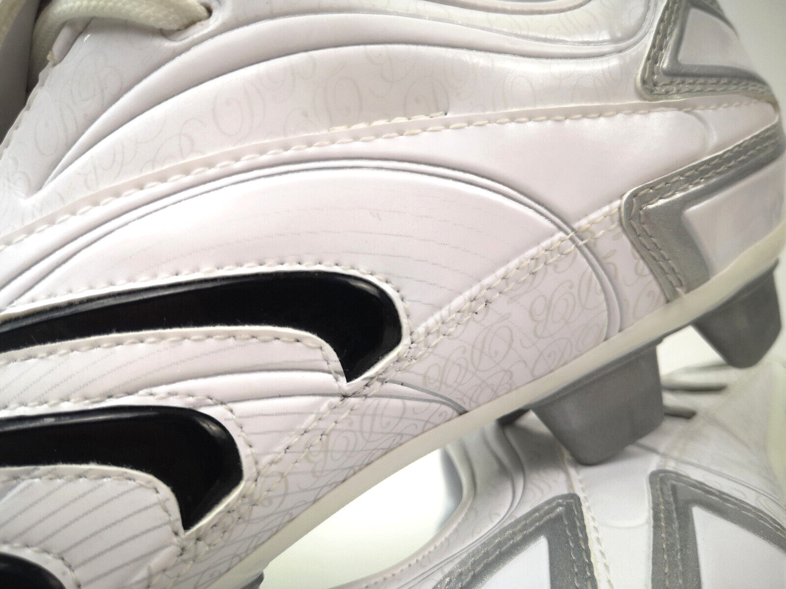 ______________________________________ Marke: NikeModell: Air Zoom Total 90 III SGModellnr.: 308228Größe: Eur 40.5 / UK 6.5 / US 7.5Farbe: siehe Fotos Zustand: getragen ______________________________________ Beschreibung:Die Schuhe wurden getragen und befinden sich in einem schönen Zustand.Das Obermaterial ist noch sehr gut erhalten mit sehr kleinen Trage- und Gebrauchsspuren.Auch die Sohle noch sehr schön im Zustand.(Stollen natürlich mit Tragespuren).Das Material am Schaft blättert hier, charakteristisch für viele Nike Fussballschuhe aus diesen Jahren oder älter, teilweise schon ab, was hier meißtens nicht verhindert werden kann.Sollte der Schuh getragen werden, wird dieses Material auch weiter abblättern, was nicht verhindert werden kann.Deswegen ist er eher als Sammlerschuh für die Vitrine gedacht und nicht zum Tragen.Made in Italy.Ein toller und sehr markanter Nike Fussballschuh.