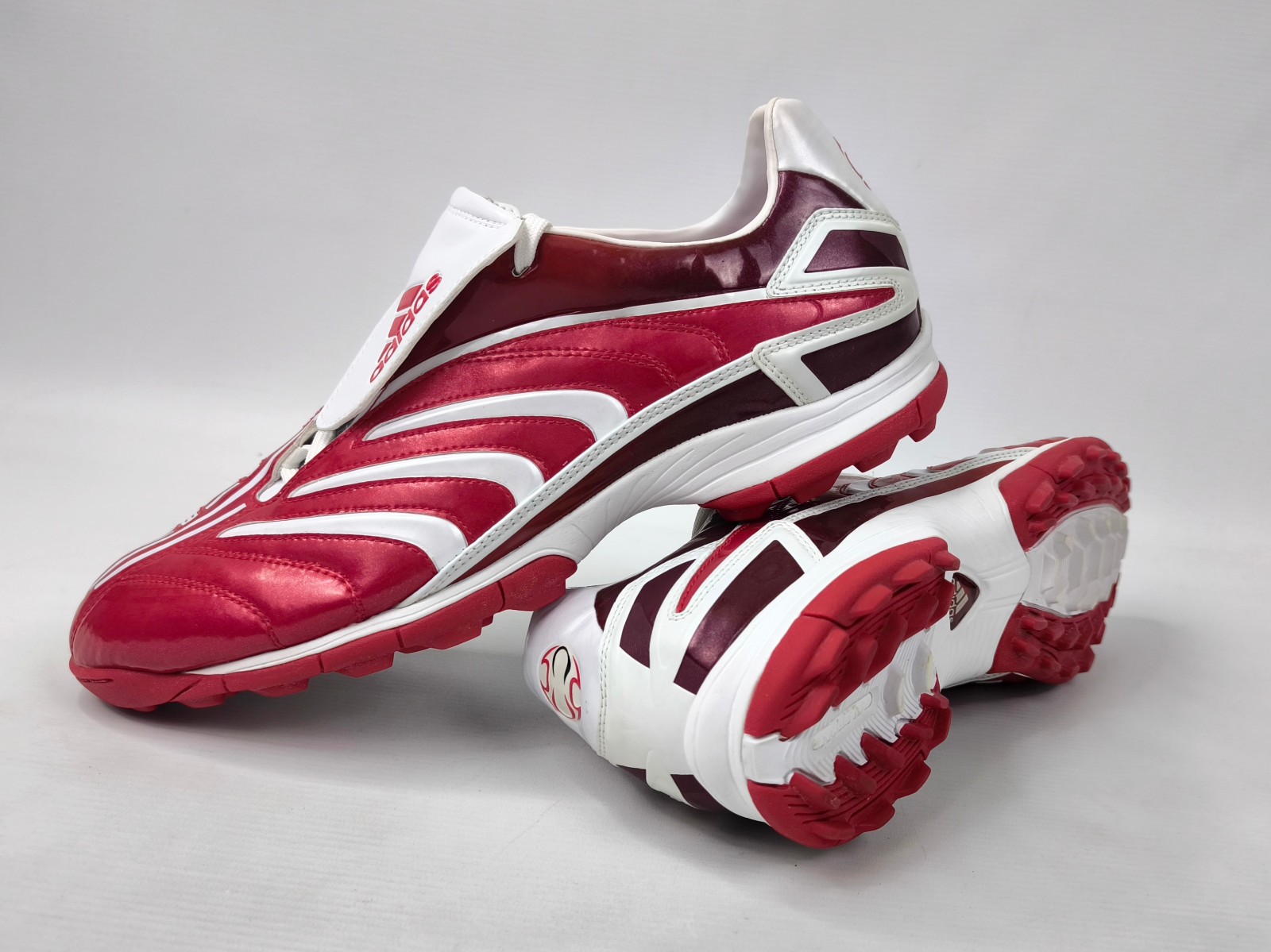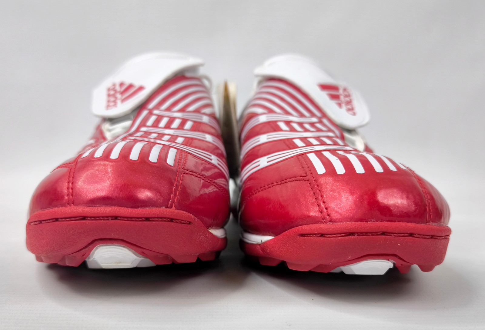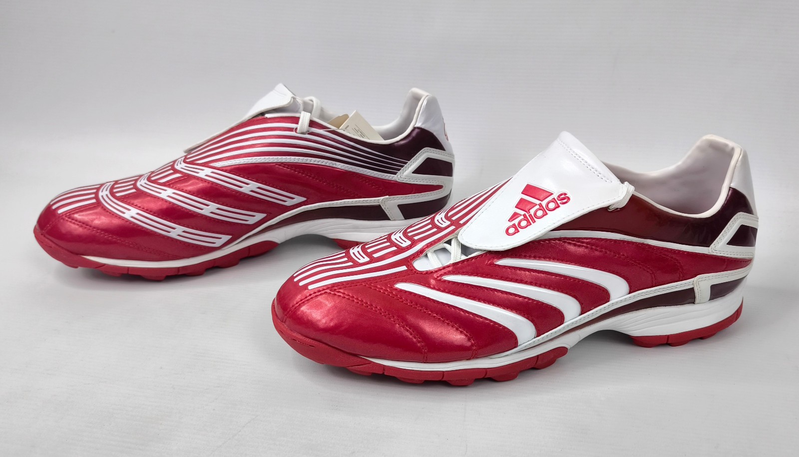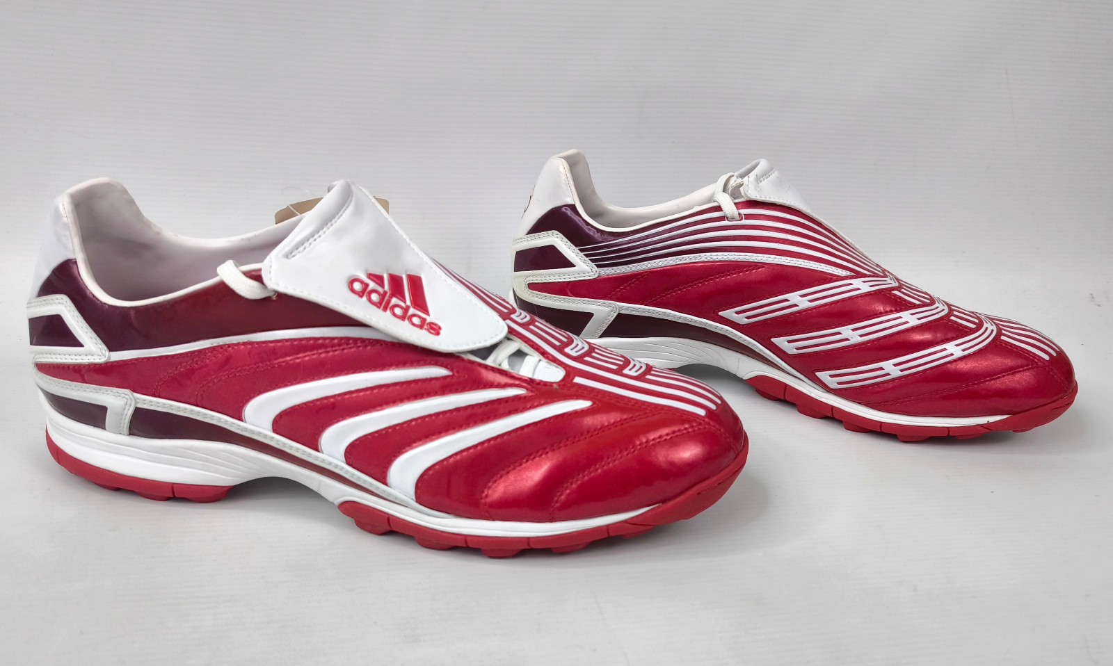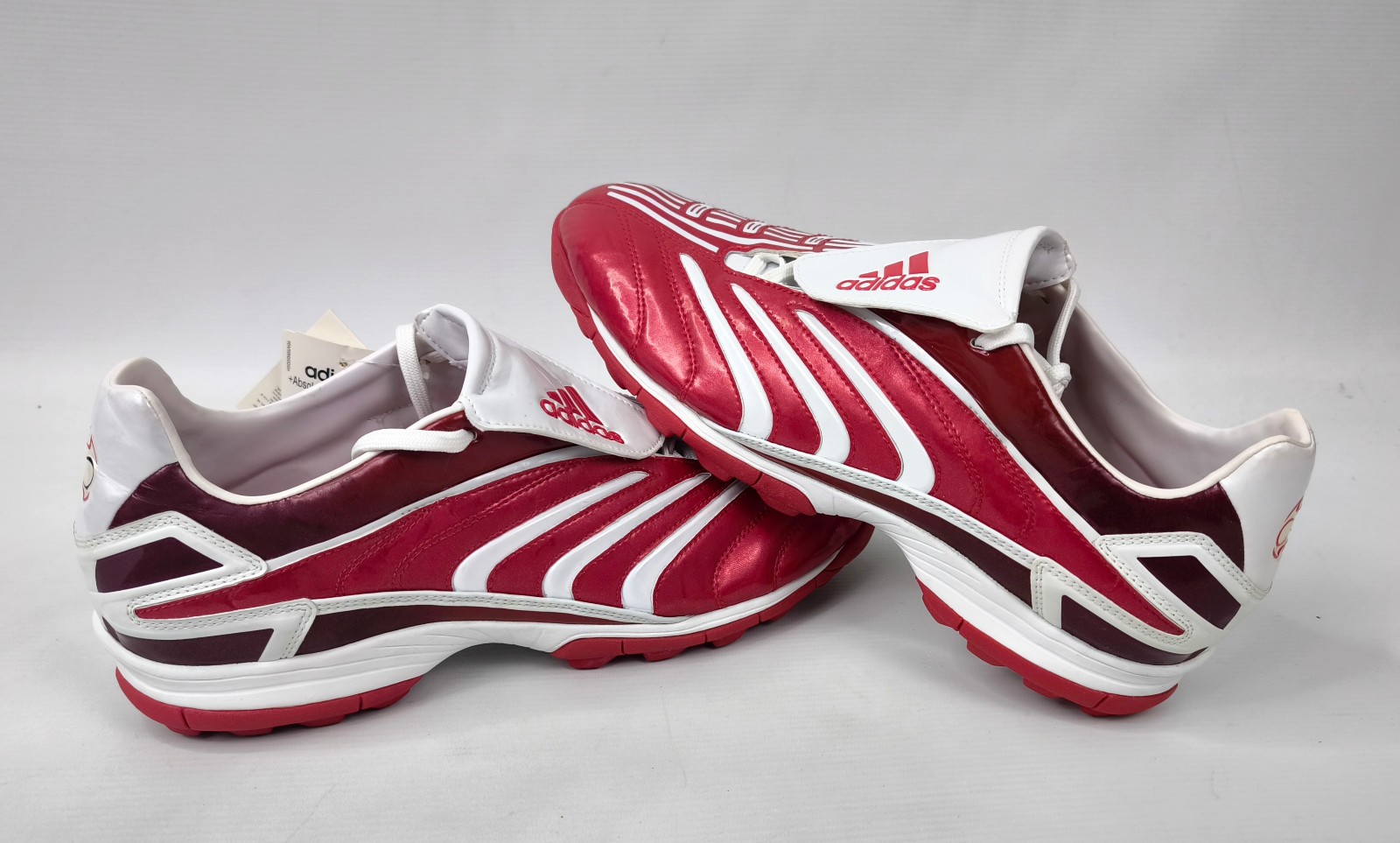 ________________________________________Marke: adidasModell: Predator Mania XTRX SGGröße: UK 7.5 / US 8 / Eur 41 1/3Farbe: siehe Karton Zustand: neu ________________________________________ Beschreibung:Die Schuhe sind neu und ungetragen im Karton.Durch das hohe Alter und die lange Lagerung sind die vorderen Lamellen und Streifen etwas dunkler geworden und die Gummis der Laschen nicht mehr ganz straff.Die Schuhe sind absolut ungetragen mit Etikett und Kartonadidas Fussballschuhe original aus dem Jahr 2002. ________________________________________ Obermaterial:100% Leder ________________________________________ Der Schuh ist als Sammlerschuh vorbehalten.Ein Tragen dieses Schuhs können wir durch das hohe Alter der Schuhe und eventuell auftretende Materialermüdung nach einem Alter von über 20 Jahren nicht garantieren.Als Schuh für die Vitrine oder die Sammlung vorbehalten !