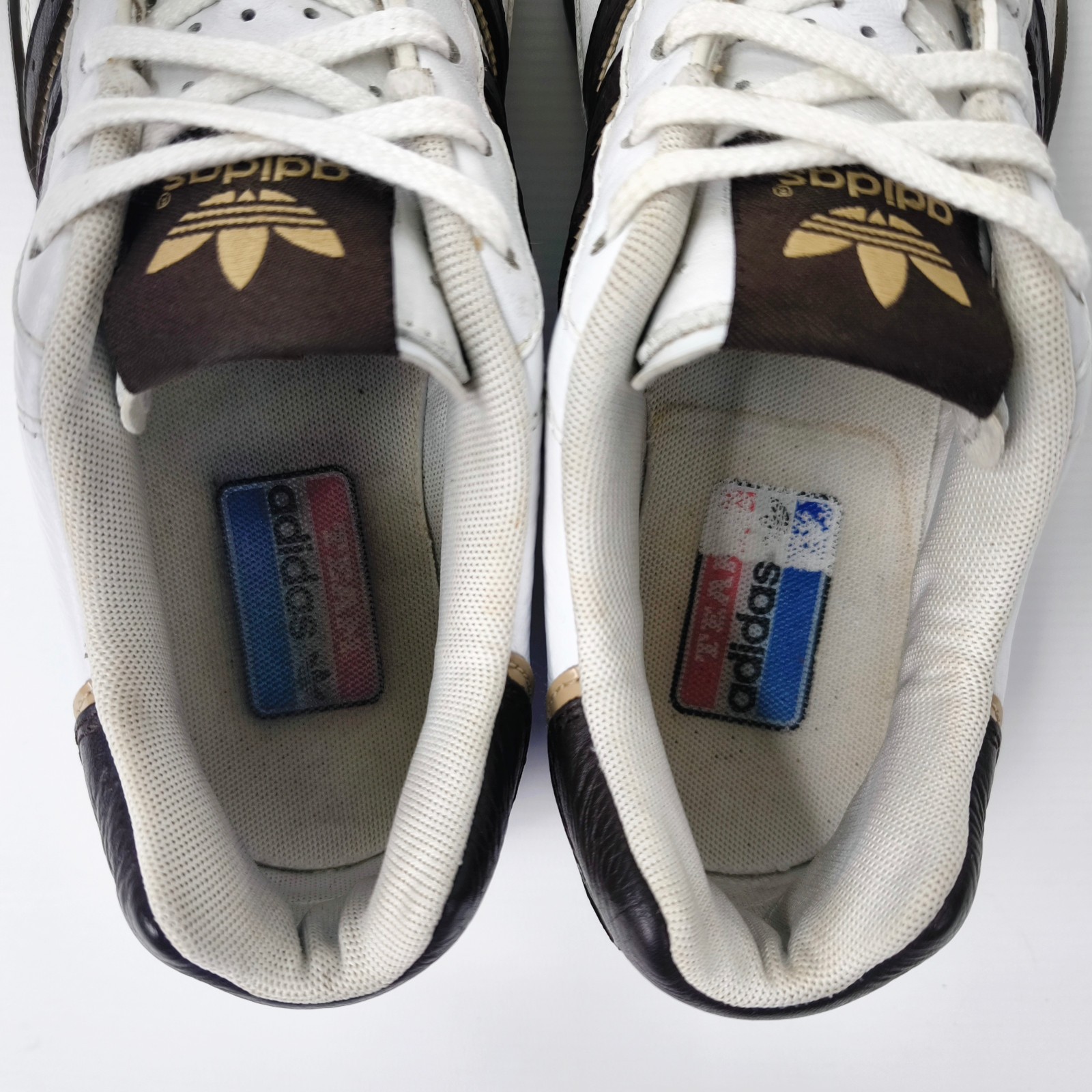 ________________________________________Marke: adidasModell: Trekking / 38630Größe: Eur 43 1/3 / UK 9 / US 9.5Farbe: braun Zustand: sehr gut________________________________________Beschreibung:Die Schuhe befinden sich in einem sehr guten Zustand.Es sind nur wenige Trage- und Gebrauchsspuren am Obermaterial, Innen sowie den unteren Sohlen zu erkennen.Innensohlen entfernt.Original adidas Modell aus den späten 1970er, frühen 1980er Jahren.Made in Yugoslavia.Superschöner Zustand !