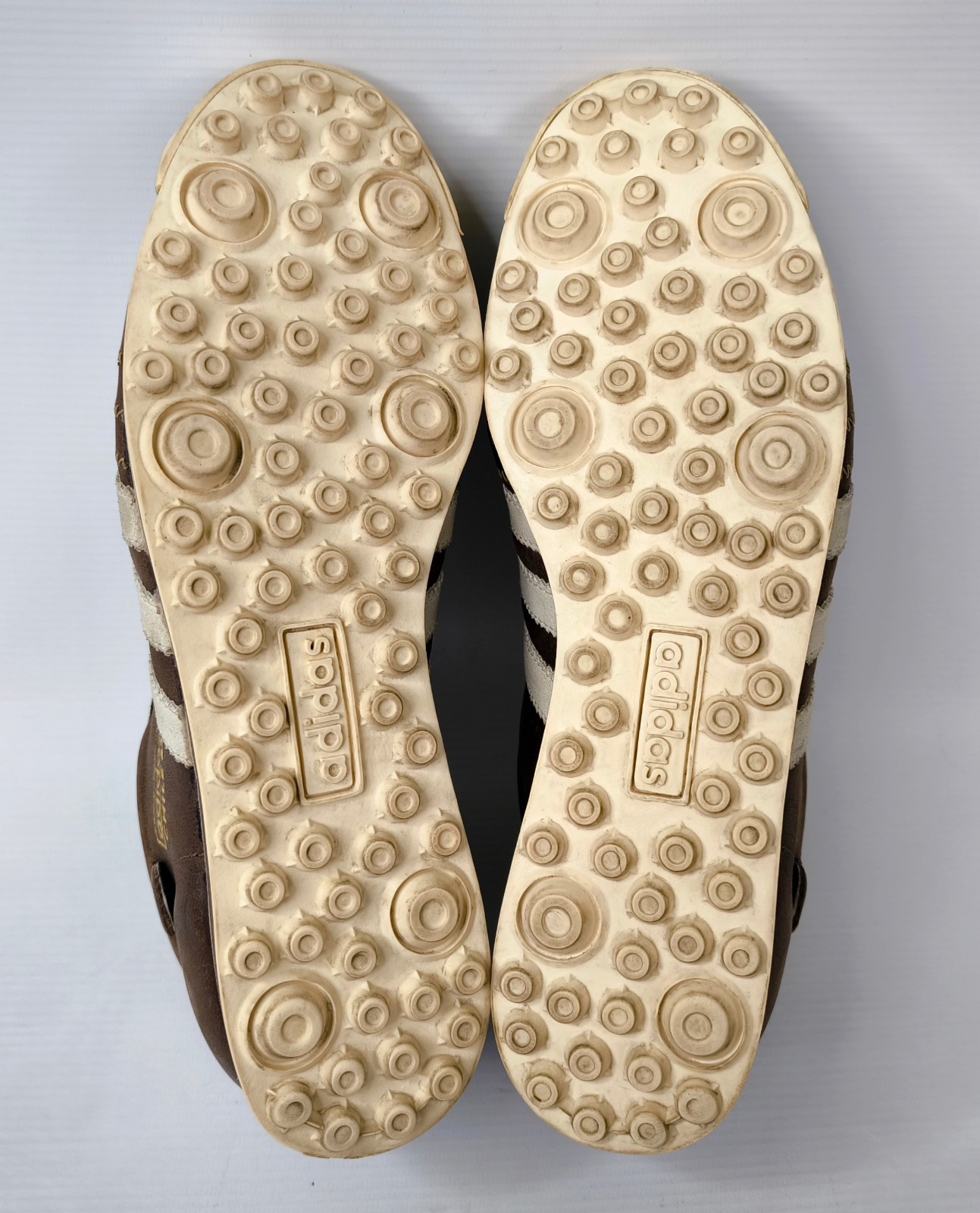 ________________________________________Marke: adidasModell: Trekking / 38630Größe: Eur 43 1/3 / UK 9 / US 9.5Farbe: braun Zustand: sehr gut________________________________________Beschreibung:Die Schuhe befinden sich in einem sehr guten Zustand.Es sind nur wenige Trage- und Gebrauchsspuren am Obermaterial, Innen sowie den unteren Sohlen zu erkennen.Innensohlen entfernt.Original adidas Modell aus den späten 1970er, frühen 1980er Jahren.Made in Yugoslavia.Superschöner Zustand !