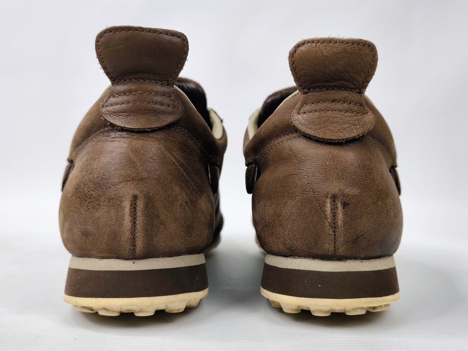 ________________________________________Marke: adidasModell: Adi Racer Low / 748751Größe: Eur 47 1/3 / UK 12 / US 12.5Farbe: dunkelbraun / creme Zustand: sehr gut_______________________________________Beschreibung:Die Schuhe befinden sich in einem sehr guten Zustand.Es sind nur minimale Tragespuren am Obermaterial, leichte im Innenbereich sowie ganz leichte Tragespuren an den unteren Laufsohlen vorhanden.Toller adidas Adi Racer Low aus dem Jahr 2007. Obermaterial 100% Leder.