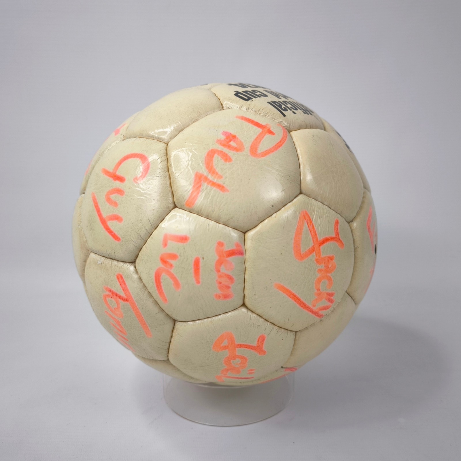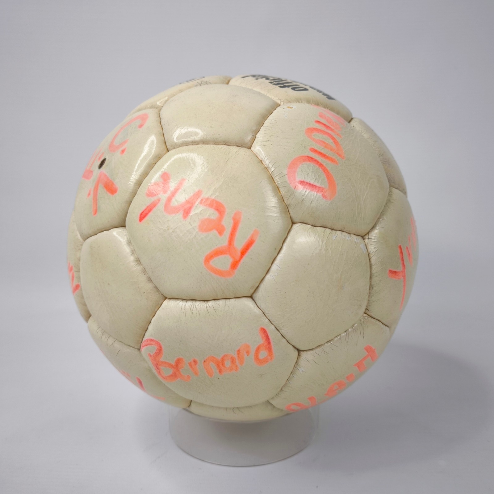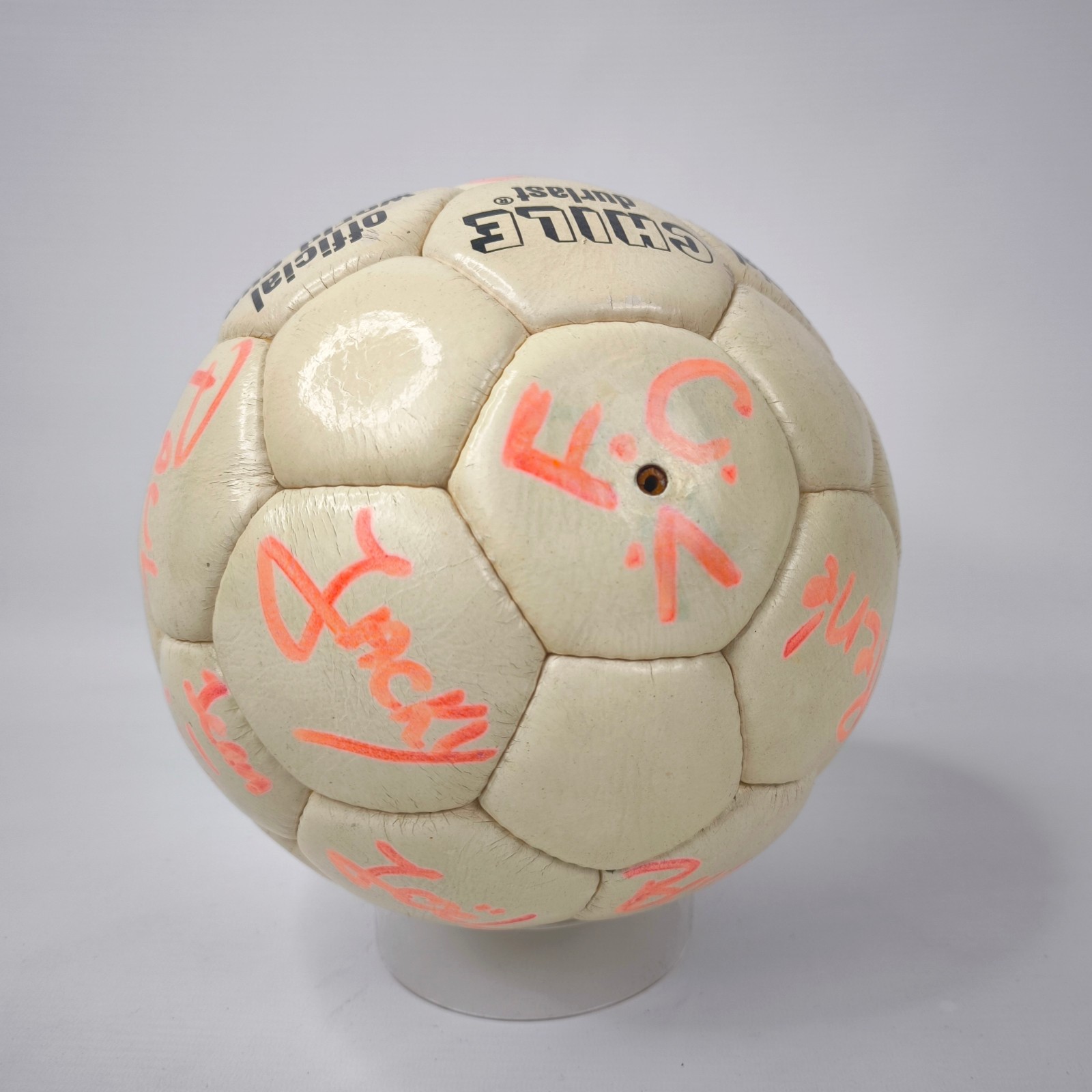 ______________________________________ Marke: adidasModell: Tango ComoGröße: 5Zustand: neu ______________________________________ Beschreibung:adidas Fussball Tango Como ca. aus dem Jahr 1990.Lässt sich aufpumpen und hält die Luft kurz.Nach einiger Zeit entweicht die Luft aber wieder aus dem Ball.Absolut perfekte runde Form auch ohne Luft !Der Ball wurde nicht bespielt.Unbenutzt, neu und in einem sehr schönen Zustand.Unterschriften einer unbekannten Mannschaft.