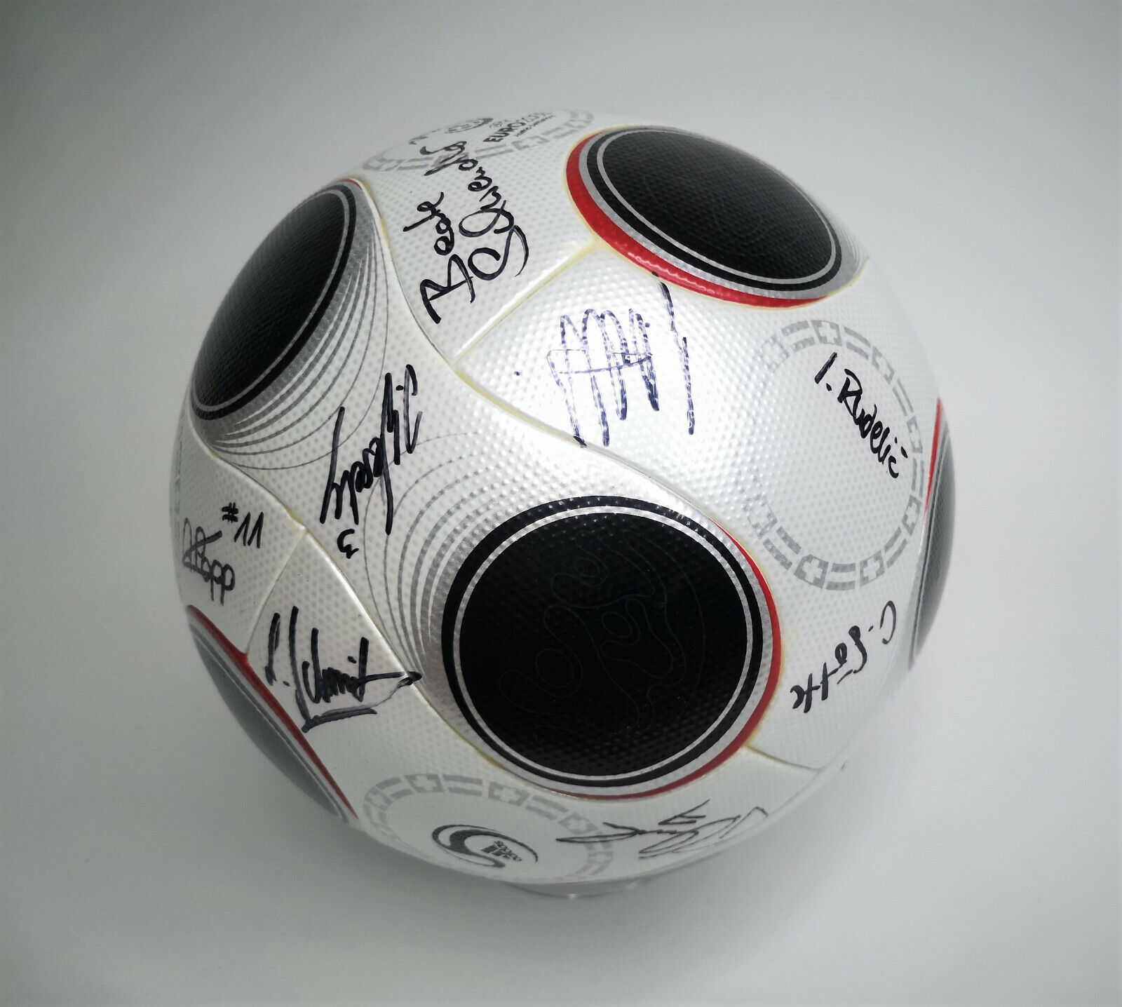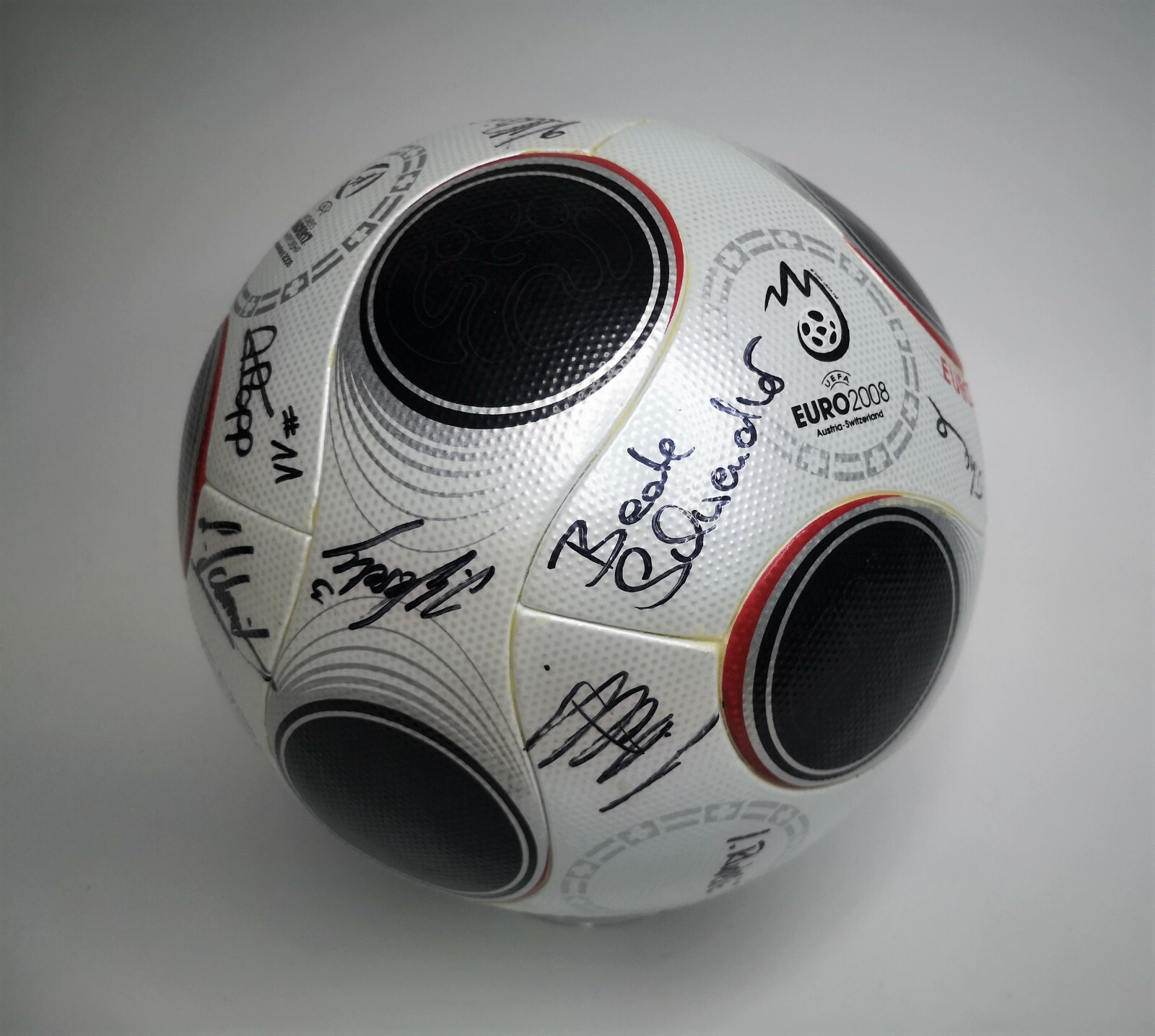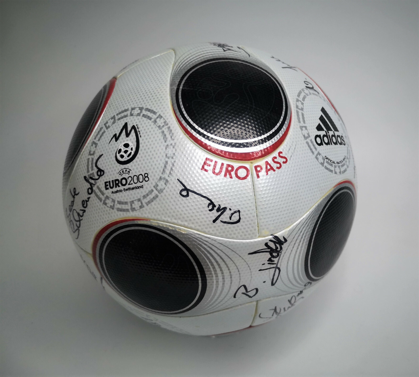 ________________________________________Marke: adidasModell: Europass Gloria / 625663Turnier: EM / Euro 2008Größe: 5Zustand: neu________________________________________Beschreibung:adidas Fussball Europass Gloria.Official Match Ball / Offizieller Spielball der Fußball EM / Euro 2008.Ganz leichte Druckstellen an einigen Paneelen von der Lagerung.Hält die Luft.Der Ball ist absolut neu und unbespielt im Karton.