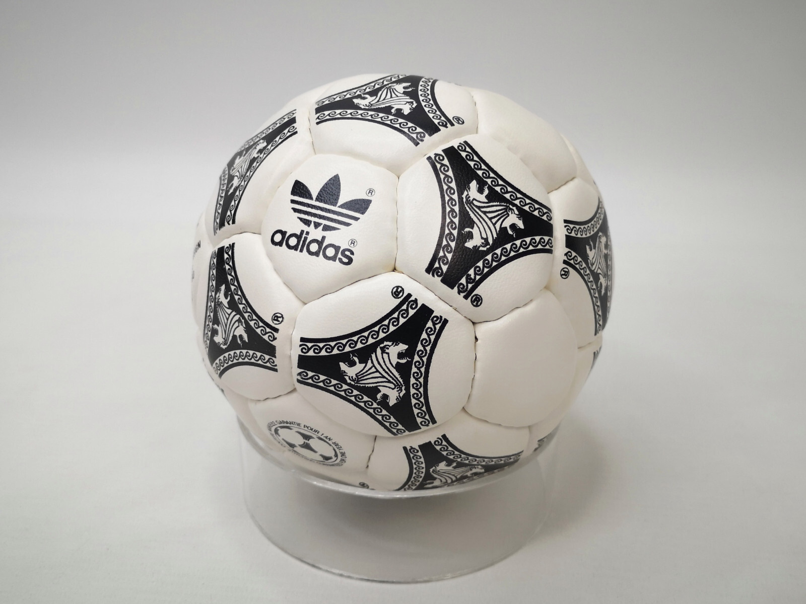 ________________________________________ Marke: adidasModell: Tango MundialGröße: 5Zustand: bespielt / benutzt ______________________________________Beschreibung: adidas Fussball Tango Mundial.Offizieller Ball der Fußball Europameisterschaft 1984 in Frankreich.Official matchball of the European Football Championship 84.Made in France.Der erste offizielle adidas Fußball aus synthetischen Materialien, eingesetzt bei der EM 1984.Der Ball wurde bespielt und zeigt auch eindeutige Spielspuren.Auch ist das synthetische Material, auch durch das hohe Alter der Balls, rissig und Abtragungen sowie leichtes fehlen vom Material sind vorhanden.Wir haben Fotos von allen Seiten des Balls gemacht (was wir immer machen bei unseren angebotenen Bällen).Der Ball hält die Luft perfekt !Superschöner, und einer der seltensten adidas Tango Fussbälle die man finden kann.Die Unterschriften sind von einem deutschen Bundesliga Team. ______________________________________Obermaterial:100% Synthetic