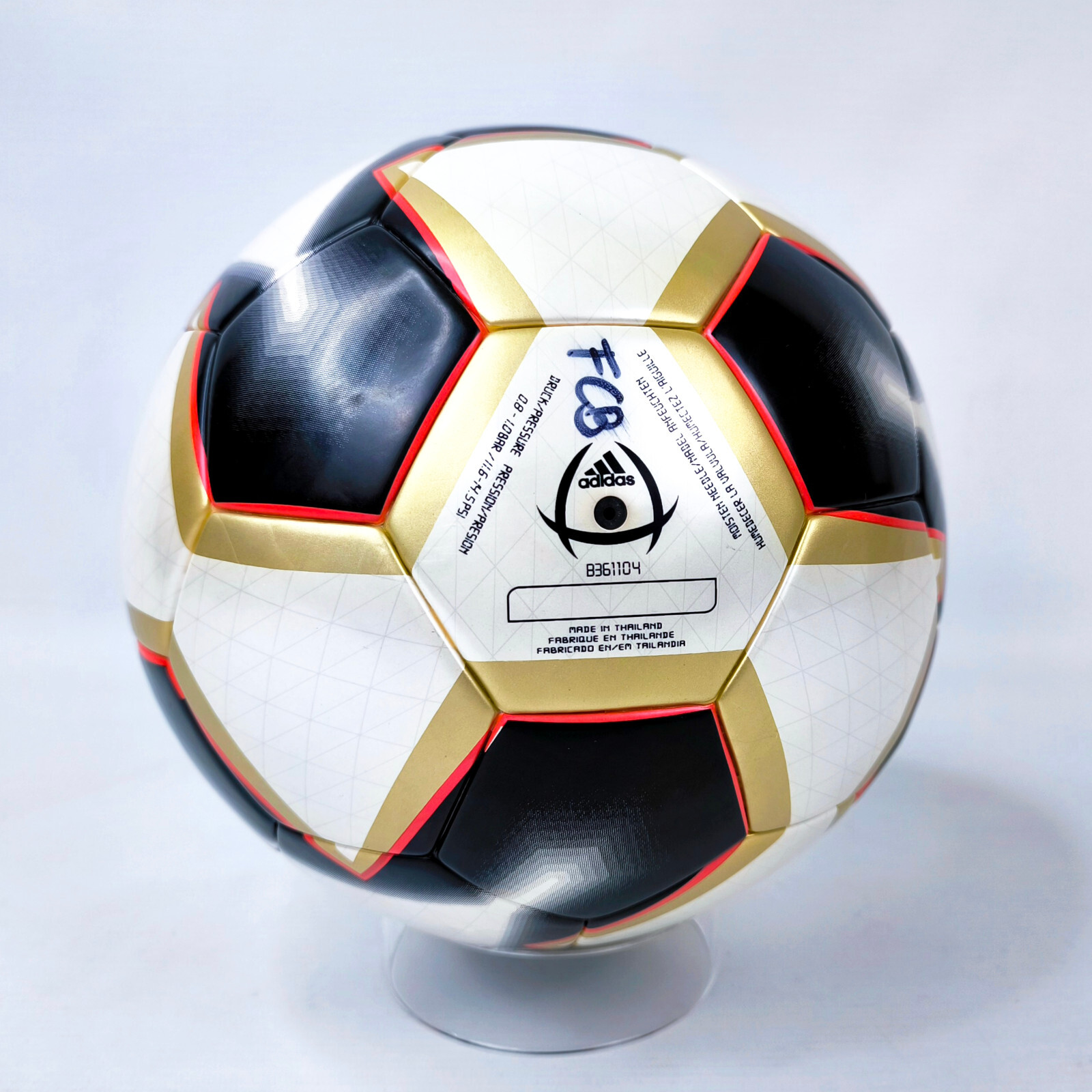 ________________________________________Marke: adidasModell: PeliasTurnier: Confederations Cup 2005Größe: 5Zustand: unbespielt ________________________________________Beschreibung:adidas Fussball Pelias.Official Match Ball / Offizieller Spielball des Confederations Cup 2005.Der Ball wurde beim Halbfinale des Confederations Cup 2005 in Nürnberg zwischen Deutschland und Brasilien am 25.06.2005 original unterschrieben von:Frank Beckenbauer, Jürgen Klopp, dem ehemaligen FIFA Schiedsrichter Urs Meier und dem deutschen Fernsehmoderator Johannes B. Kerner.Der Ball hat durch die lange Lagerung leichte Faltenbildung an den Paneelen.Ist neu und unbespielt !Hält die Luft perfekt !Toller Fussball des Confed Cup 2005, signiert von mindestens einer Legende des deutschen Fußballs !