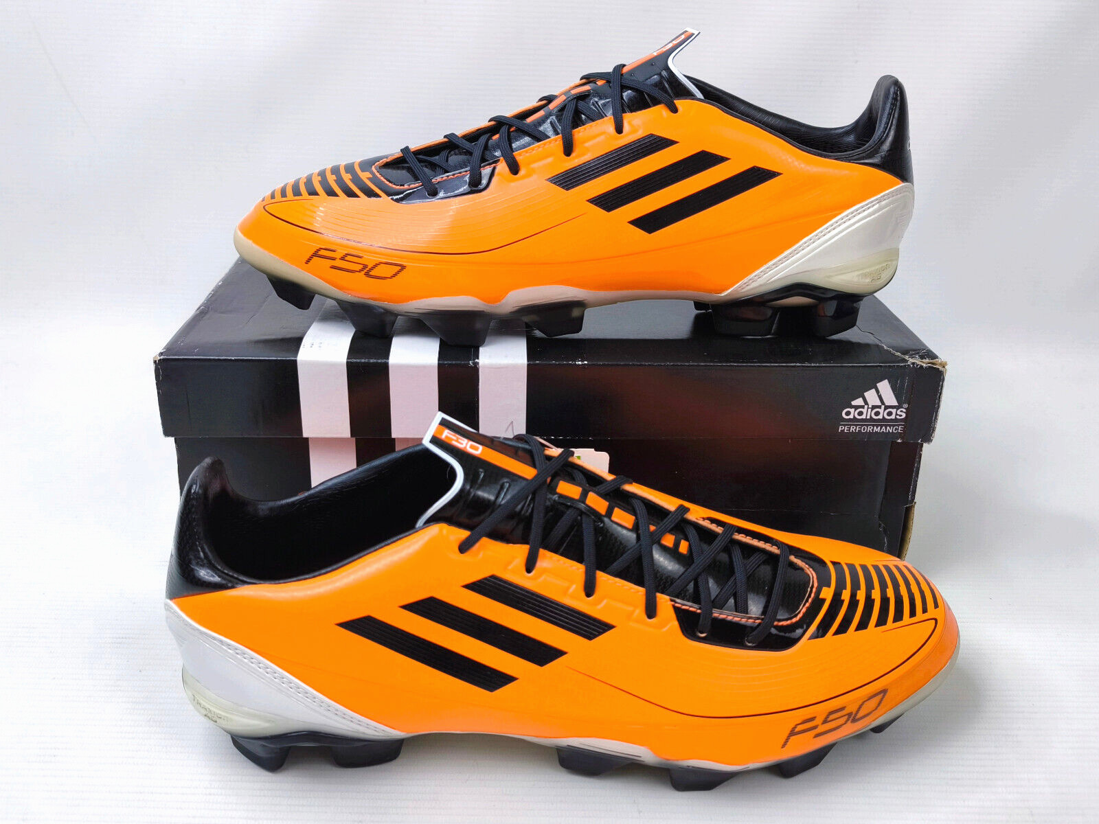 ______________________________________ Marke: adidasModell: F10 TRX HG / G17713Größe: Eur 42 2/3 / UK 8.5 / US 9Farbe: Black / Sun / SunZustand: neu ______________________________________ Beschreibung:Die Schuhe sind neu und ungetragen im Karton.Ultra Light Modell aus dem Jahr 2010.