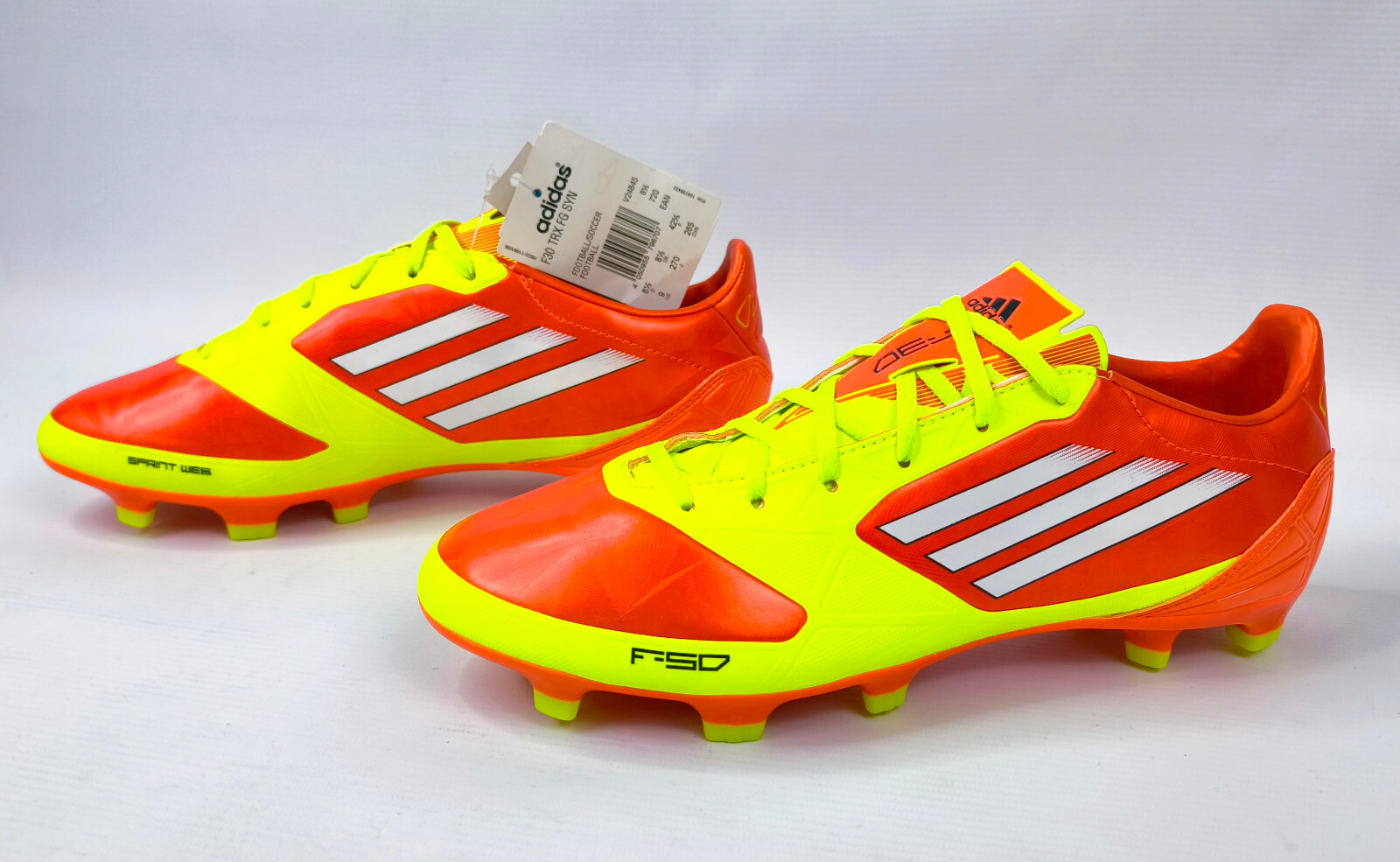 ________________________________________Marke: adidasModell: F10 TRX FG / U41869Größe: Eur 41 1/3 / UK 7.5 / US 8Farbe: orange / schwarz Zustand: neu_______________________________________Beschreibung:Die Schuhe sind neu und ungetragen mit Etikett (ohne Karton).Ein adidas super lightweight Modell aus dem Jahr 2010.Neu und ungetragen.