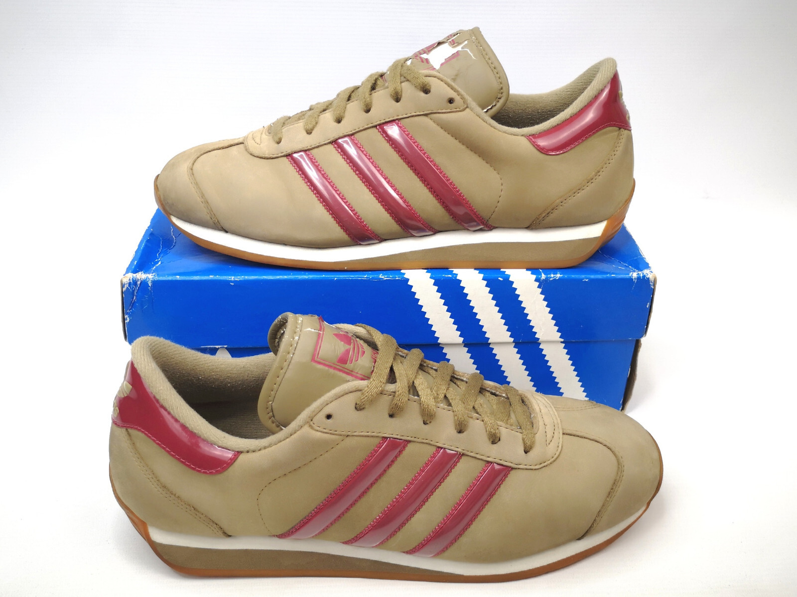 ________________________________________Marke: adidasModell: Country Rip RL / 382506Größe: Eur 46 / UK 11 / US 11.5Zustand: neu ________________________________________ Beschreibung:Die Schuhe sind neu und ungetragen im Karton.Durch das hohe Alter leichte Materialermüdung an den Laschen.(leicht rissig und Schriftzüge etwas verblasst).Modell aus dem Jahr 2002.Absolu neu und ungetragen.