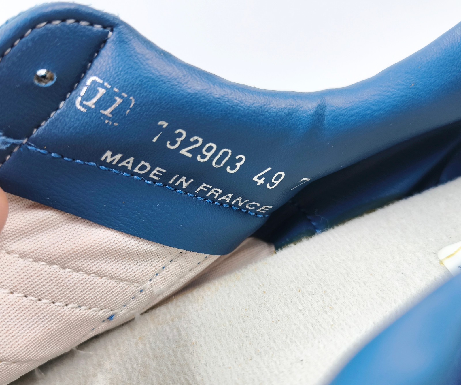 ________________________________________Marke: adidasModell: Köln / 3156Größe: Eur 40 / UK 6.5 / US 7Farbe: blau / weiß Zustand: getragen_______________________________________Beschreibung:Die Schuhe wurden getragen und befinden sich in einem sehr schönen Zustand.Es sind nur wenige und dann kleine Tragespuren am Obermaterial, an den Innen- sowie den Außensohlen vorhanden.Ein adidas Köln original aus den späten 1970er / frühen 1980er Jahren.Made in Yugoslavia._______________________________________Material:100% Wildleder