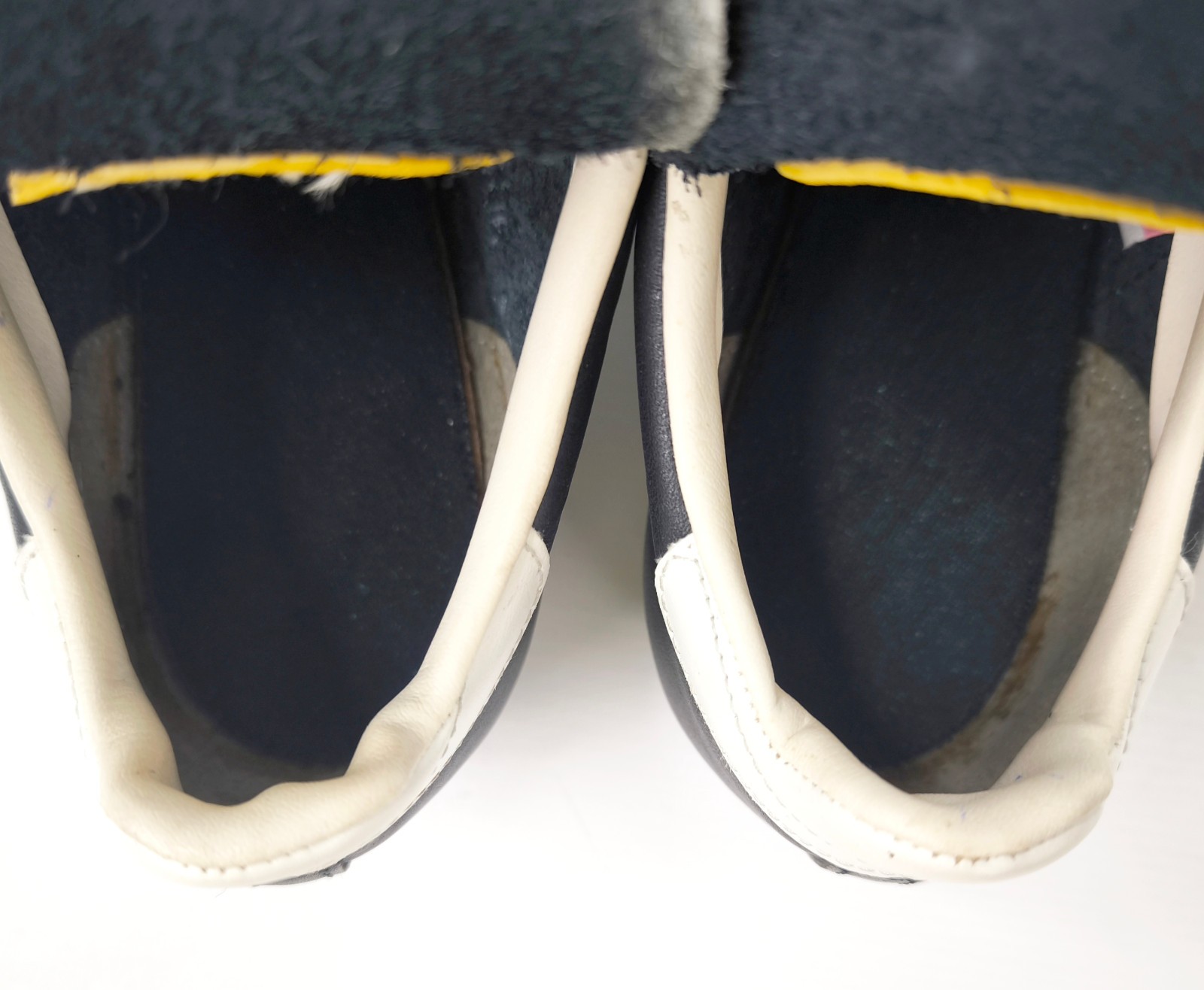 ________________________________________Marke: NoelModell: Kopa 2000Modell: UK 6 / US 6.5 / Eur 40Farbe: dunkelblau Zustand: neu______________________________________Beschreibung:Die Schuhe sind neu und ungetragen im Karton.Wir vermuten, es handelt sich hier um ein Musterpaar.Beide Schuhe sind das gleiche Modell, haben aber sowohl eine unterschiedliche Modellprägung an der Außenseite, als auch unterschiedliche Fersenfarben innen und unteren Sohlen.Ein Noel Spitzenmodell aus den 1970er Jahren.Neu und ungetragen im Karton.Sehr selten.______________________________________Material: 100% Leder