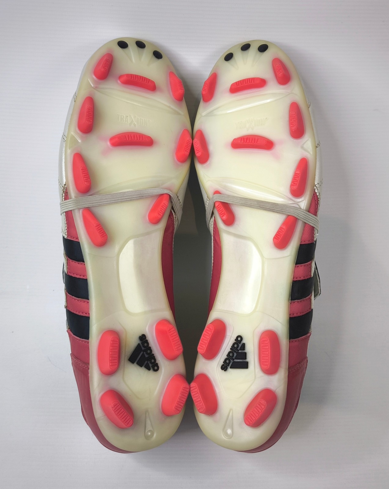 ________________________________________Marke: adidasModell: Predator Pulsado TRX HGModellnr.: 039867Größe: UK 11.5 / US 12 / Eur 46 2/3Farbe: schwarz / rot / weiß Zustand: neu______________________________________Beschreibung:Die Schuhe sind absolut neu und ungetragen mit Etikett.Ein adidas Predator Pulsado aus dem Jahr 2003.______________________________________Obermaterial:100% Leder