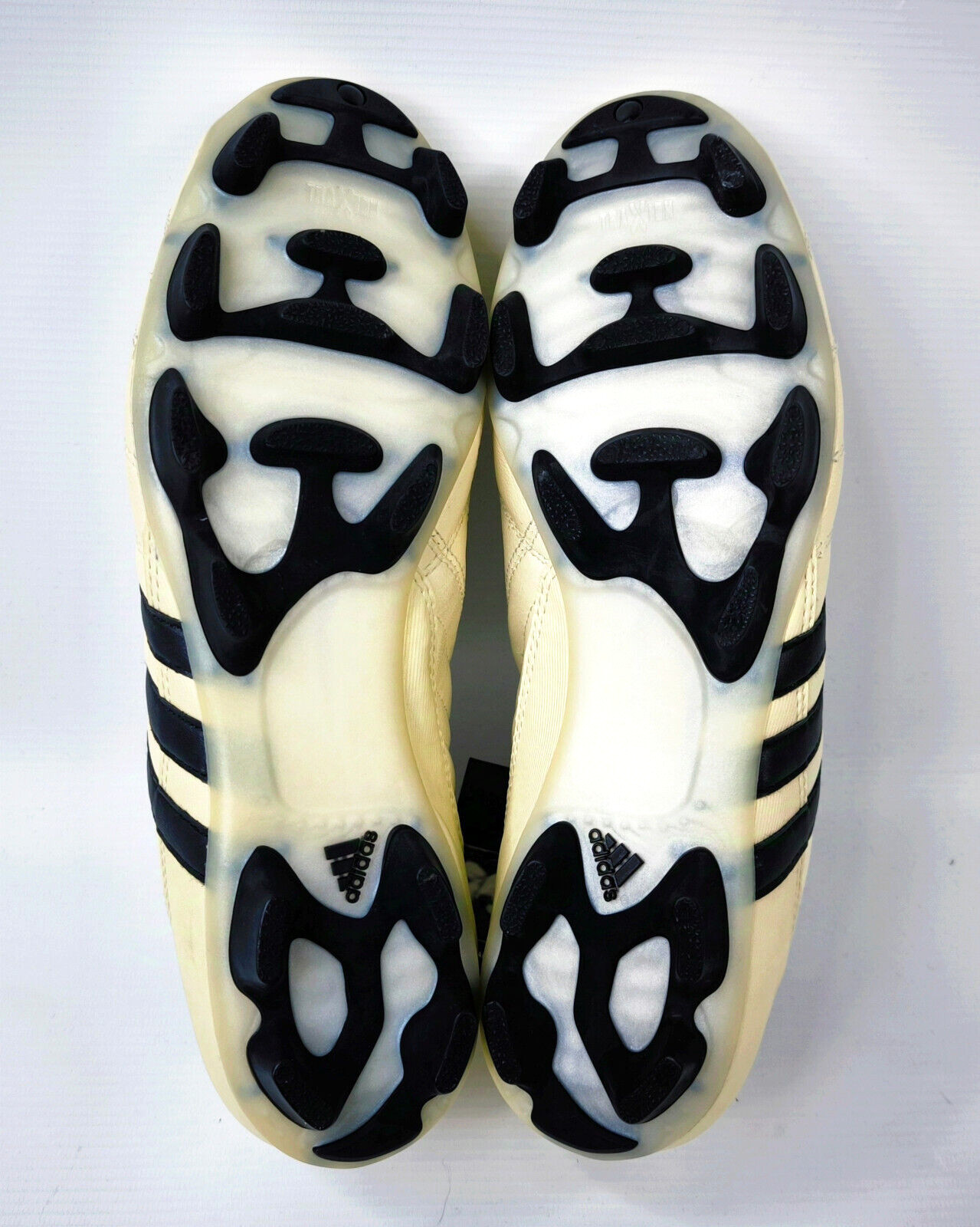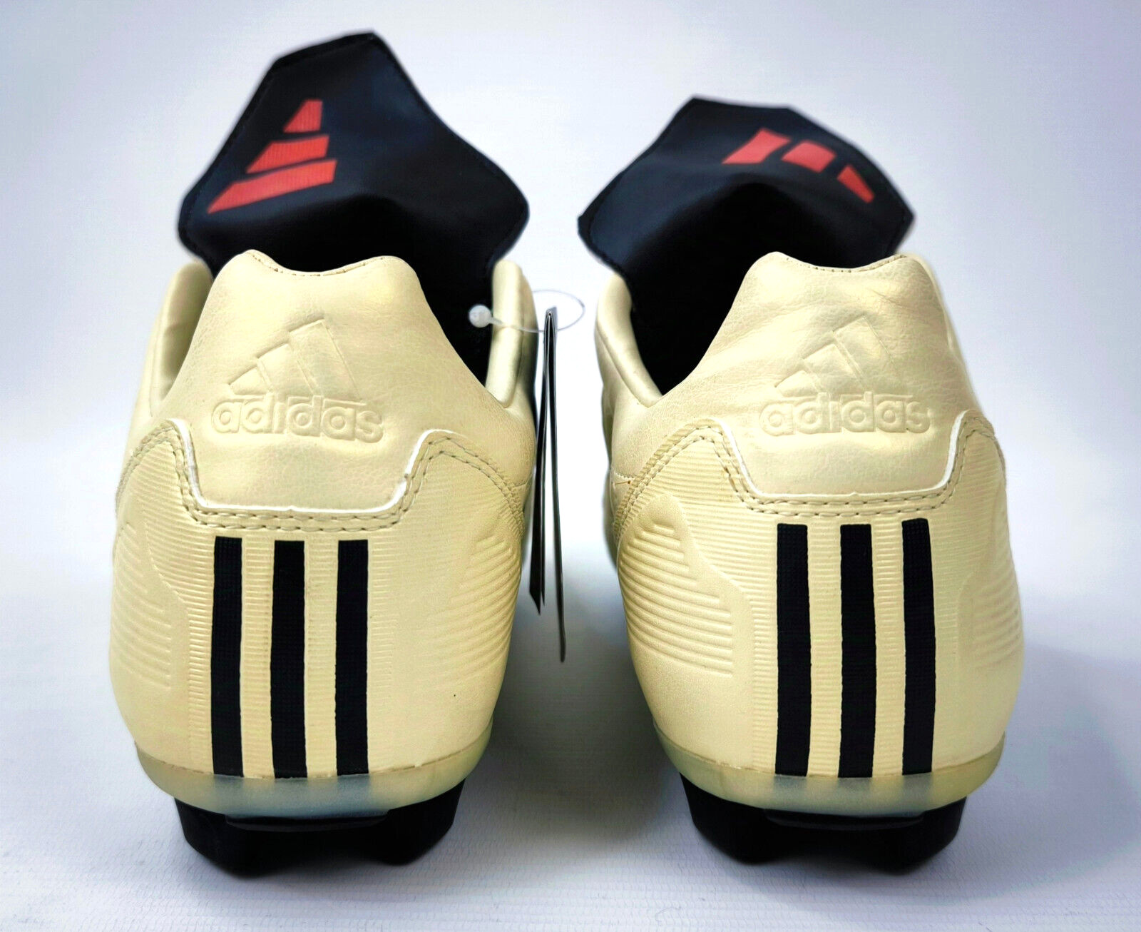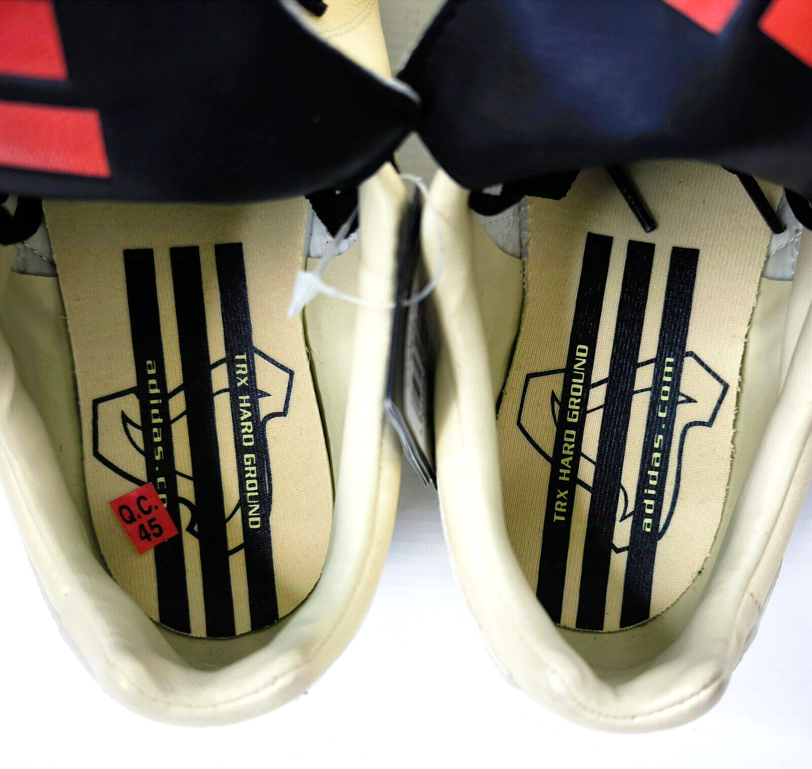 ________________________________________Marke: adidasModell: Manado TRX FG Art.-Nr.: 042096Größe: Eur 48 / UK 12.5 / US 13Farbe: creme / schwarz / rot Zustand: neu _______________________________________Beschreibung:Die Schuhe sind neu und ungetragen.Durch die Lagerung und das hohe Alter sind die Laschen unter den Schnürsenkeln etwas rissig geworden.Toller adidas Manado aus dem Jahr 2003.Ungetragen.